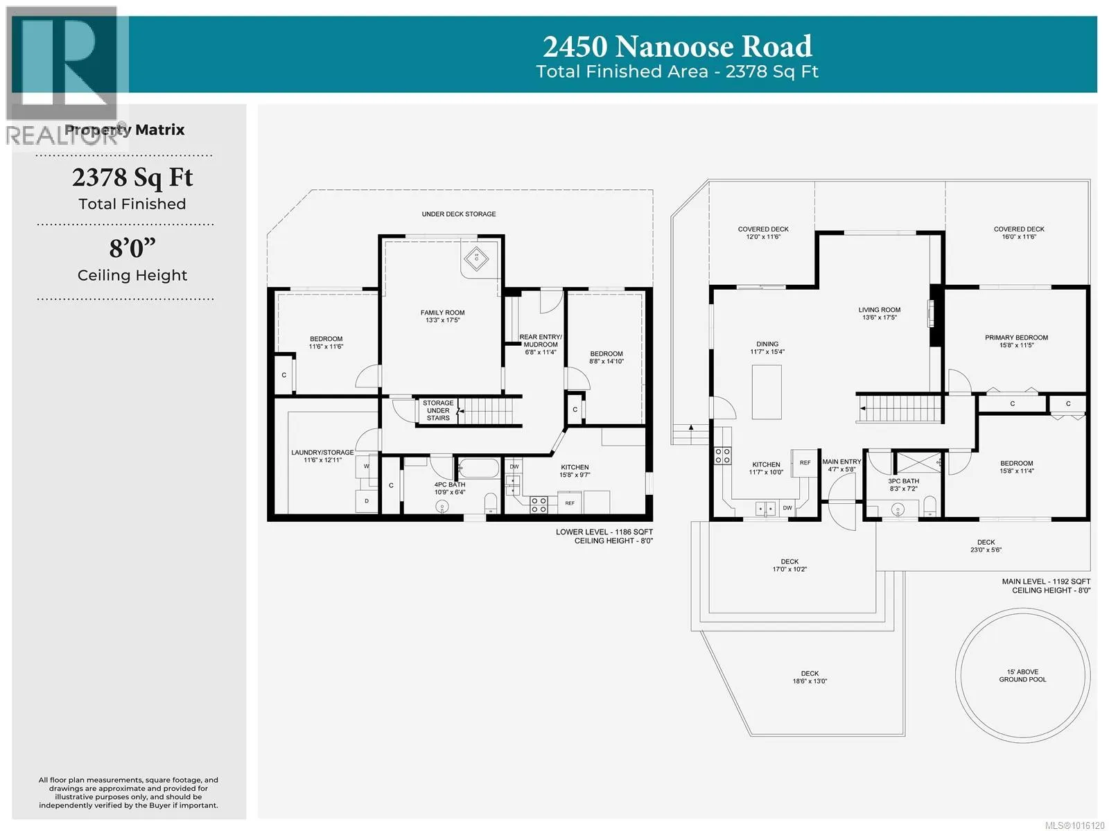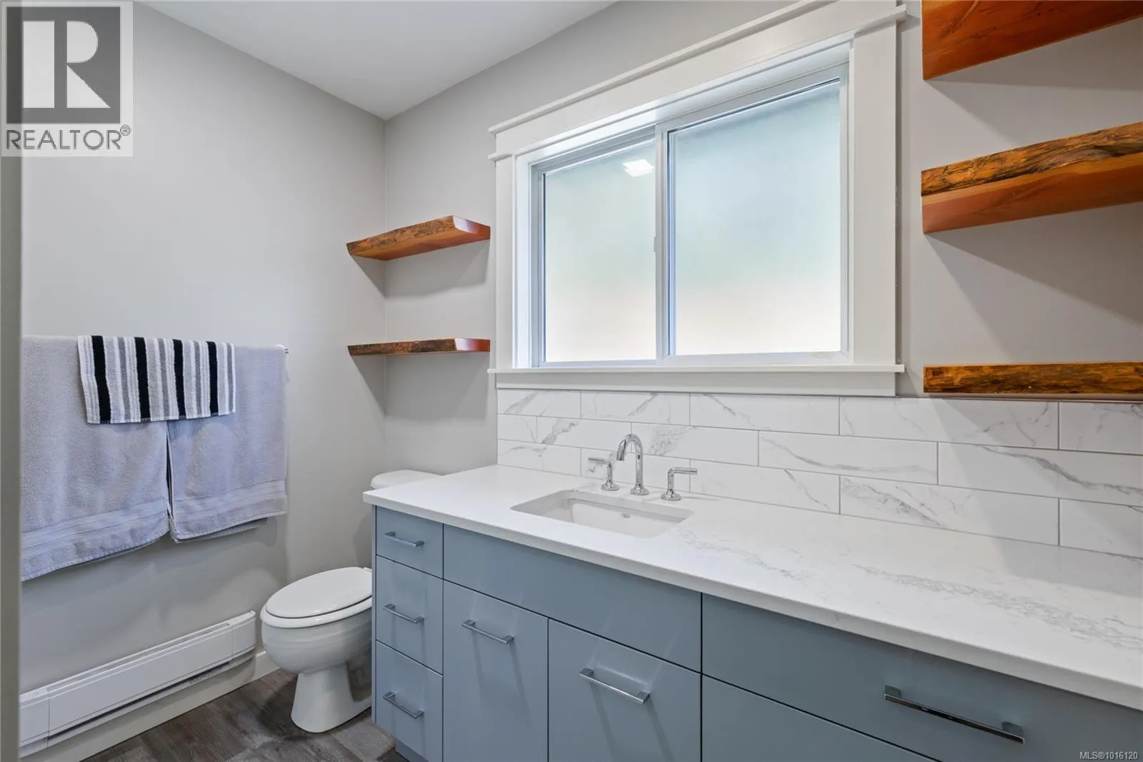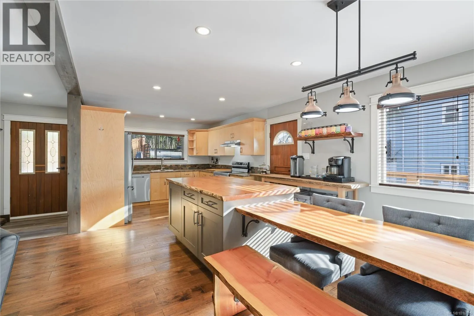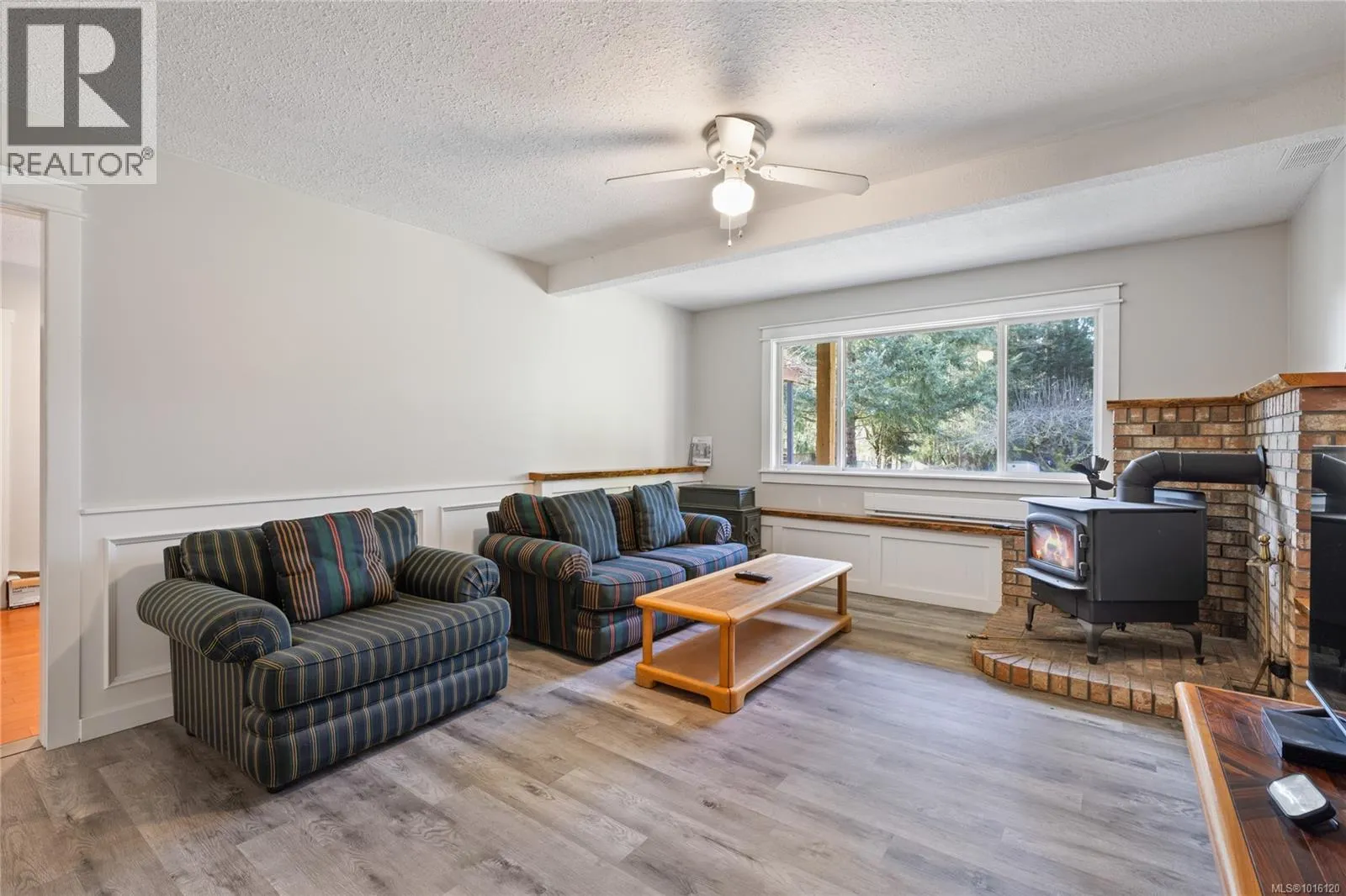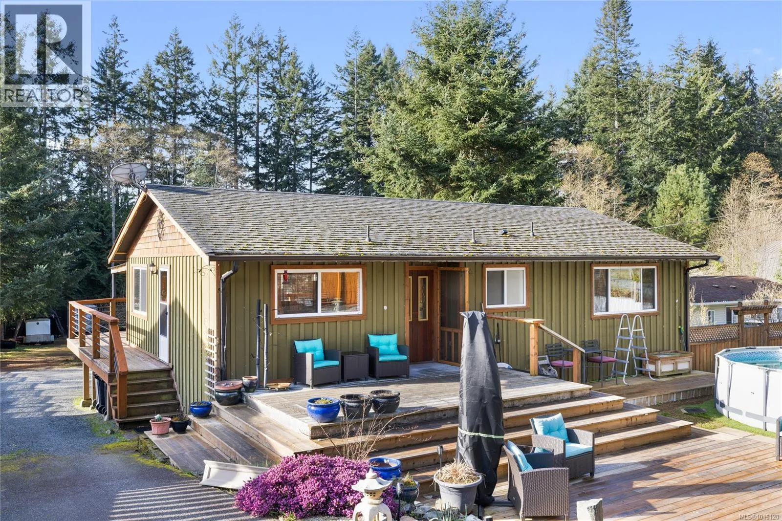Discover peaceful Nanoose Bay living on this beautifully landscaped half-acre property. This updated 4-bedroom, 2-bathroom home combines style, space, and versatility. The main floor features a bright living room with a sleek fireplace and a standout kitchen with rich maple cabinetry and a unique live-edge island. Two spacious bedrooms and a fully renovated bathroom complete the upper level, along with a large deck and a private covered lounge area perfect for relaxing or entertaining. The lower level offers a bright in-law suite with a second kitchen, cozy family room with wood stove, and two additional bedrooms, ideal for guests or extended family. Outside, enjoy a sparkling pool, greenhouse, and a variety of fruit trees on your own private half-acre. Located on a quiet no-through road, this home provides both privacy and convenience, with walking trails, shopping, and bus access to Parksville and Nanaimo nearby. A rare opportunity in a sought-after location. (id:27476)