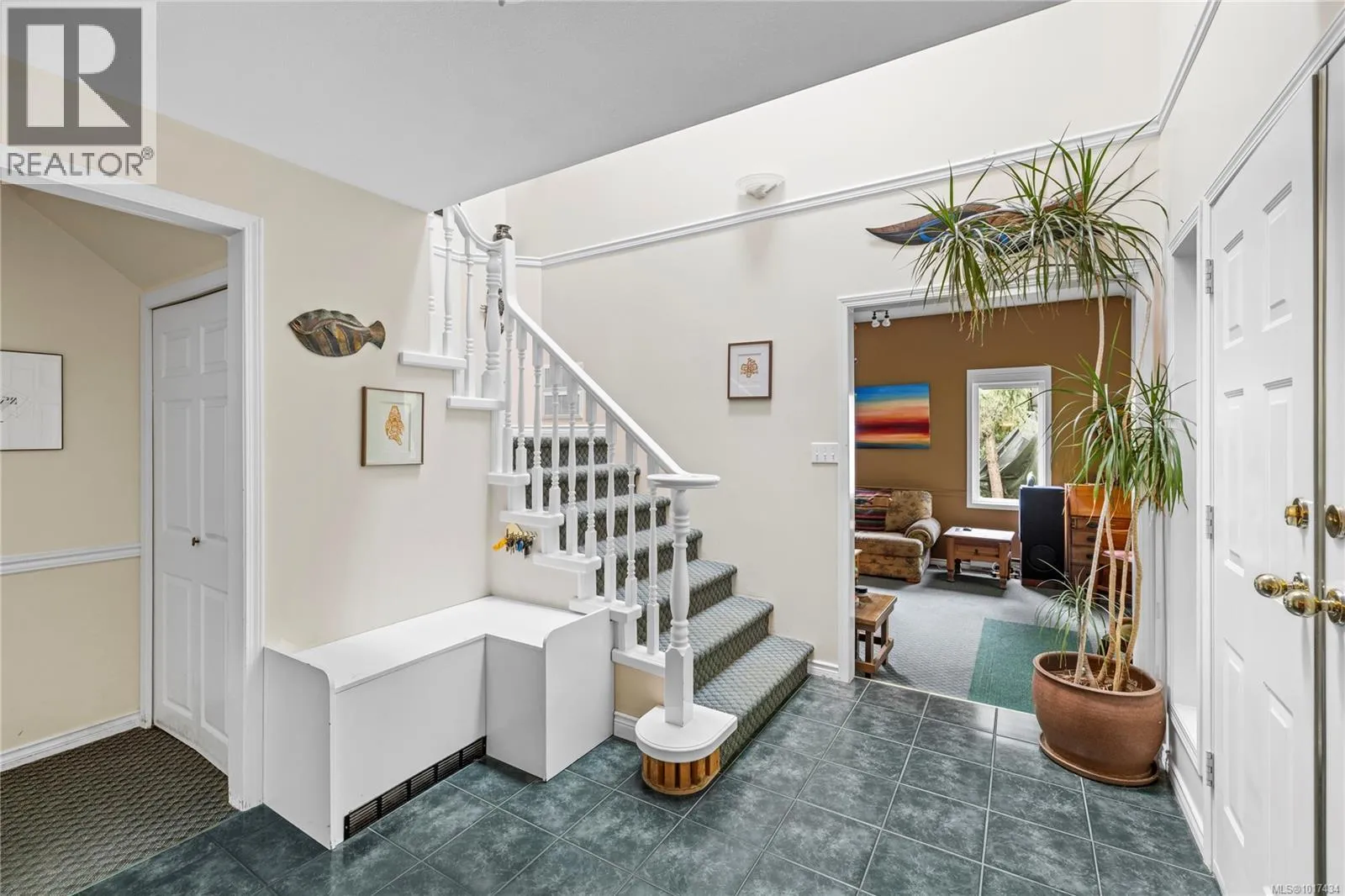 Set on a private 0.86-acre lot in the desirable Garry Oaks area of Nanoose Bay, this spacious 2,160 sqft home offers comfort and flexibility for family living. The main level features a living room that doubles as a home theatre with smart controls, family room, formal dining room, and kitchen with an adjoining eating nook. A bedroom and two-piece bathroom on this level provide convenience for guests or a home office. Upstairs, the primary bedroom includes a walk-in closet, four-piece ensuite and access to a partially covered deck. Three additional bedrooms and a four-piece main bathroom complete the upper level. Added features include a double garage, carport, multiple decks for outdoor enjoyment and two storey shed with potential use as a greenhouse. This home offers privacy and space in a peaceful setting close to parks, beaches, Fairwinds amenities, and a nearby school bus stopâperfect for family living. All data and measurements are approximate and must be verified if fundamental. (id:27476)