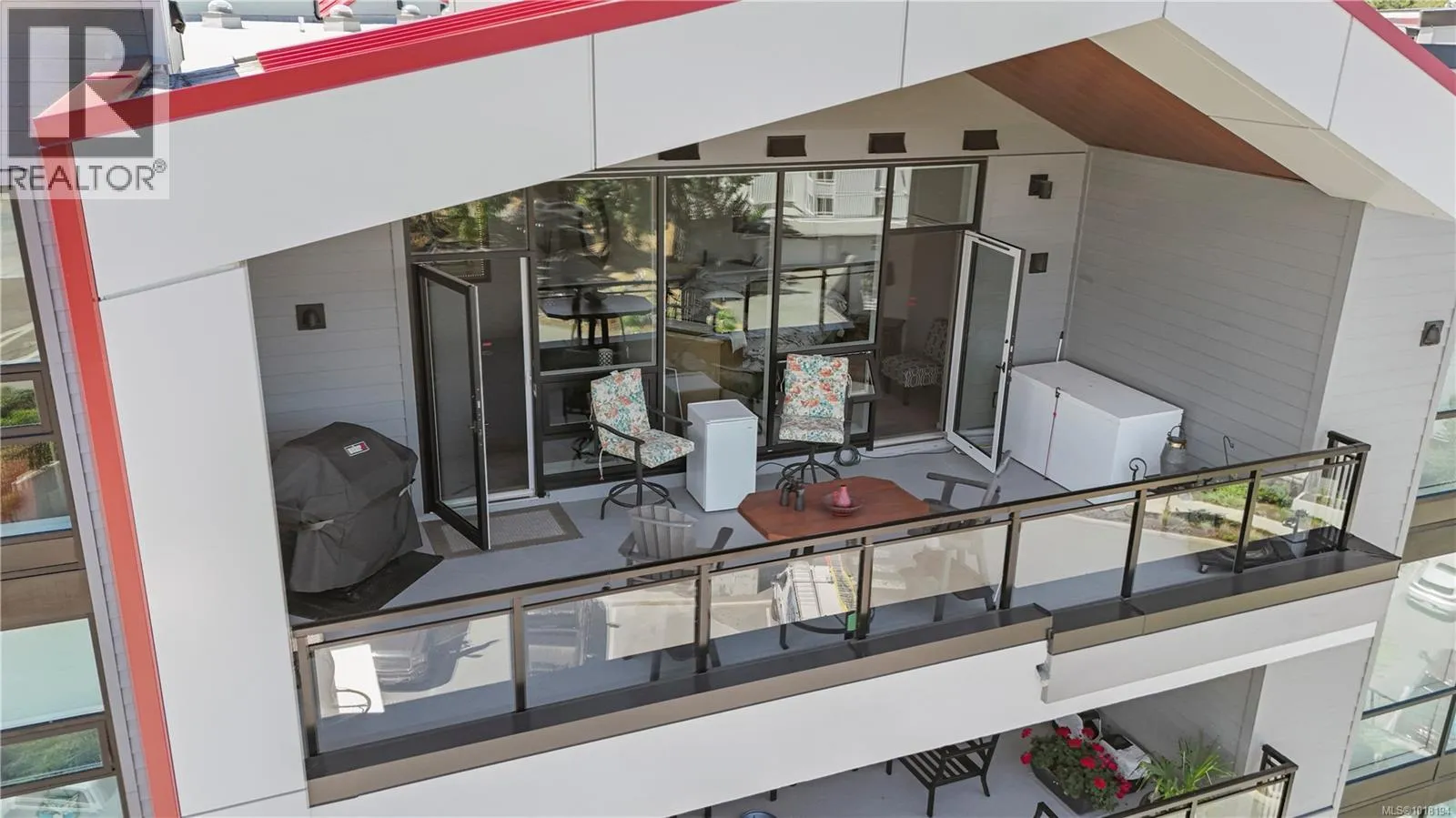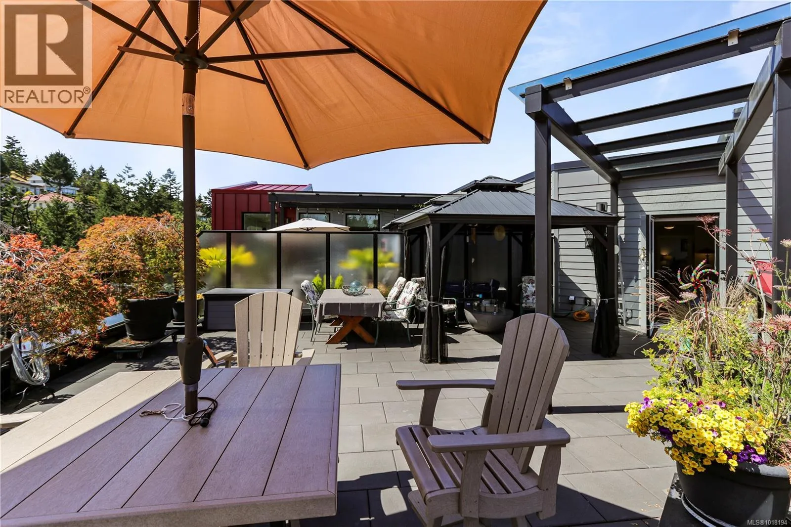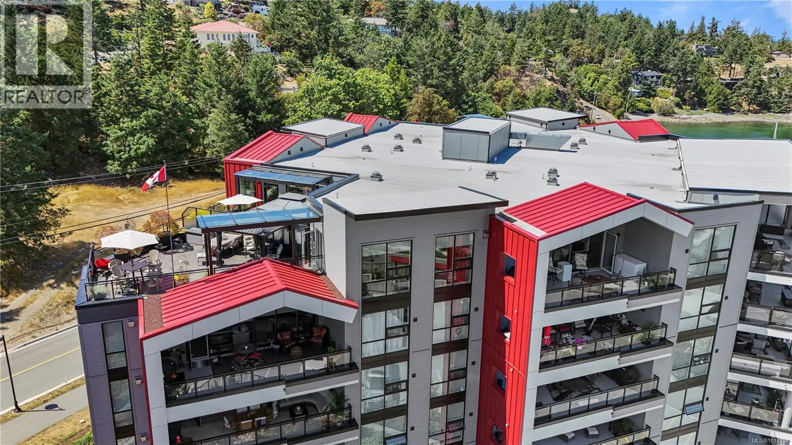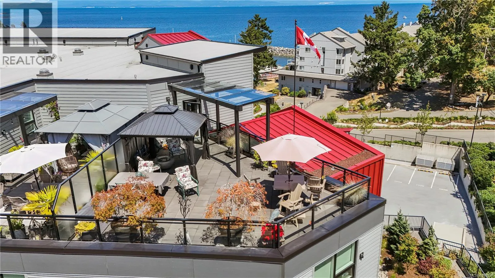 Perched above it all, this sun-drenched penthouse residence offers impressive ocean and Schooner Cove Marina views visible from both inside the unit and its expansive rooftop patio and front-facing deck. A rare offering in this sought-after steel-and-concrete building, the home boasts 2 bedrooms plus den, 2 bathrooms, and over a 1000 sq ft of private outdoor space designed for elevated coastal living. Inside, a white designer kitchen with quartz countertops, tile backsplash, and a large island anchors the open-concept living and dining area, which features floor-to-ceiling windows, gas fireplace, and soft, neutral finishes throughout. Off the kitchen, access opens directly to the expansive rooftop patioâa generously sized, private outdoor oasis exclusive to this penthouse unit. Both bedrooms enjoy floor-to-ceiling windows and offer direct access to the front-facing deck, capturing stunning ocean and marina views. The spacious primary suite includes a walk-in closet with built-in organizer and a spa-like 4-piece ensuite. A true retreat in the heart of Fairwinds, youâre just steps from pristine beaches, scenic walking trails, and the vibrant marina, with world-class golf and a wellness centre minutes away. Dine seaside at the Nanoose Bay Café or enjoy a morning coffee by the harbourâall part of a lifestyle that blends natural beauty with refined comfort. This is more than a homeâitâs a rare chance to own one of Vancouver Islandâs most impressive penthouse residences. (id:27476)