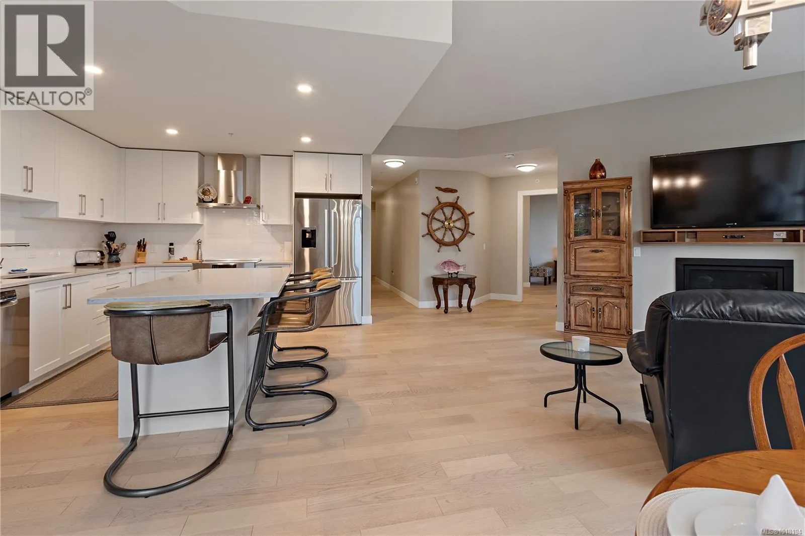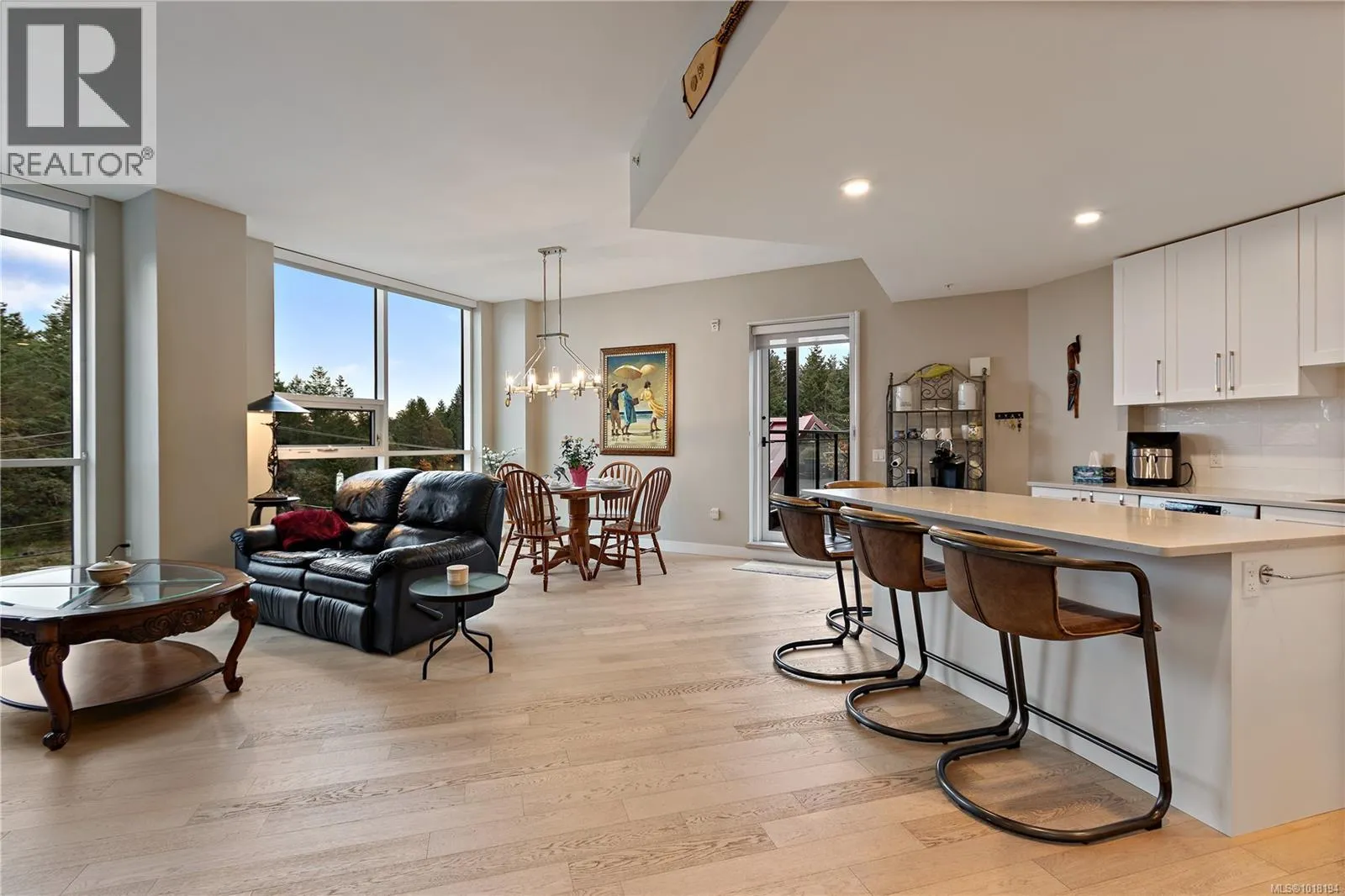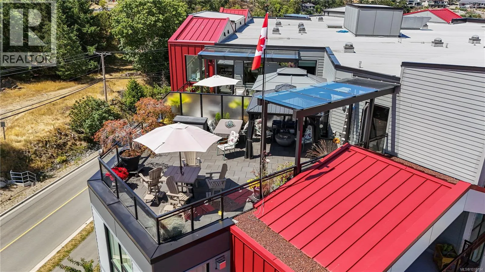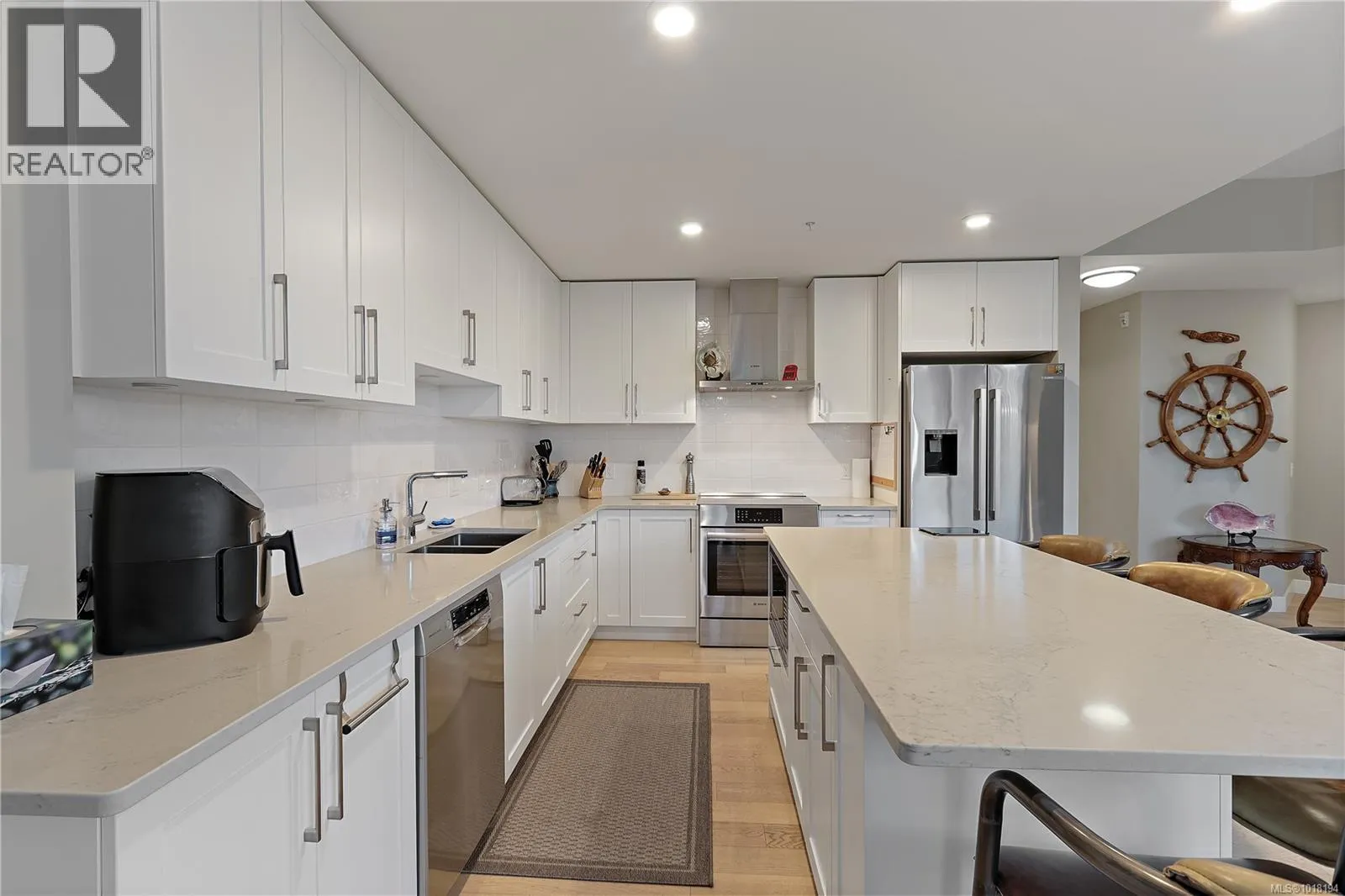 Perched above it all, this sun-drenched penthouse residence offers impressive ocean and Schooner Cove Marina views visible from both inside the unit and its expansive rooftop patio and front-facing deck. A rare offering in this sought-after steel-and-concrete building, the home boasts 2 bedrooms plus den, 2 bathrooms, and over a 1000 sq ft of private outdoor space designed for elevated coastal living. Inside, a white designer kitchen with quartz countertops, tile backsplash, and a large island anchors the open-concept living and dining area, which features floor-to-ceiling windows, gas fireplace, and soft, neutral finishes throughout. Off the kitchen, access opens directly to the expansive rooftop patioâa generously sized, private outdoor oasis exclusive to this penthouse unit. Both bedrooms enjoy floor-to-ceiling windows and offer direct access to the front-facing deck, capturing stunning ocean and marina views. The spacious primary suite includes a walk-in closet with built-in organizer and a spa-like 4-piece ensuite. A true retreat in the heart of Fairwinds, youâre just steps from pristine beaches, scenic walking trails, and the vibrant marina, with world-class golf and a wellness centre minutes away. Dine seaside at the Nanoose Bay Café or enjoy a morning coffee by the harbourâall part of a lifestyle that blends natural beauty with refined comfort. This is more than a homeâitâs a rare chance to own one of Vancouver Islandâs most impressive penthouse residences. (id:27476)
