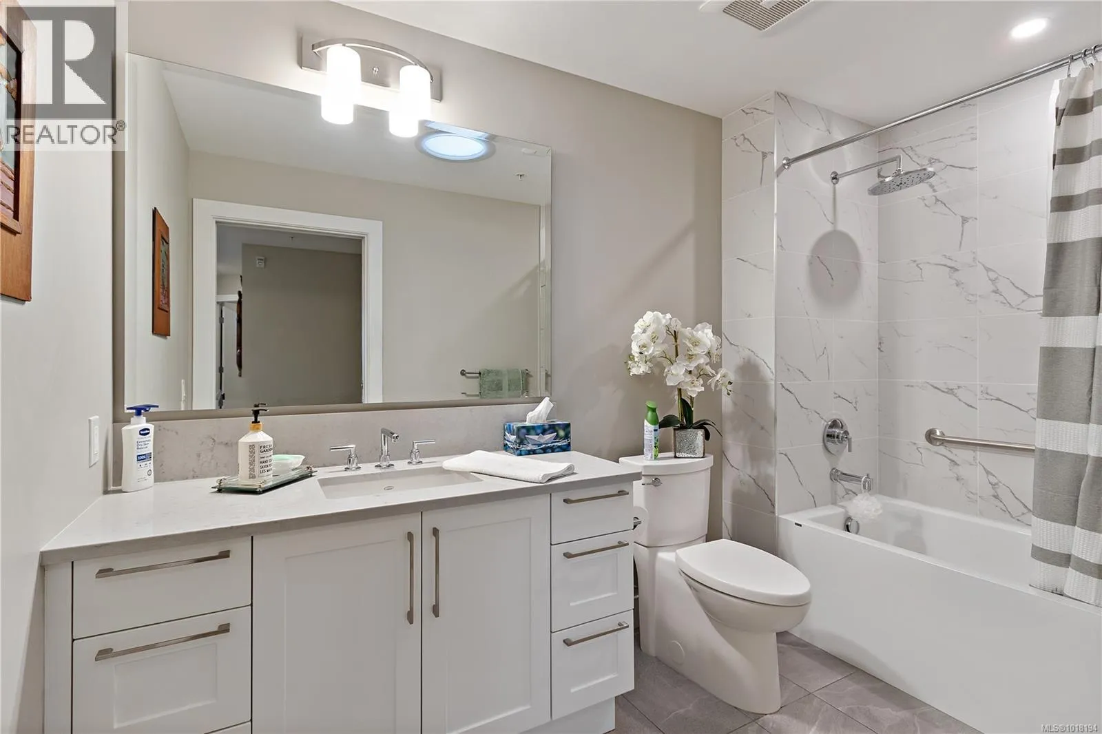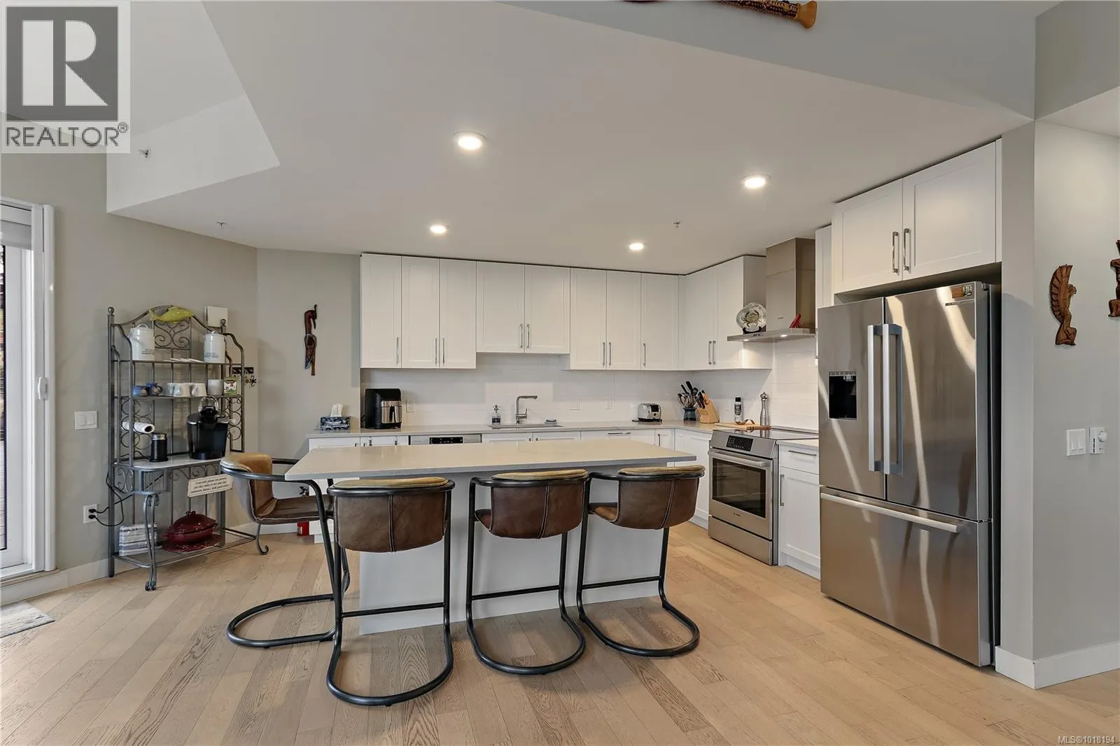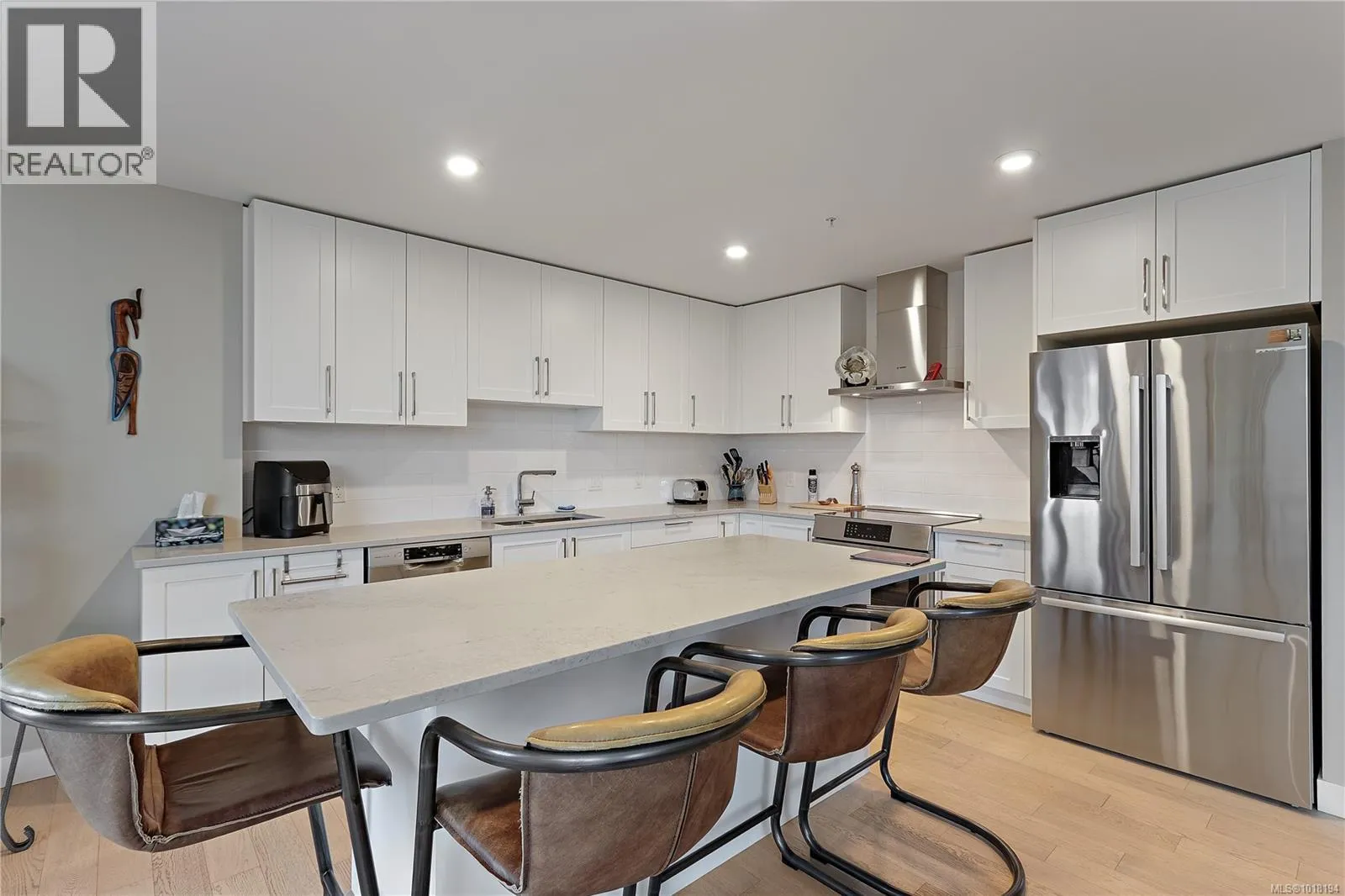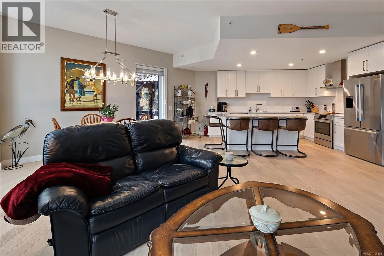 Perched above it all, this sun-drenched penthouse residence offers impressive ocean and Schooner Cove Marina views visible from both inside the unit and its expansive rooftop patio and front-facing deck. A rare offering in this sought-after steel-and-concrete building, the home boasts 2 bedrooms plus den, 2 bathrooms, and over a 1000 sq ft of private outdoor space designed for elevated coastal living. Inside, a white designer kitchen with quartz countertops, tile backsplash, and a large island anchors the open-concept living and dining area, which features floor-to-ceiling windows, gas fireplace, and soft, neutral finishes throughout. Off the kitchen, access opens directly to the expansive rooftop patioâa generously sized, private outdoor oasis exclusive to this penthouse unit. Both bedrooms enjoy floor-to-ceiling windows and offer direct access to the front-facing deck, capturing stunning ocean and marina views. The spacious primary suite includes a walk-in closet with built-in organizer and a spa-like 4-piece ensuite. A true retreat in the heart of Fairwinds, youâre just steps from pristine beaches, scenic walking trails, and the vibrant marina, with world-class golf and a wellness centre minutes away. Dine seaside at the Nanoose Bay Café or enjoy a morning coffee by the harbourâall part of a lifestyle that blends natural beauty with refined comfort. This is more than a homeâitâs a rare chance to own one of Vancouver Islandâs most impressive penthouse residences. (id:27476)