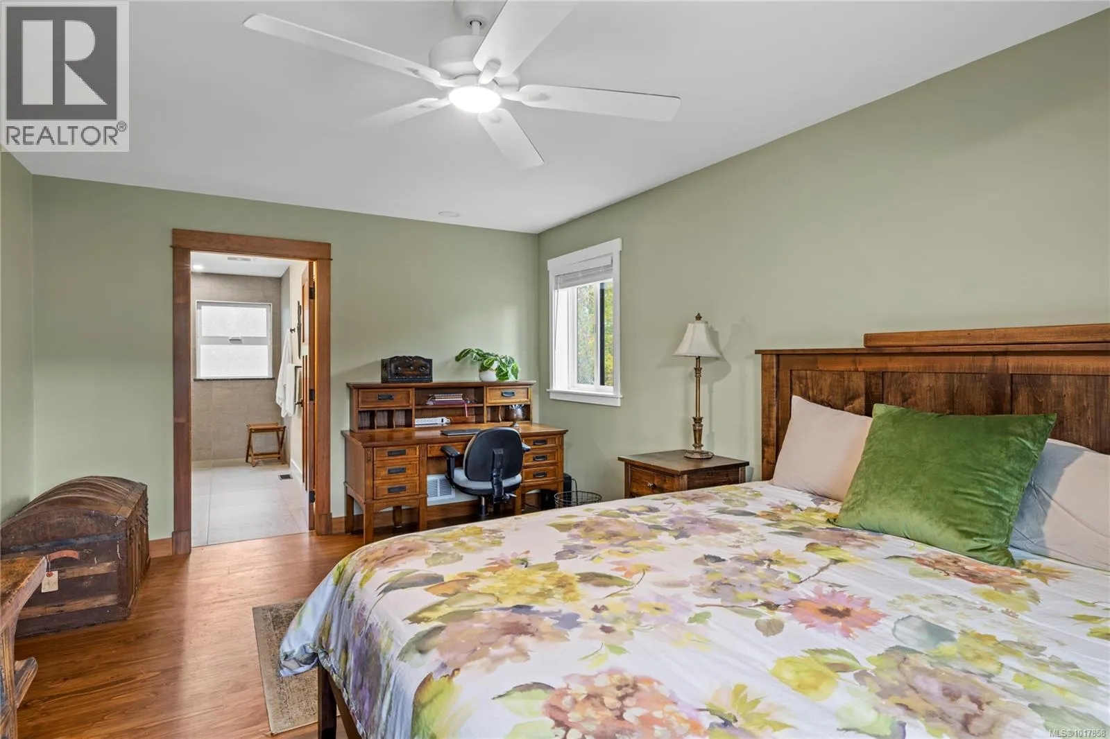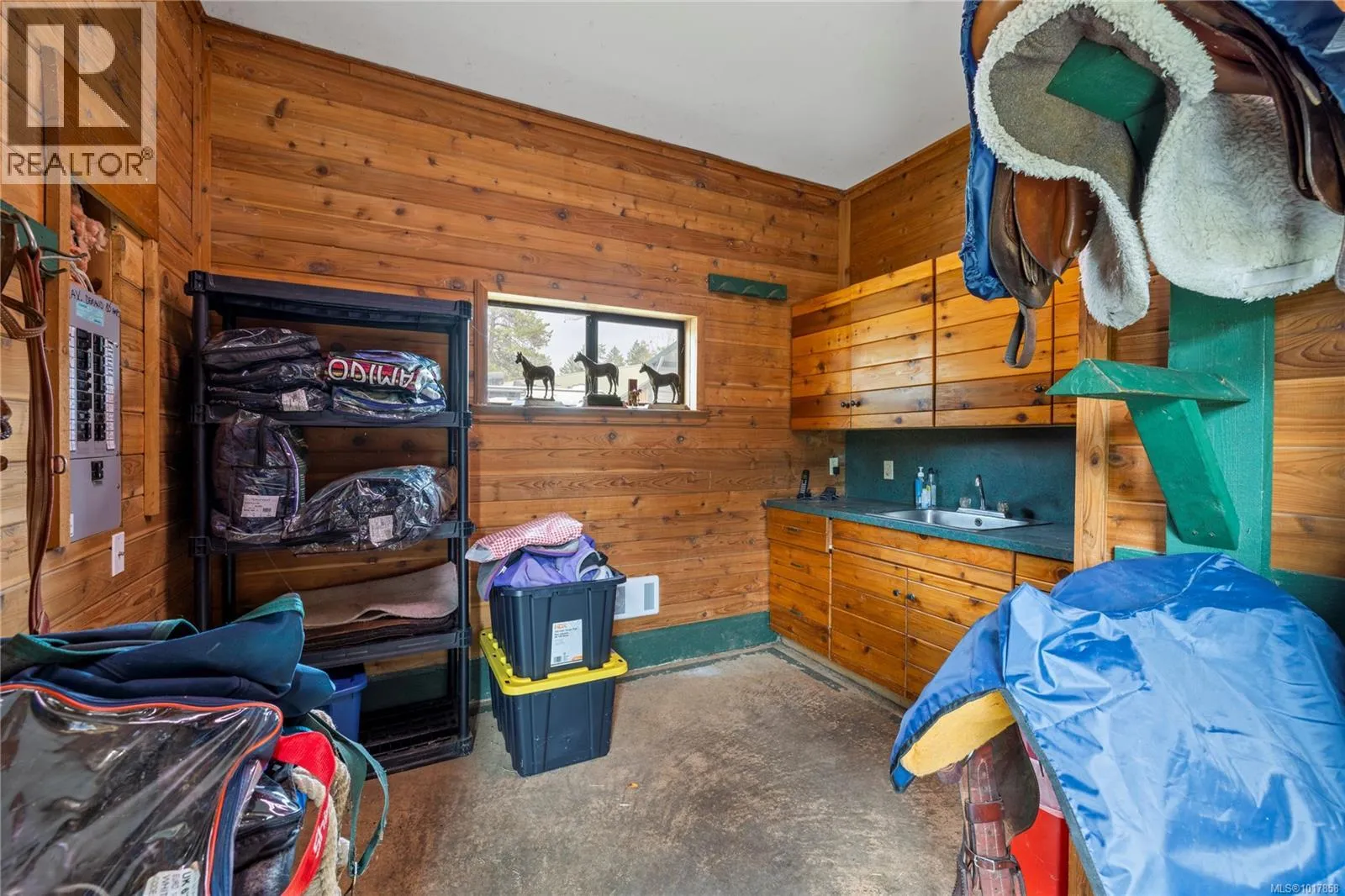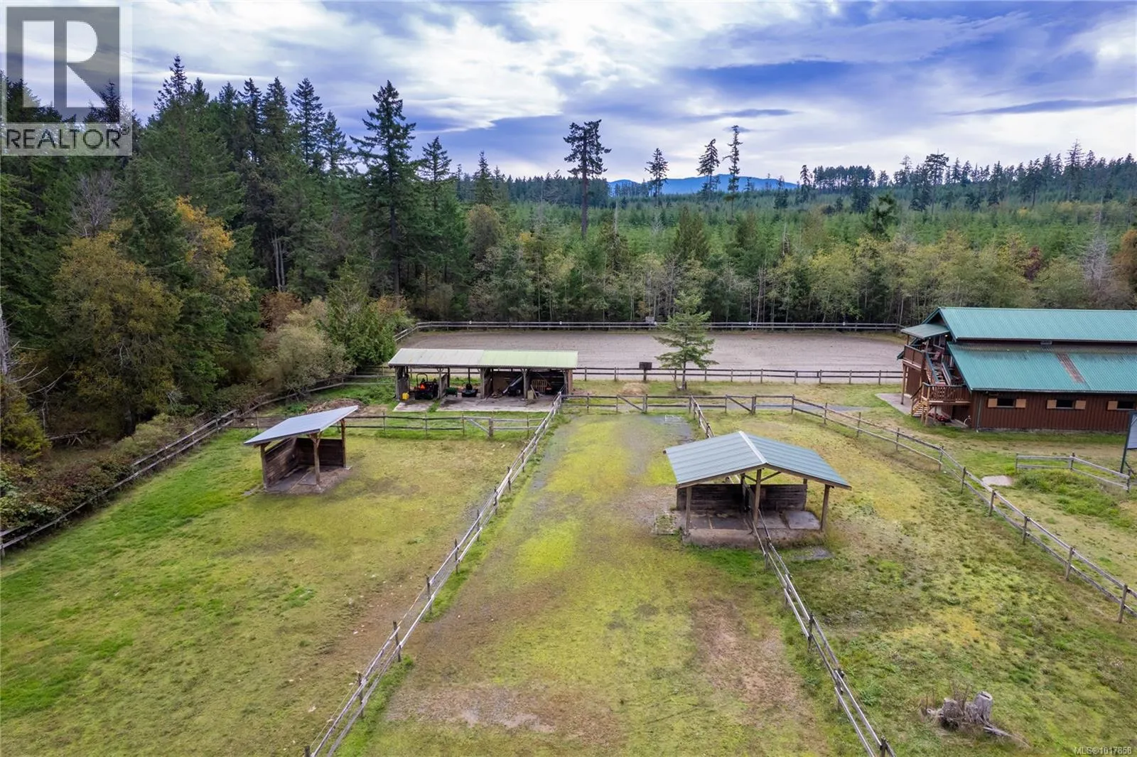 5-acre equestrian facility, with 2 homes, in the highly desirable Rocking Horse Loop neighbourhood in Nanoose Bay, ready for your equestrian dreams. Professionally engineered, well-ventilated barn with nine 12 x 12 rubber-matted stalls, heated wash bay with hot and cold water, heated office/tack room, and classroom/fitness room with kitchenette and full bathroom, plus a large, dry hay loft. 90 ft x 184 ft sand riding ring. Property backs onto miles of easily accessible trails and is a short ride to the beach, and the indoor arena on, Spurs Rd. Fully fenced, with 5 extra-large paddocks and 5 shelters. Lots of treed areas for privacy and shade for horses. House One is a bright, fully updated, cozy two-bed, two-bath rancher with lots of warm wood features, some milled from trees off the property. Workshop with heated mechanical room and wired for 240V next to two covered bays. House Two is a beautiful, 2022 built, 5-bed, 2.5-bath two-storey home built in 2022, featuring a large open main living space with huge vaulted ceilings, propane fireplace, hot water on demand, and propane stovetop. (id:27476)
