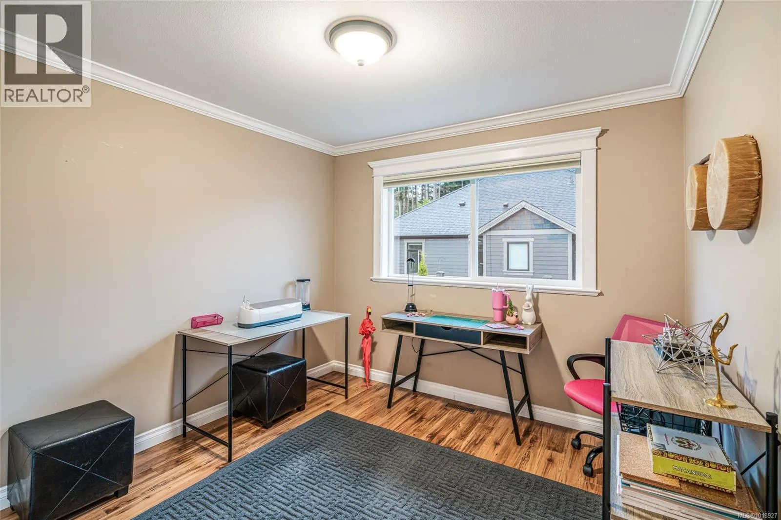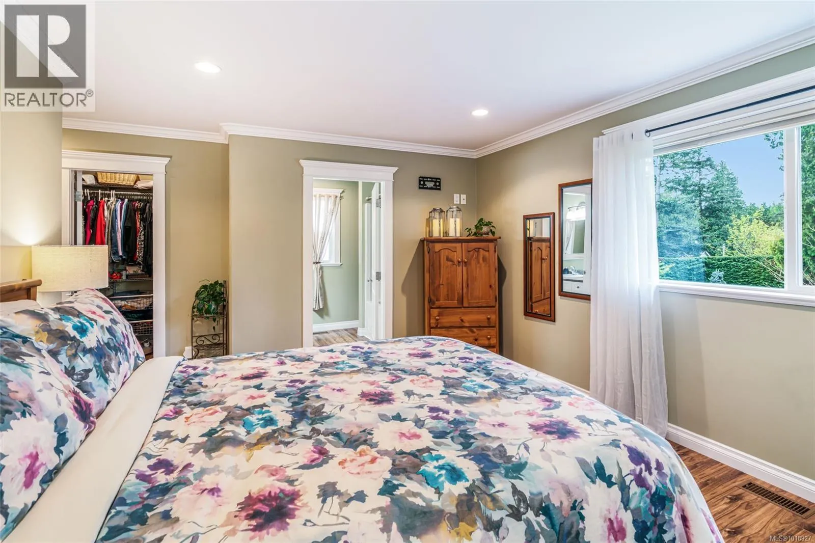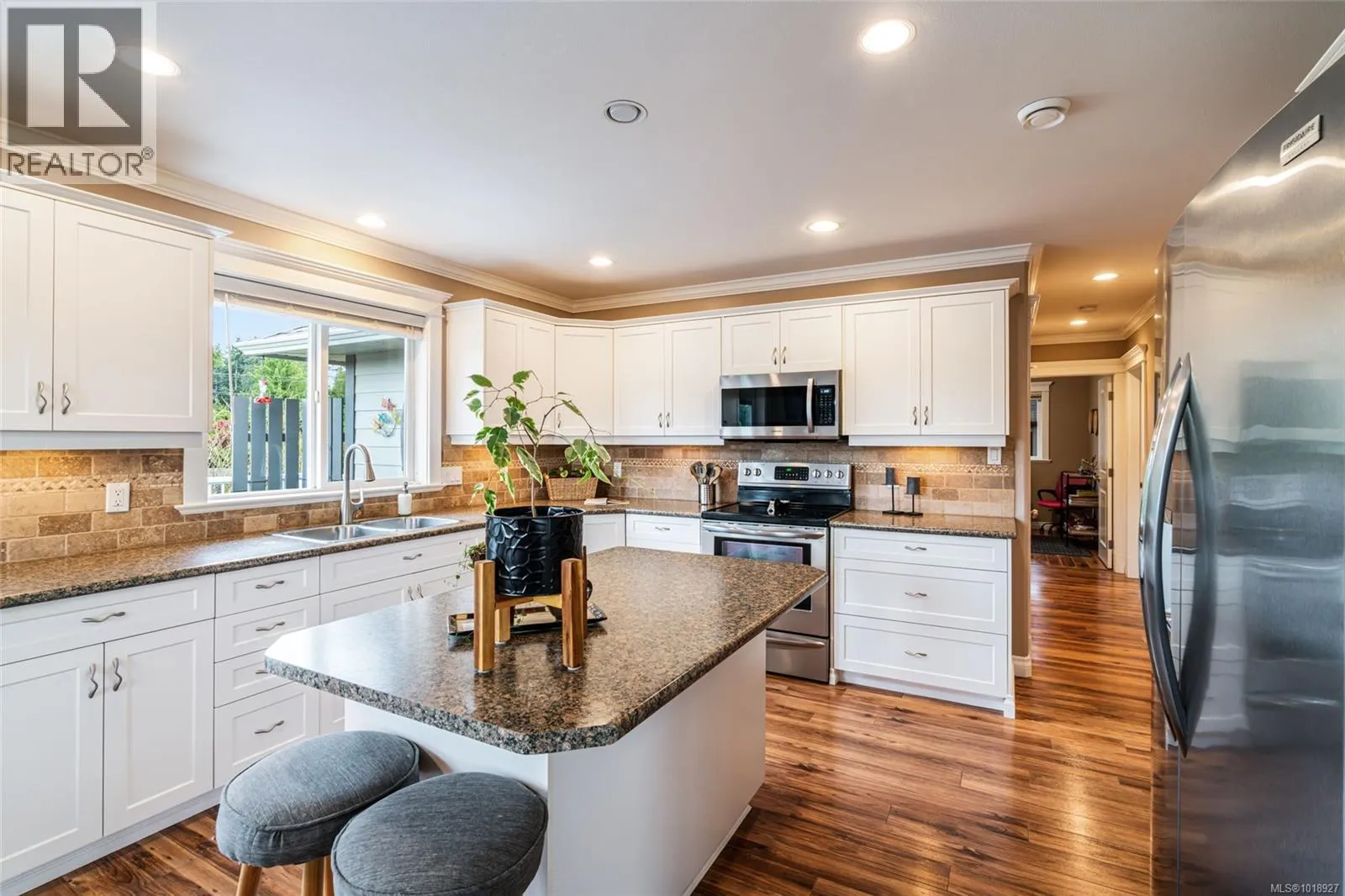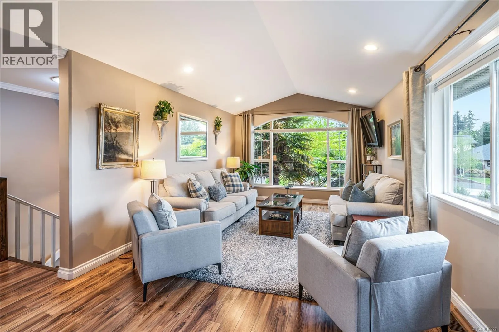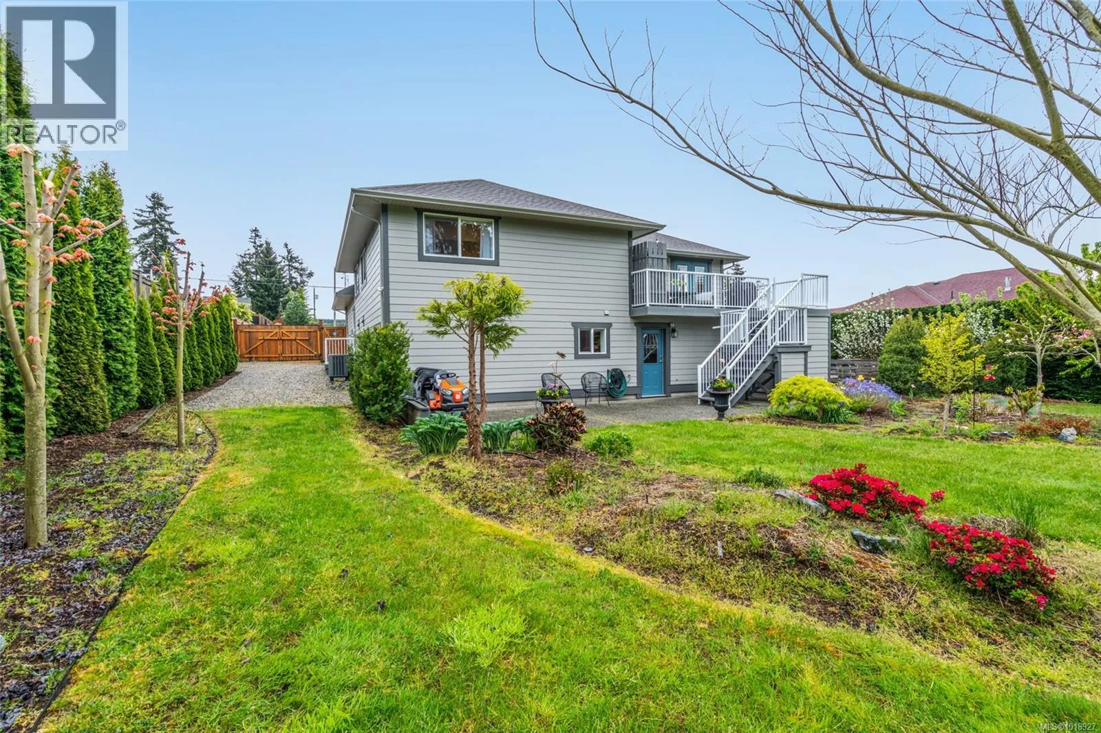 Expansive Madrona Heights Family Home! Set on a beautifully landscaped .50-acre lot, this spacious 6 Bed/3 Bath Family Home offers one-level living with a fully finished WO lower level. Enjoy stylish finishes, a large Family Room, an Office, a sun-drenched yard for outdoor living, a garden area with raised beds, plus extras like a Double Garage and space for your RV. Located in the sought-after 'Madrona Heights' neighborhood, you're just mins from beach access, 10 mins to downtown Parksville, and a short drive to Qualicum Beach and North Nanaimo. A sunny south-facing yard with garden beds and palm trees welcomes you. Step through a front door into a spacious tiled foyer with overheight ceilings. A few steps up leads to a formal Living Room with a cathedral ceiling, ideal for entertaining. Hardwood floors flow into an open Kitchen and Dining Area. The Dining Area has wainscoting and a ceiling fan, while the Deluxe Kitchen boasts ample cabinetry with crown molding, stainless steel appliances, a coffee station/computer desk, an island with a breakfast bar, and a frosted-glass door to a walk-in pantry. French doors open to a spacious deck with peaceful views of the park-like backyardâperfect for BBQs or relaxing. The hallway leads to a serene Primary Suite with a walk-in closet, and a 4-pc ensuite. Two additional Bedrooms share a 4-pc Main Bath. The fully finished lower level offers flexibility: a huge Family Room with Wet Bar, three more Bedrooms, a 3-pc Bath, Laundry Area with sink, an Office with exterior access, and a Storage Room. The fully fenced backyard offers sunny east and west exposure, grassy areas for children and pets, mature gardens and towering evergreens, privacy hedging, a Garden Shed that could double as a Workshop, and a large veggie garden area. Located a short drive away from golf courses, parks, and beach access point. Great extras, visit our website for more. (id:27476)
