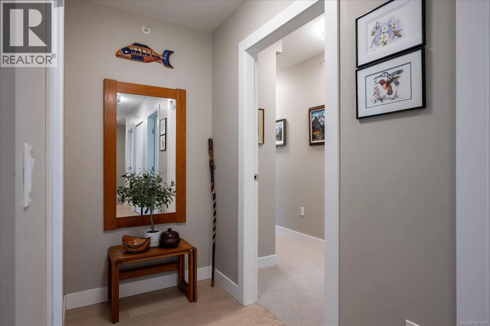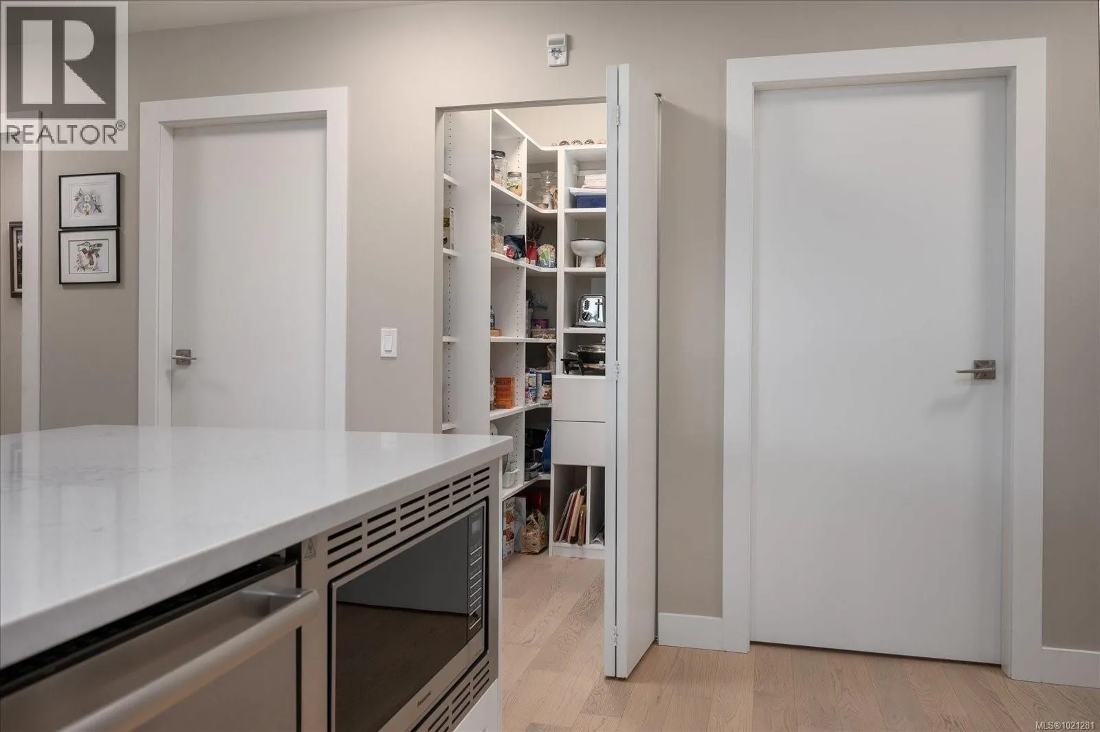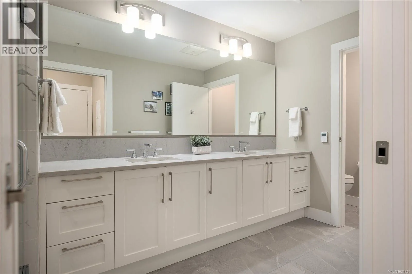 Are you ready to embrace the lifestyle of Nanoose? Largest floor plan at The Westerly! Oceanview is at its best with this modern spacious open-concept condo with 2 bedrooms, one den & 3 bathrooms in Nanoose Bay. Fabulous modern kitchen with a custom walk-in pantry, garburator, stainless steel hood fan & high-end S/S Bosch appliances including a gas stove, built-in microwave and quartz counter tops. A large living room with a gas fireplace. The sleek modern great room has floor-to-ceiling windows that open to let in loads of natural light all with light engineered hard wood floors. It also provides access to the oversized covered patio. The balcony extends the living space and provides a great area to entertain or just sit back and relax and enjoy the ocean breezes. The primary suite has floor-to-ceiling windows with a view of the ocean & a walk-in closet. There is a luxurious bathroom with a walk-in shower, two sinks, quartz countertops & a separate water closet all with a heated floor. Second bedroom is spacious with a closet & a four piece ensuite with quartz countertops. There is also a den; great area for an office. There is a separate laundry room has plenty of built-in custom storage with shelves and hanging. All closets have been outfitted with custom organizers; no expense spared here. Versatile blackout and shear window coverings that are custom and can operate both top down and bottom up. The condo offers all new LED light fixtures. Secured underground parking. The condo also has a storage locker in the basement. There is both bike and kayak storage. The Westerly offers an amenities room with a kitchen and large entertaining area available for use for all residents. The Westerly also allows a maximum of two pets; either cats, dogs or one of each. No size limit. Amazing amenities near by include the Schooner Cover Marina, Nanoose Bay Cafe, Fairwinds Golf & Wellness Club. Come and embrace the active lifestyle which The Westerly has to offer! (id:27476)