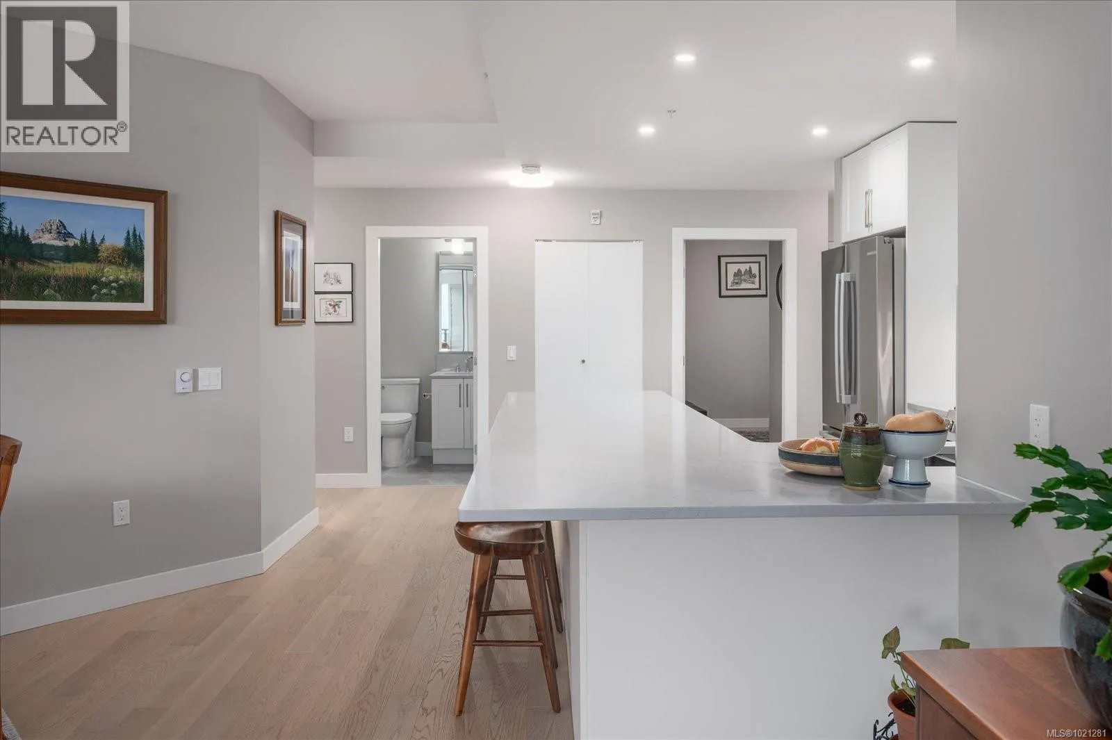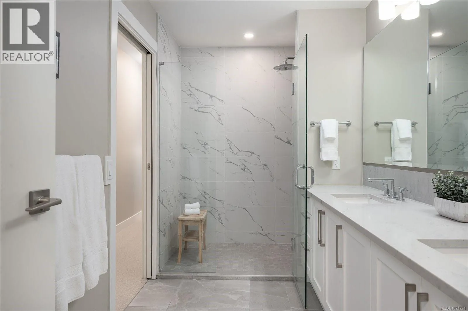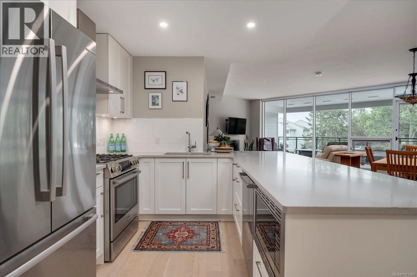 Are you ready to embrace the lifestyle of Nanoose? Largest floor plan at The Westerly! Oceanview is at its best with this modern spacious open-concept condo with 2 bedrooms, one den & 3 bathrooms in Nanoose Bay. Fabulous modern kitchen with a custom walk-in pantry, garburator, stainless steel hood fan & high-end S/S Bosch appliances including a gas stove, built-in microwave and quartz counter tops. A large living room with a gas fireplace. The sleek modern great room has floor-to-ceiling windows that open to let in loads of natural light all with light engineered hard wood floors. It also provides access to the oversized covered patio. The balcony extends the living space and provides a great area to entertain or just sit back and relax and enjoy the ocean breezes. The primary suite has floor-to-ceiling windows with a view of the ocean & a walk-in closet. There is a luxurious bathroom with a walk-in shower, two sinks, quartz countertops & a separate water closet all with a heated floor. Second bedroom is spacious with a closet & a four piece ensuite with quartz countertops. There is also a den; great area for an office. There is a separate laundry room has plenty of built-in custom storage with shelves and hanging. All closets have been outfitted with custom organizers; no expense spared here. Versatile blackout and shear window coverings that are custom and can operate both top down and bottom up. The condo offers all new LED light fixtures. Secured underground parking. The condo also has a storage locker in the basement. There is both bike and kayak storage. The Westerly offers an amenities room with a kitchen and large entertaining area available for use for all residents. The Westerly also allows a maximum of two pets; either cats, dogs or one of each. No size limit. Amazing amenities near by include the Schooner Cover Marina, Nanoose Bay Cafe, Fairwinds Golf & Wellness Club. Come and embrace the active lifestyle which The Westerly has to offer! (id:27476)