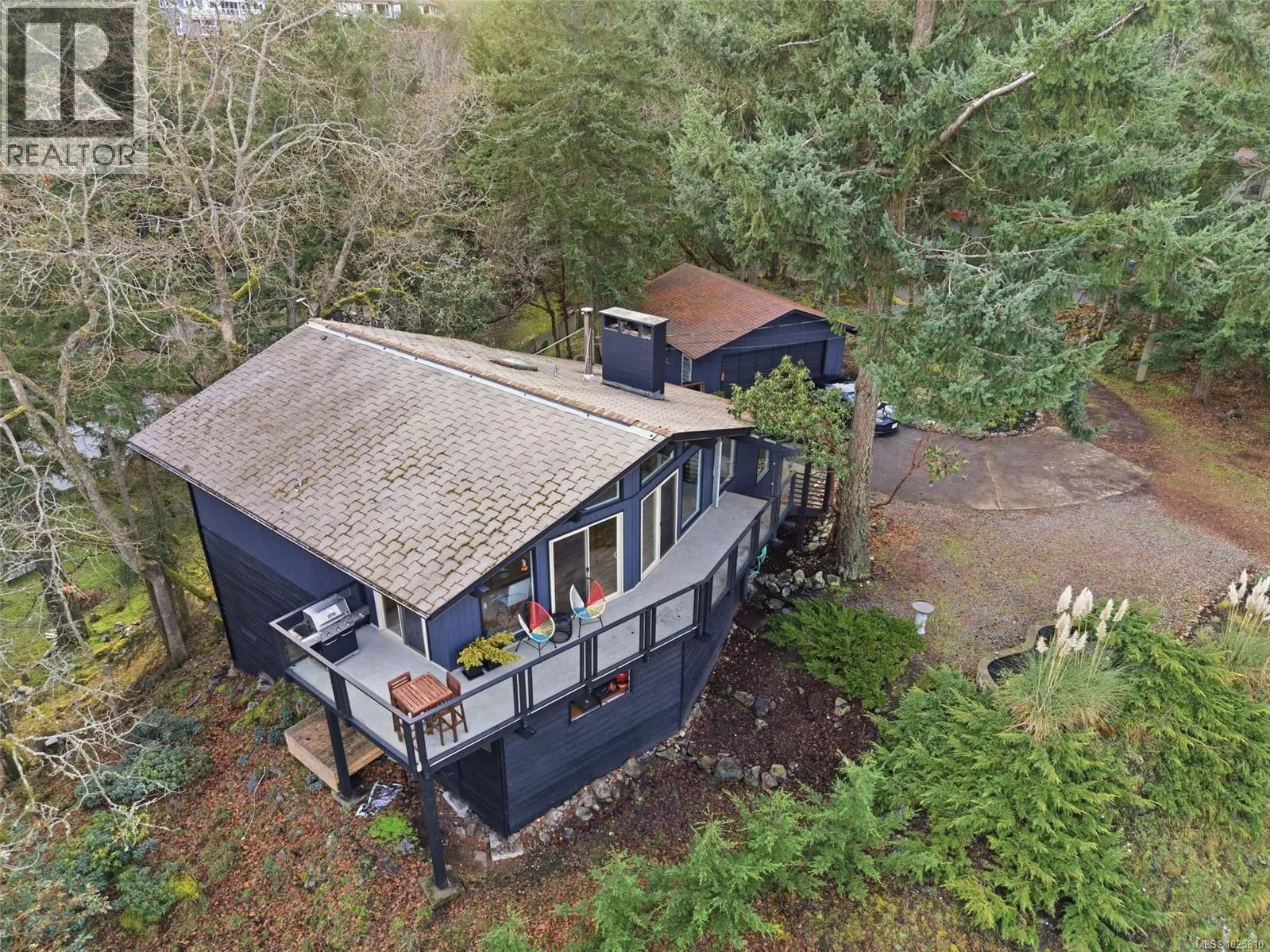 Minutes from Schooner Cove Marina on Vancouver Island you will find this charming West Coast home with Ocean and Mountain views. Accessed by a private driveway and blending high ceilings and large windows with natural surroundings, this beautifully-designed home features open plan living with post-and-beam construction. Numerous windows and sliding doors frame the captivating forest views, and extensive use of local wood allows for seamless indoor-outdoor living. Living/Dining/Kitchen on the main level flows together with 2 bedrooms and a fresh newer bathroom. Newly-installed glass railings lead to the cozy lower level, complete with polished concrete flooring, 2 piece bathroom and an updated wood stove â a tranquil haven to relax in year-round. A separate detached double garage gives you plenty of room for a workshop and several outdoor sitting areas encourage peaceful outdoor relaxation in a warm, natural, and airy retreat. This could be Your Nanoose Bay Dream Home. (id:27476)