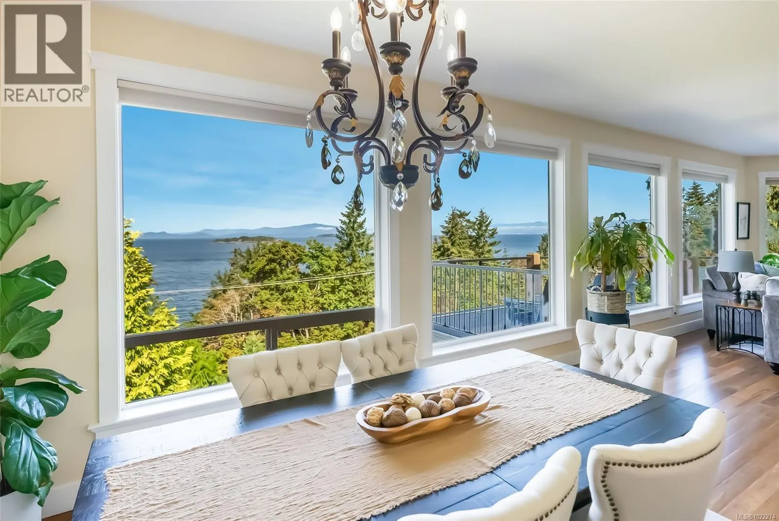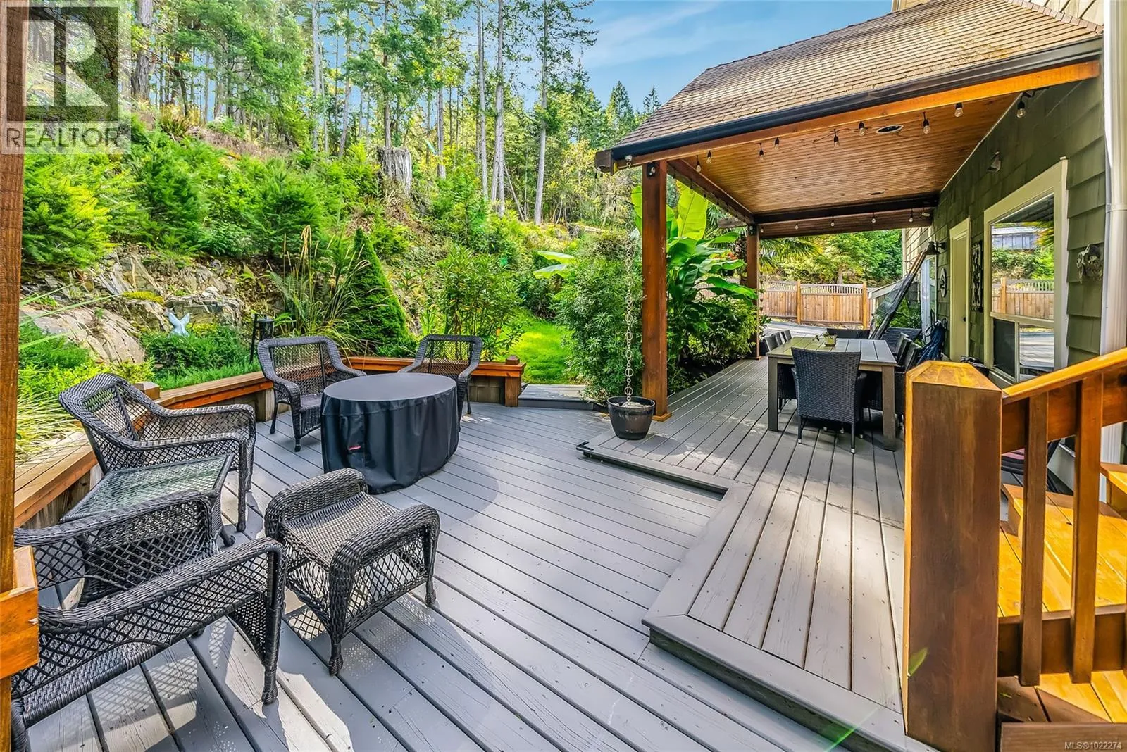 Exquisite Nanoose Bay Oceanview Residence! Don't miss this bright and spacious 3 Bed plus Den/Office/3 Bath Custom Home on an elevated .37 acre offering a sweeping views of the forest, coastal Islands, and reaching across the Strait of Georgia to the distant mainland mountains! This owner/contractor built home boasts superb updates, day-to-day living spaces on the upper level, a fully-finished ground level that is perfect for hosting guests, lots of private deck space, picture windows showcasing fabulous views, and it is a 20 min drive to Parksville and North Nanaimo for shopping/amenities! From the spacious foyer with slate flooring, a staircase brings you to a sizable Great Room with Jatoba hardwood flooring and a breathtaking panorama of picture windows with far-reaching views. The Deluxe Island Kitchen has ample wood cabinetry, a WI pantry, new quartz CTs, quality stainless appliances incl a gas cooktop, and a Nook with a door to a 466 sqft deck with dynamic views of the forest, Dorcas Point, the Yeo Islands, Gerald, Amelia, and Douglas Islands, Lasqueti and Texada Islands, and the Georgia Strait. Completing the upper level is a Primary Bedroom Suite with a WI closet, bamboo flooring, and a 5 pc ensuite with a soaker tub and a WI shower. Nearby is a Laundry Room and a 2 pc Powder Room. The 1154 sqft ground level of the home hosts a cozy Den/Office, and two spacious Bedrooms (one with views) that share ''Jack-&-Jill'' access to a 3 pc Bath. Completing the ground level is a 440 sqft Double Garage and a Furnace/Utility Room. A door opens to a 598 sqft lower deck with a BBQ area, south exposure, and a sun-soaked backyard with a palm tree, ferns, and a backdrop of towering evergreens. Tucked away in the forest behind the home are Fairwinds walking trails, it is a short walk to beach access, & you are just mins from Fairwinds Landing and Marina, the golf course, & Red Gap Shopping Center. Visit our website for more pics, a VR Tour, a floor plan and more. (id:27476)