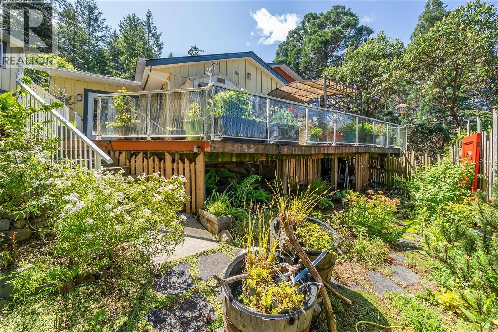 Fabulous Nanoose Bay Oceanview Home with Carriage House! Lovely ocean and island views, exceptional privacy, and a prime location just moments from the beach! Don't miss this landscaped .31-acre lot hosting a spacious 2372 sqft 3 Bed/3 Bath Oceanview Home plus a large Double Garage topped with a Carriage House for extended family or an Airbnb rental. This captivating home boasts an expansive floor plan, a skylight and abundant glass for brightness, a huge wraparound deck, and lovely views reaching over forested neighborhood to the ocean and several islands, with backdrop of distant mainland mountains. There's also an upper-level Primary Suite, although the home offers the option for main-level living if desired. Perfectly situated on Nanoose Bay's main seaside route, Dolphin Drive, close to a waterfront village with a restaurant and marina, a golf course, lovely walking trails, and just 20 minutes from Parksville and North Nanaimo for shopping and amenities! From a good-sized parking pad, a stylish glass door welcomes you to a magical front yard with lush gardens and a water feature. Inside, warm wood floors extend through an open-concept Kitchen/Living/Dining area with windows on three sides. The Kitchen boasts a tiered island, walk-in pantry, built-in oven, beverage cooler, and custom âBirds Eyeâ maple cabinetry with a hidden TV. The Dining Room has a built-in china cabinet, and the Living Room features a propane fireplace and French doors to a huge glass-railed deck with ocean, island, and mountain views. The deck has space for multiple seating areas. There's also a fenced yard and a larger undeveloped backyard with a towering sequoia. The Family Room offers a fireplace and deck access, plus a nearby Bedroom Suite, 4-pc Main Bath, and Den/Office. Upstairs, the Primary Suite has a gas fireplace, private view deck, dual closets, and spa ensuite. Bonus: 516 sqft Carriage House above the Garage with full Bath. Visit our website for more info. (id:27476)
