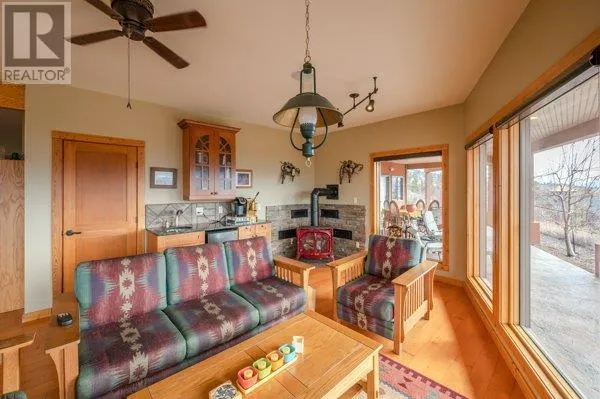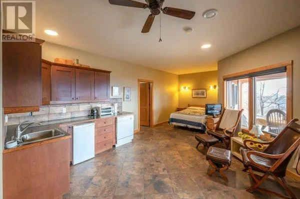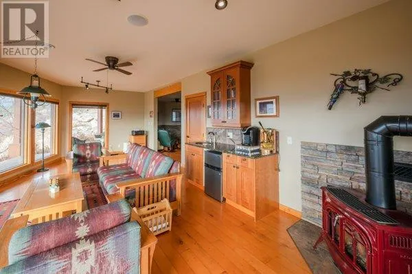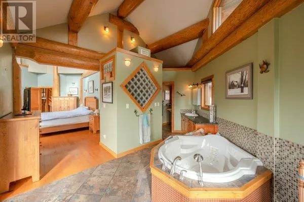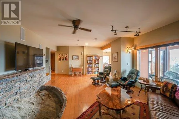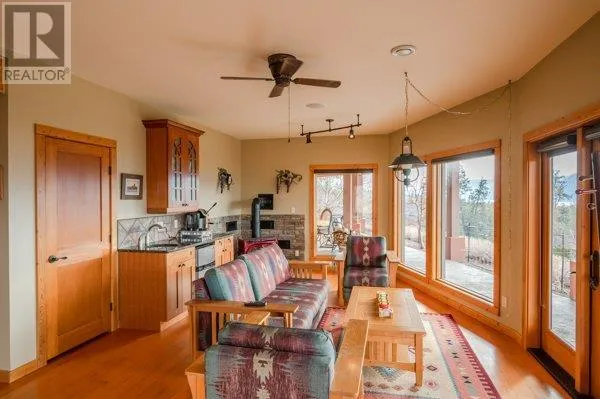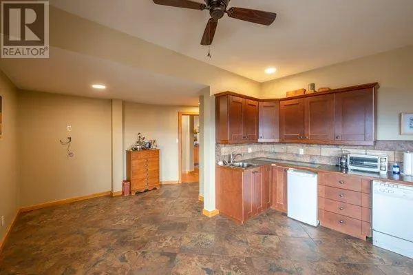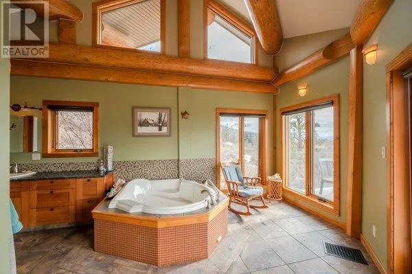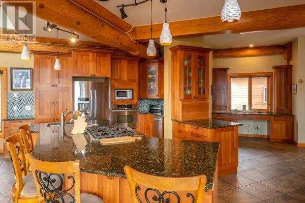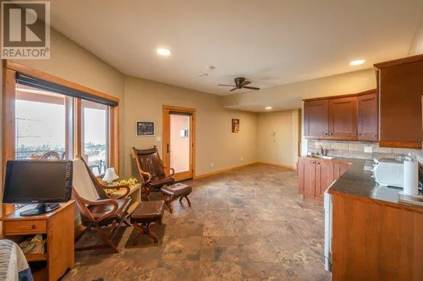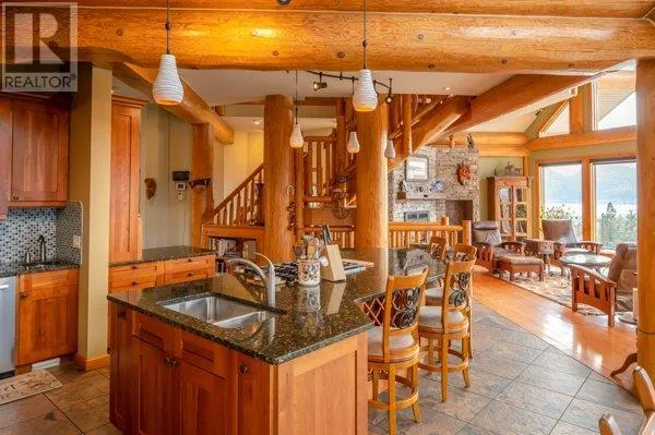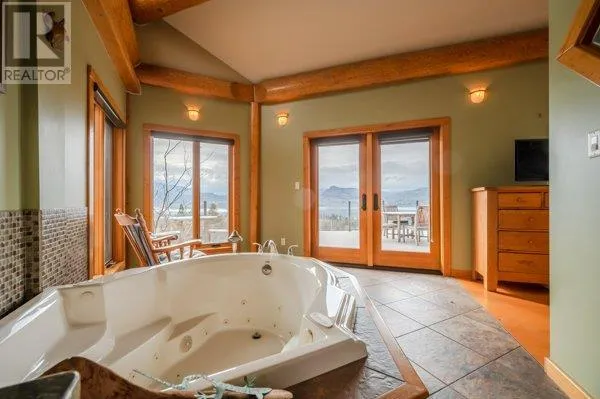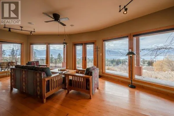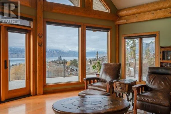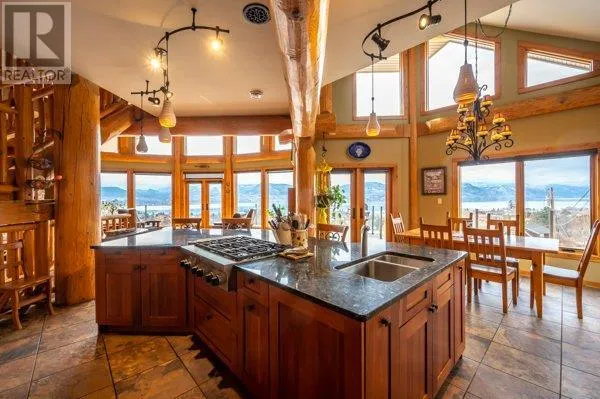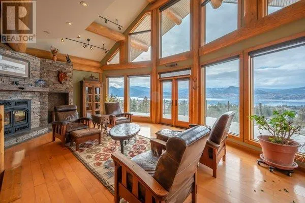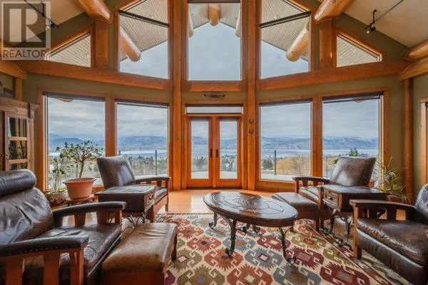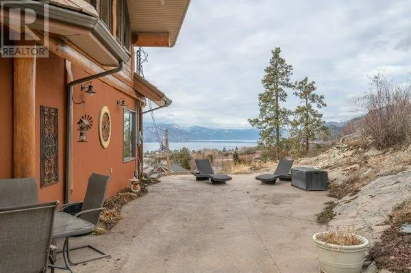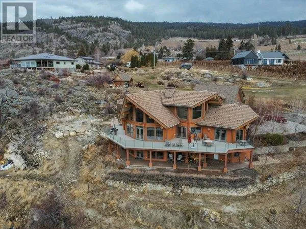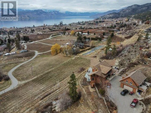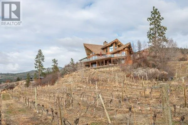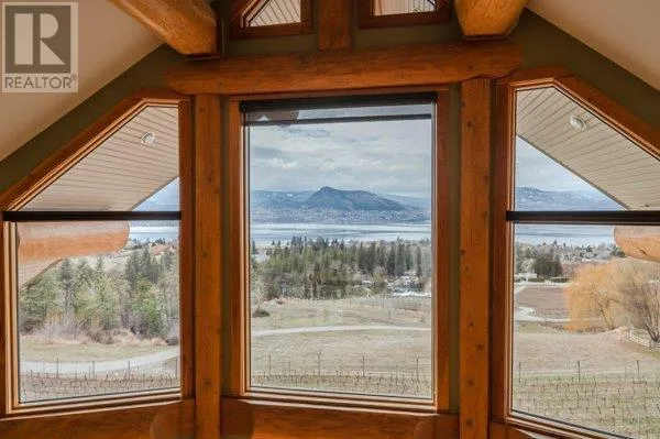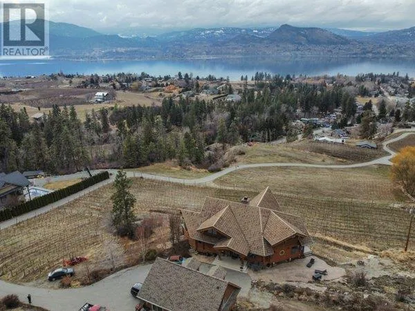 Architectural masterpiece of a log framed home. Barely a square corner to be found across nearly 4200 sq/ft of finished space just in the main home. 724 sq/f flex space above the garage. Geothermal heating system with Natural Gas back up. Durable tile roof and recently replaced Duradek on balcony. Naramata living at its finest. 2.54 acre lakeview home with cathedral ceiling and well thought out floor plan. Extra income options above detached garage suite and lower nanny suite below. Walk-out suite with lots of natural light overlooking the vineyard. Fruit farm varieties for enjoying the lands. (id:27476)