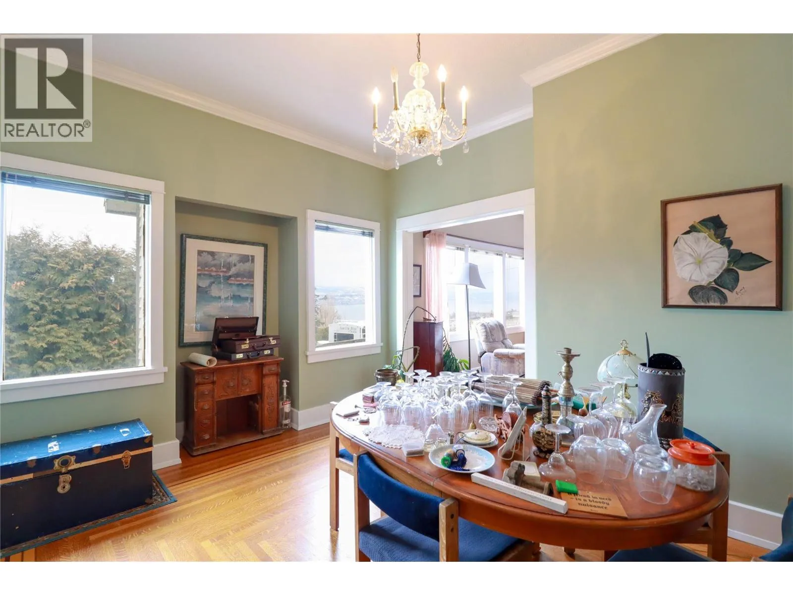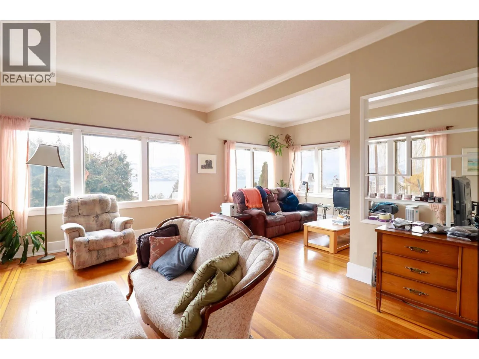 Welcome to a little piece of Naramata history in this magnificent 100-year-old home, a timeless treasure dating back to the 1920s and one of the very first built on the beautiful Naramata bench. Boasting approximately 4700 square feet of handcrafted living space, this character home features seven spacious bedrooms and three bathrooms. As you step through the front door, the original hardwood floors and enduring charm immediately set the tone for a residence steeped in history with modern convenience. The main floor welcomes you with an oversized living room that radiates warmth, a cozy dining room perfect for family gatherings, and a bright, spacious kitchen that offers delightful views of the backyard pool and the surrounding landscape. Here, the master bedroom and two additional guest bedrooms share easy access to a well-appointed main bathroom, ensuring comfort and practicality. Ascending to the upper level, you will discover a thoughtfully designed in-law suite complete with two bedrooms, a large living room, and an outdoor deck that showcases stunning panoramic views overlooking Okanagan lake. The lower level provides abundant extra space for a large family, including two additional bedrooms, a generous living area, ample storage, and convenient access to the attached garage. Convenient location close to Wineries, Town of Naramata, Okanagan Lake, Creek Park Waterfalls and more! This home is not merely a residence but a living piece of Naramataâs storied past. (id:27476)