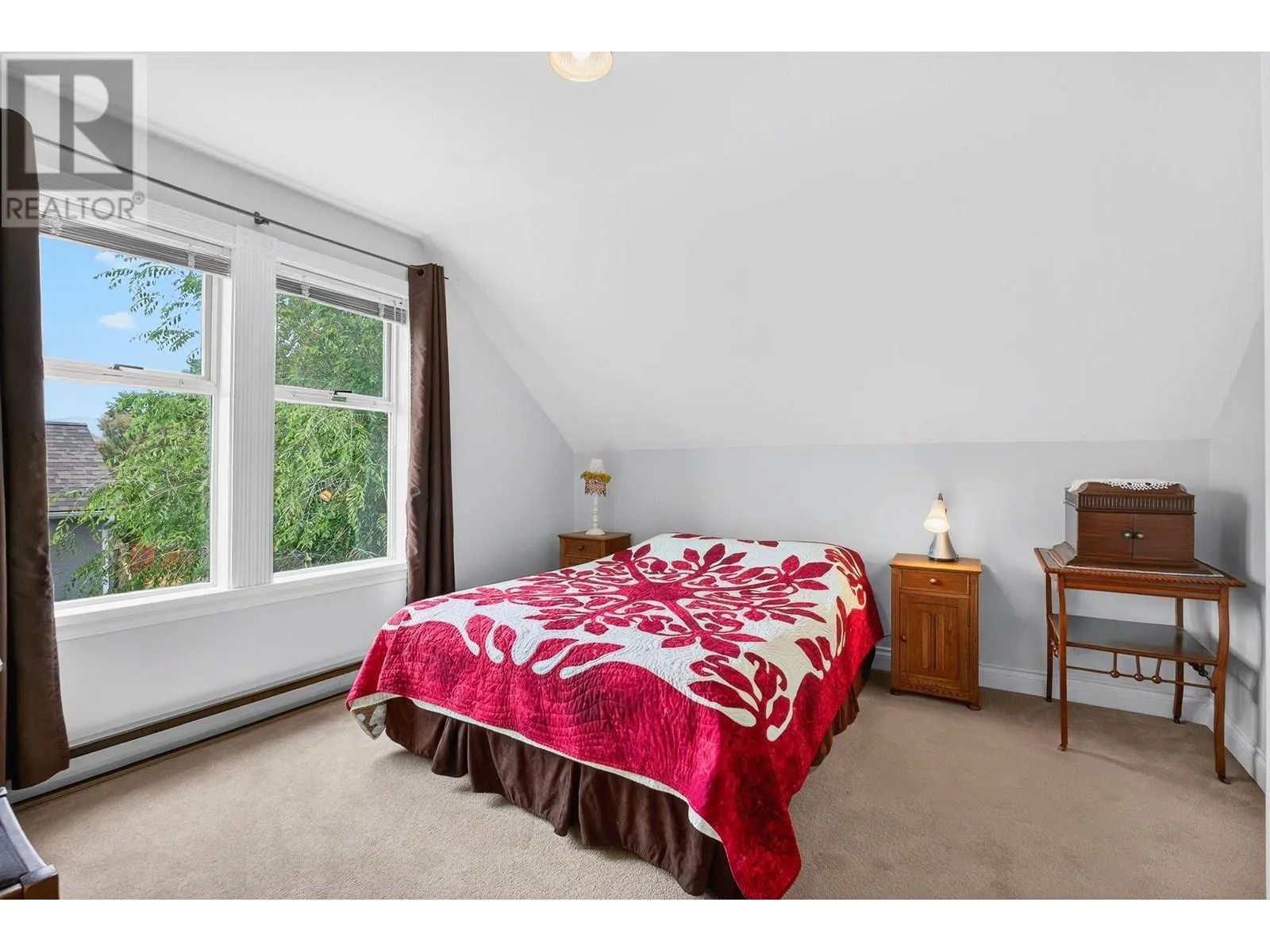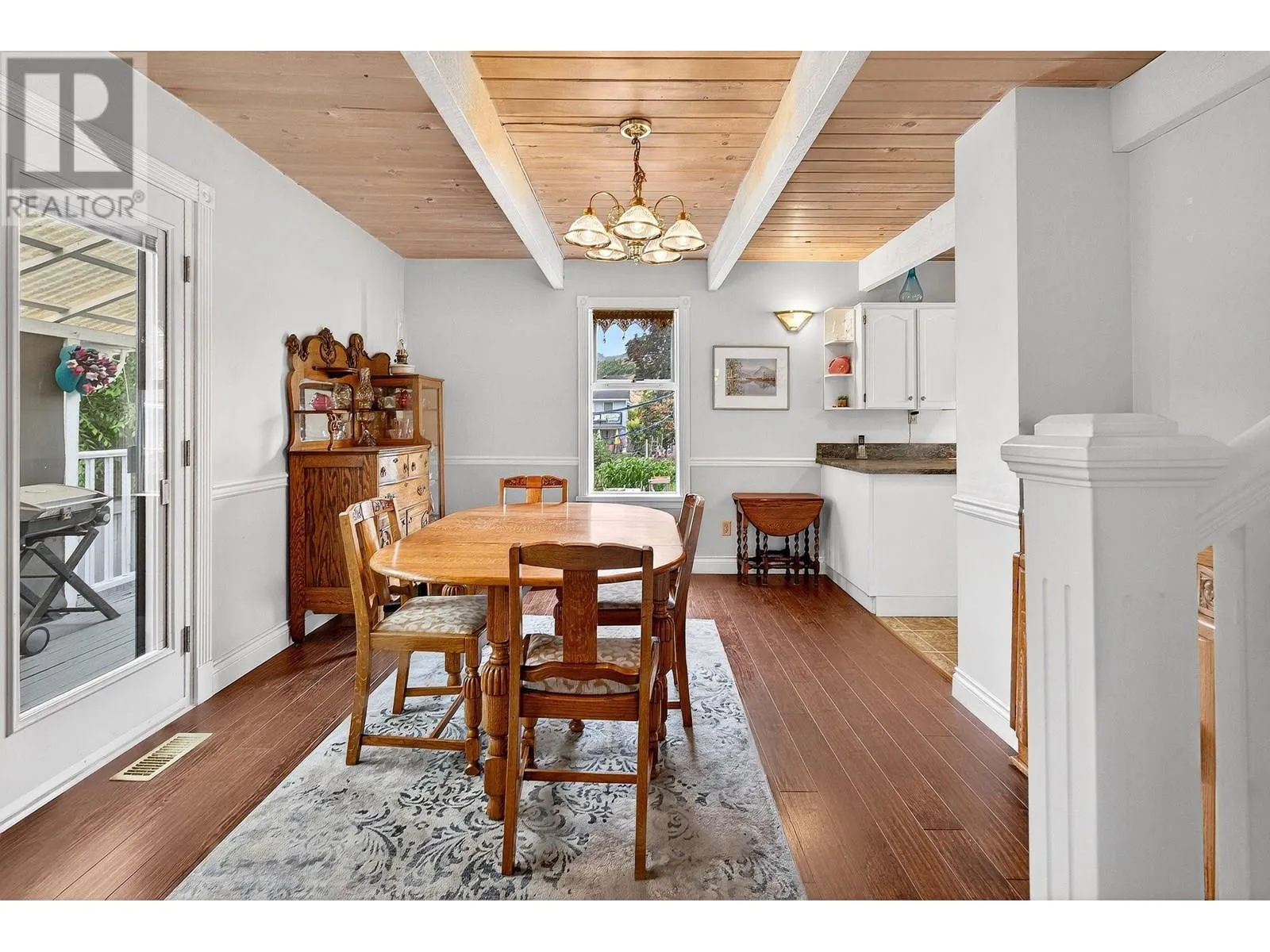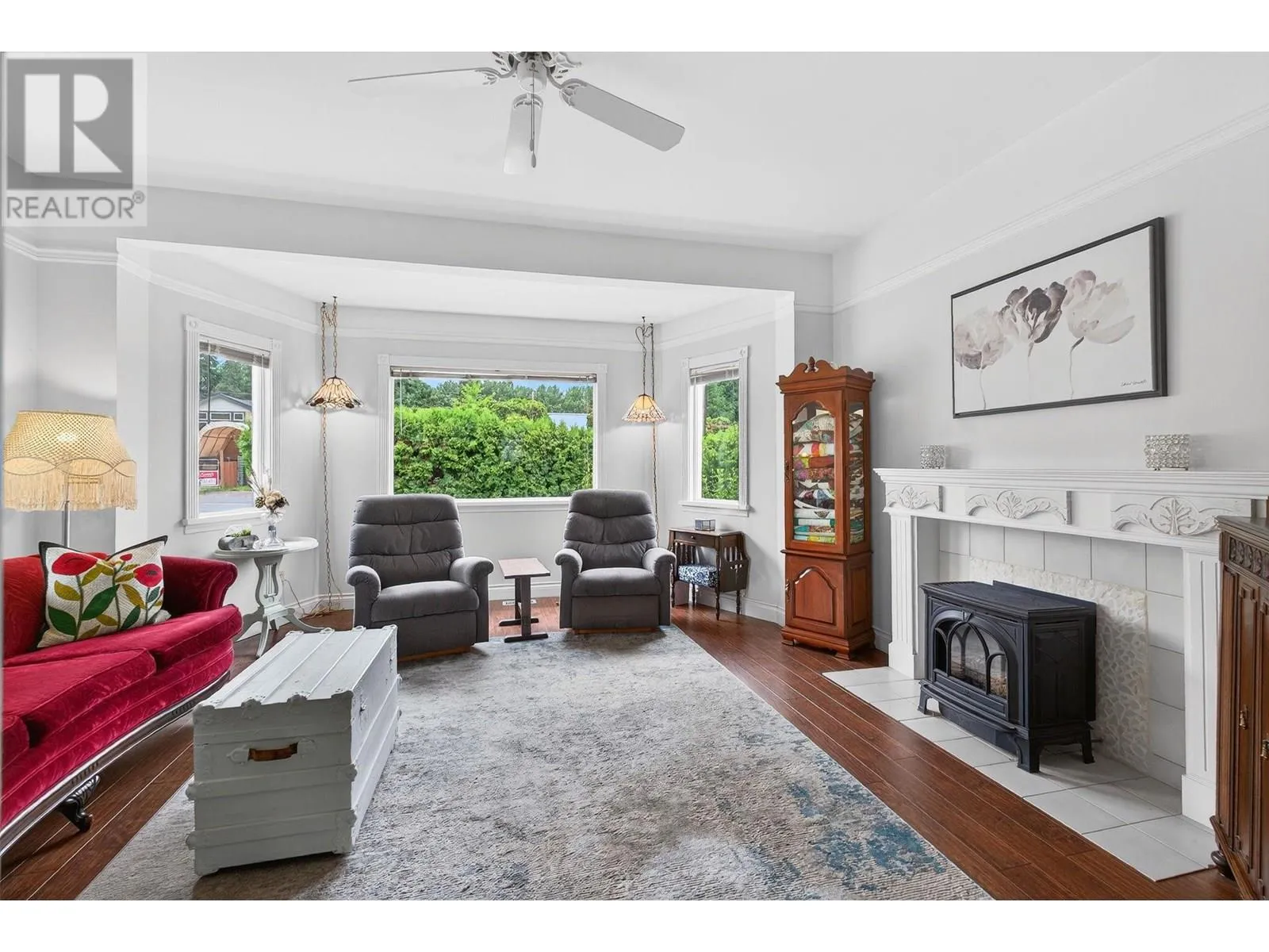 Welcome to a truly special offering in the heart of Naramata Villageâa beautifully maintained 3-bedroom, 3-bathroom heritage-style home that blends timeless character with thoughtful updates, all within walking distance to the school, cafés, beaches, and a short ride to the scenic KVR Trail. This charming two-storey residence is filled with warmth and natural light, featuring warm toned laminate floors and an inviting layout ideal for family living or quiet retreat. The main level boasts a spacious living room, formal dining area, and a well-equipped kitchen with a touch of vintage charm. Step directly from the dining room onto a covered deckâperfect for morning coffee, al fresco dinners, or relaxing in the shade. Upstairs, the primary suite offers a private sanctuary with a walk-in closet, ensuite bath, and a private balcony with morning sunshine views. Two additional bedrooms and a full bath complete the upper level. Outdoors, the abundant garden is a peaceful oasis with mature plantings, ample beds, and space to unwind or entertain. The larger single-car garage includes extensive workshop space and offers conversion potential to a full double garage. Whether youâre looking for a family home, a weekend retreat, or a place to enjoy the simple beauty of Naramata living, this heritage gem offers comfort, character, and a lifestyle to match. All measurements are from floor plans. Contact your favourite agent to request a private tour. (id:27476)
