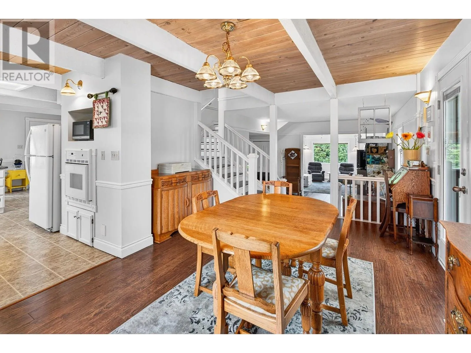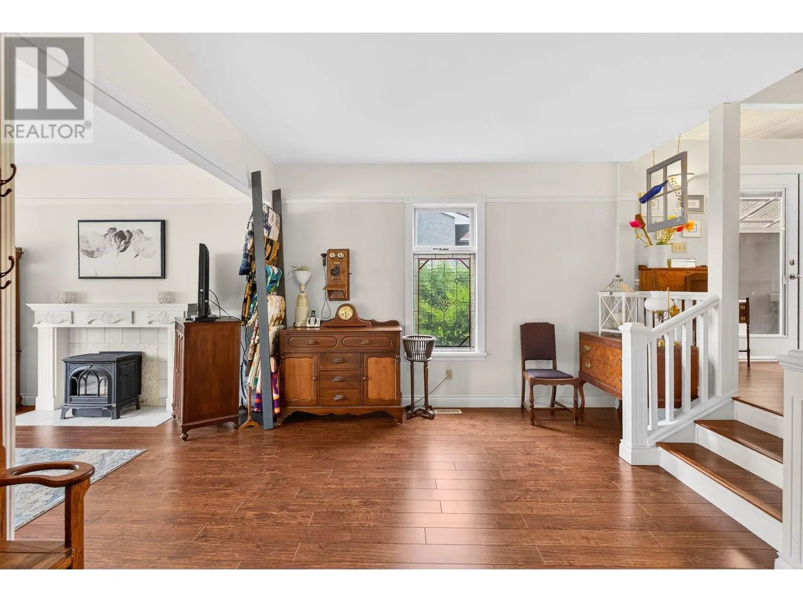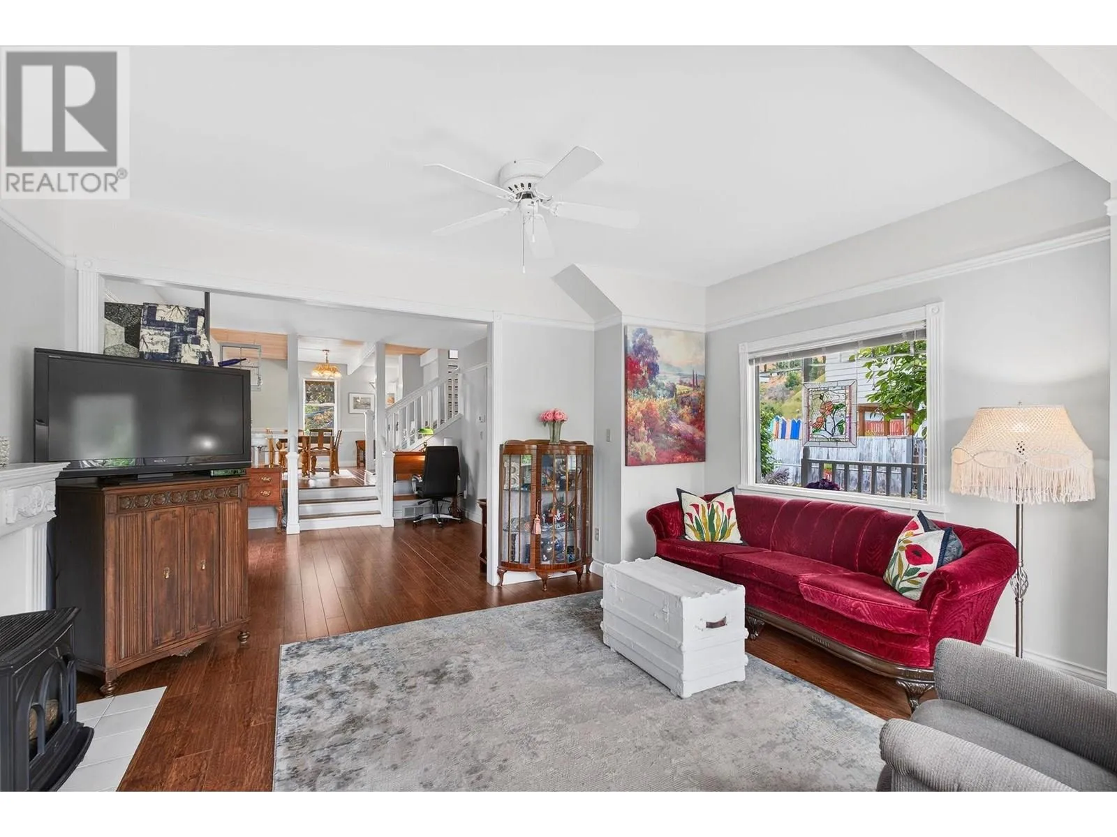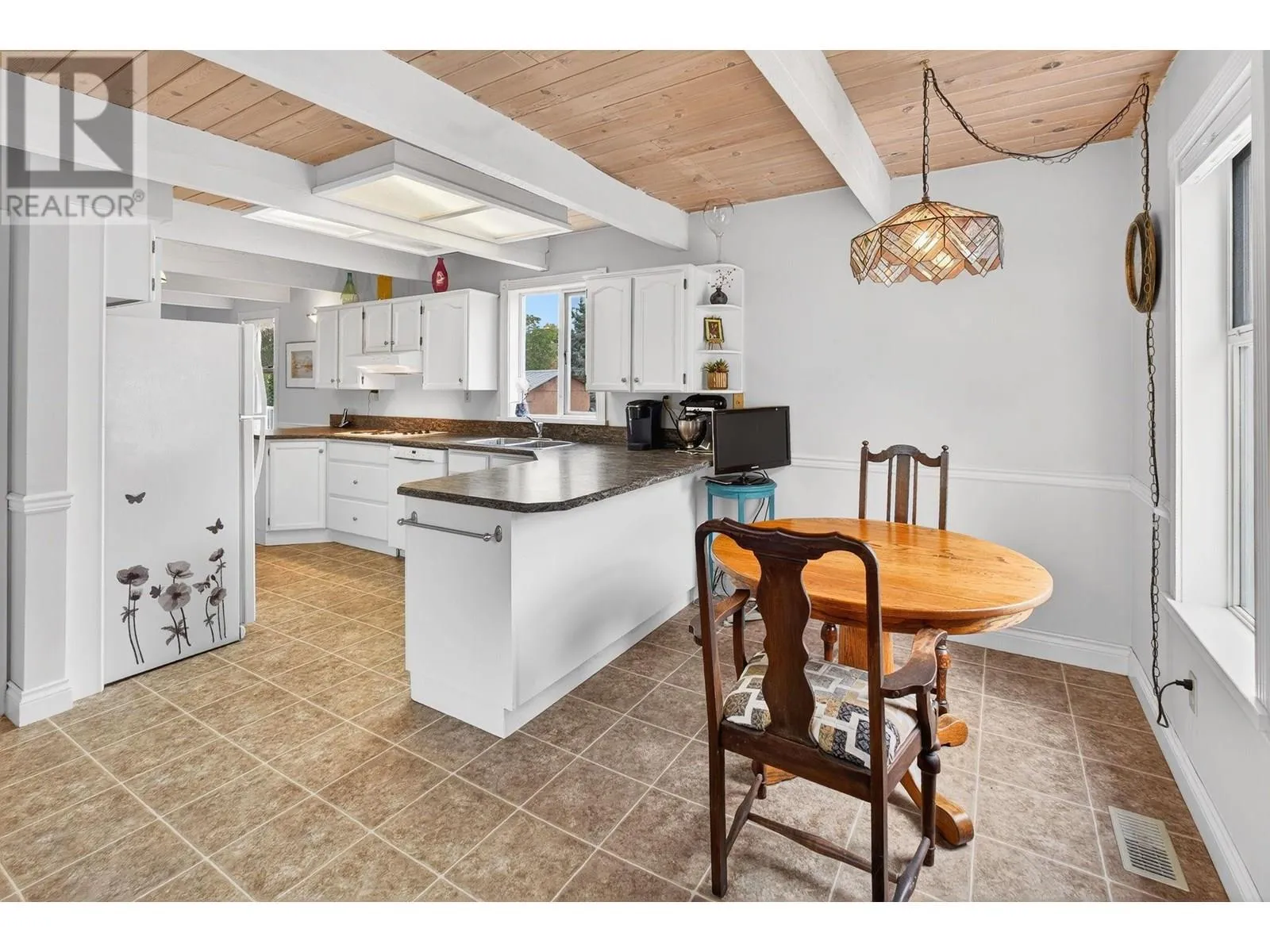 Welcome to a truly special offering in the heart of Naramata Villageâa beautifully maintained 3-bedroom, 3-bathroom heritage-style home that blends timeless character with thoughtful updates, all within walking distance to the school, cafés, beaches, and a short ride to the scenic KVR Trail. This charming two-storey residence is filled with warmth and natural light, featuring warm toned laminate floors and an inviting layout ideal for family living or quiet retreat. The main level boasts a spacious living room, formal dining area, and a well-equipped kitchen with a touch of vintage charm. Step directly from the dining room onto a covered deckâperfect for morning coffee, al fresco dinners, or relaxing in the shade. Upstairs, the primary suite offers a private sanctuary with a walk-in closet, ensuite bath, and a private balcony with morning sunshine views. Two additional bedrooms and a full bath complete the upper level. Outdoors, the abundant garden is a peaceful oasis with mature plantings, ample beds, and space to unwind or entertain. The larger single-car garage includes extensive workshop space and offers conversion potential to a full double garage. Whether youâre looking for a family home, a weekend retreat, or a place to enjoy the simple beauty of Naramata living, this heritage gem offers comfort, character, and a lifestyle to match. All measurements are from floor plans. Contact your favourite agent to request a private tour. (id:27476)