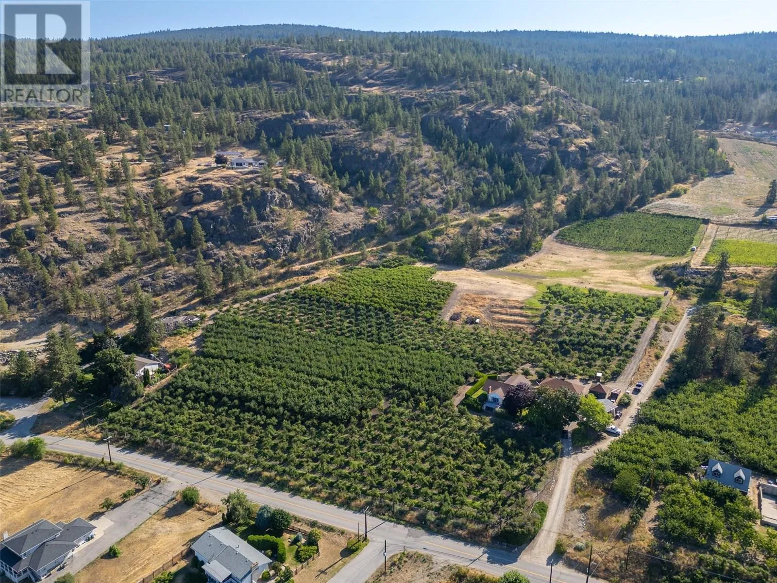 This rare private 11.34 acre farm estate is nestled in the heart of the South Okanagan's wine country above the charming village of Naramata, which is renowned for its vibrant agricultural industry, fertile land, breathtaking landscapes, numerous wineries, & relaxed lifestyle. This is being offered for sale with TWO SEPARATE TITLES, which would allow for many development possibilities including a second primary family home, 2 secondary dwellings, accessory buildings & much more. One 5.47 acre parcel has a charming well-maintained 2382 sqft. rancher-style home with fully-finished walk-out basement, 4 bedrooms plus den/ 2 full bathrooms, attached single garage & a detached over-sized 3 bay garage. Enjoy breathtaking views of Okanagan Lake and surrounding mountains from the living room & large deck. The orchard is planted with pears, cherries, apples & peaches, is deer-fenced and has spray irrigation system throughout. The adjacent gently south-west facing 5.87 acre parcel is planted with apples and peaches. There is a large relatively flat area on an elevated NW section of the property that is currently not planted & could be an exclusive estate home-site. The building site is situated in a picturesque, serene, natural setting that offers stunning, panoramic views of Okanagan Lake, orchards, vineyards & surrounding mountains. Close to all the amenities of Naramata & Penticton. Email jeff@frontstreetrealty.net for more information. (id:27476)