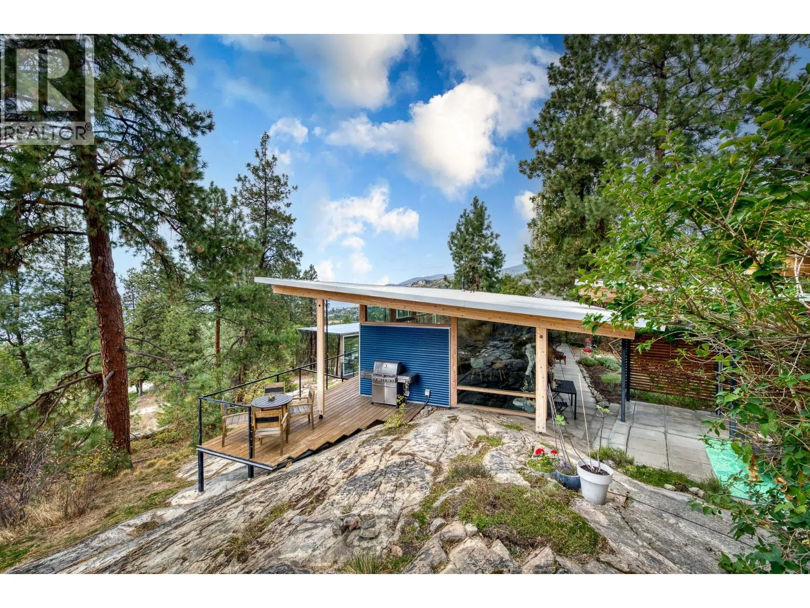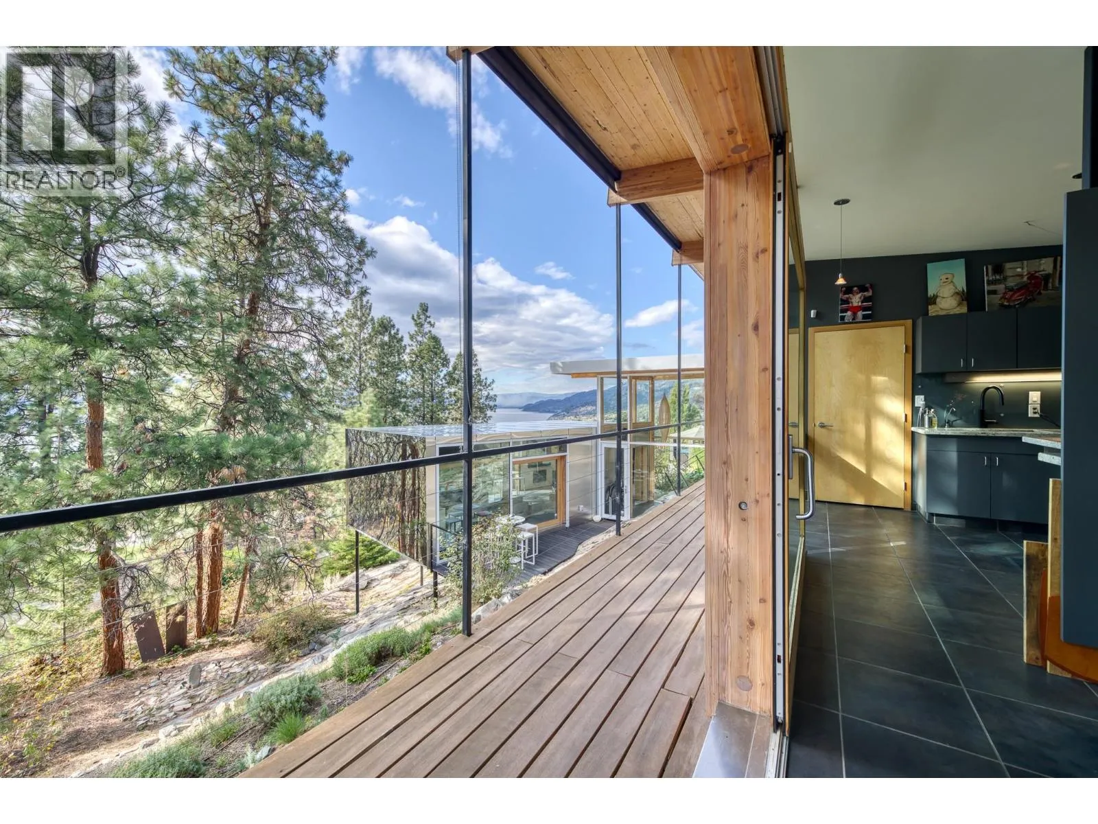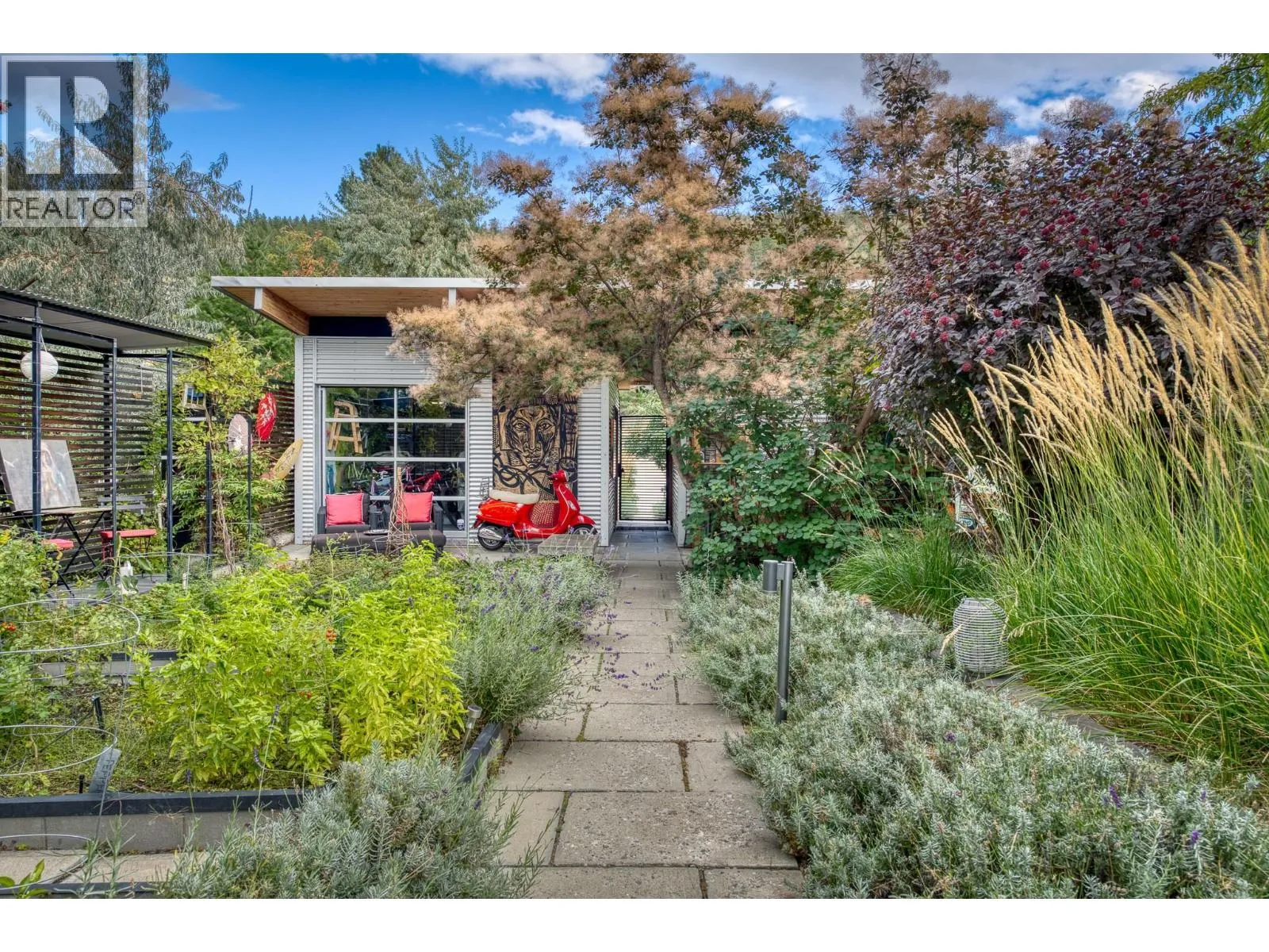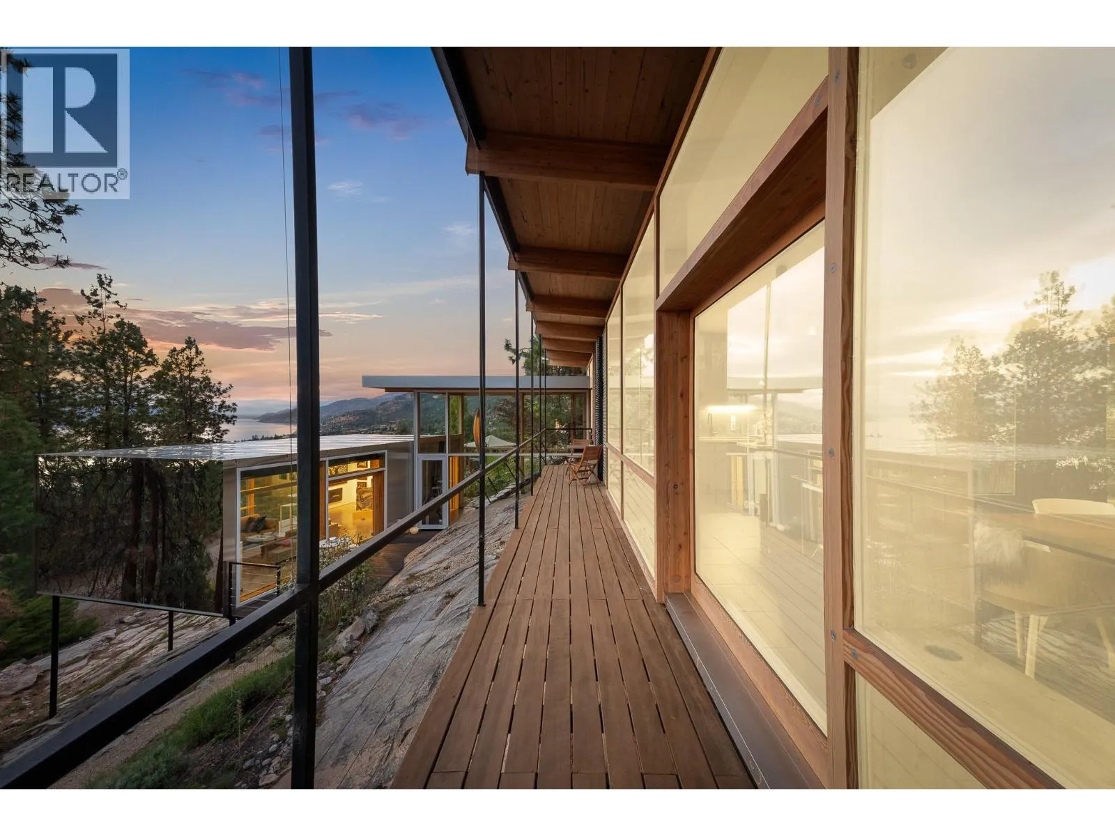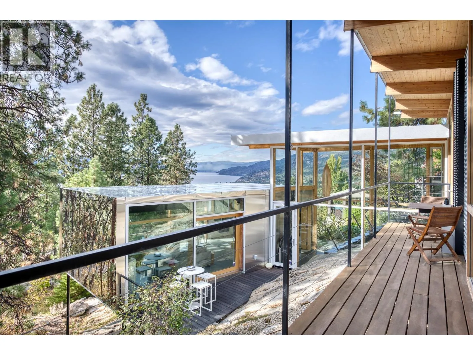 All but hidden from view is 2843 Arawana Place, a work of art designed by renowned Architect Florian Maurer. Designed as his personal residence, this home epitomizes his desire for the calm and serene as he believed the world was loud enough without him adding to it. Winning the Governor General's medal in 2006 for his design, Maurer connects the detached inside spaces by way of exterior flow for effortless functionality, with a focus on the magical courtyard space. In this home you find, rather than an abundance of square footage, a spaciousness bound with total privacy, achieving his goal of controlling the view so as not to have oneâs enjoyment and privacy governed by neighbours. Entering the gates, you pass by the upper level serving as a home office or guest suite, with an adjacent garage and storage area. From there, venture into a secret garden with entertaining spaces, corners for quiet retreat, and the beauty of dappled sun through the leaves of the trees. The second detached space serves as the primary bedroom, while the main space consists of the kitchen, large pantry, living room, and guest bedroom. A large wraparound deck affords gorgeous views through the trees to the lake and mountains where the sounds of nature settle over you. Completing the home is the gallery space, added by the current owners and set upon slim steel posts. Clad in stainless steel reflecting the sky and forest, this structure disappears as it floats above the bedrock, gently fitting into the surrounding greenspace. Book your private viewing of this one-of-a-kind home today! All msmts approx. (id:27476)