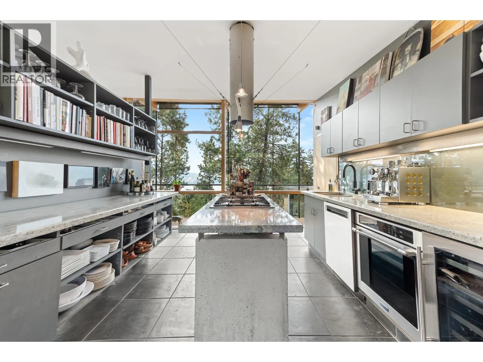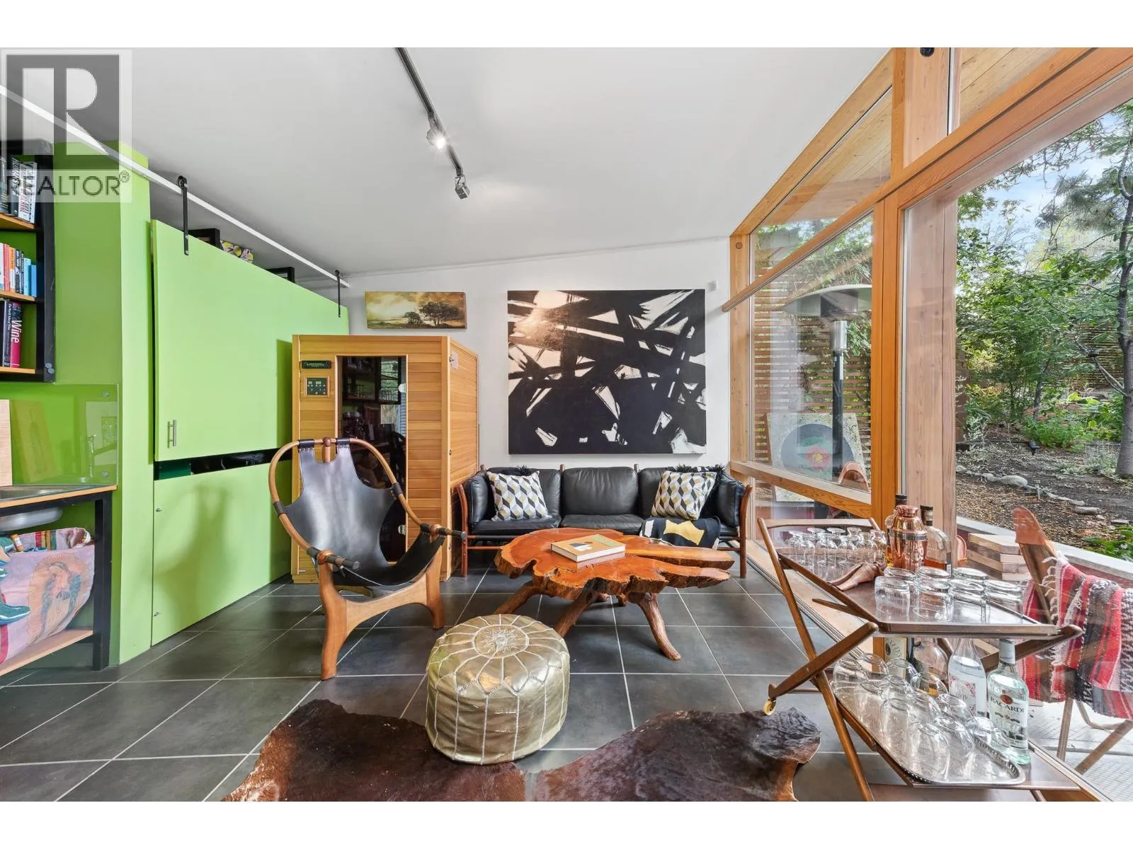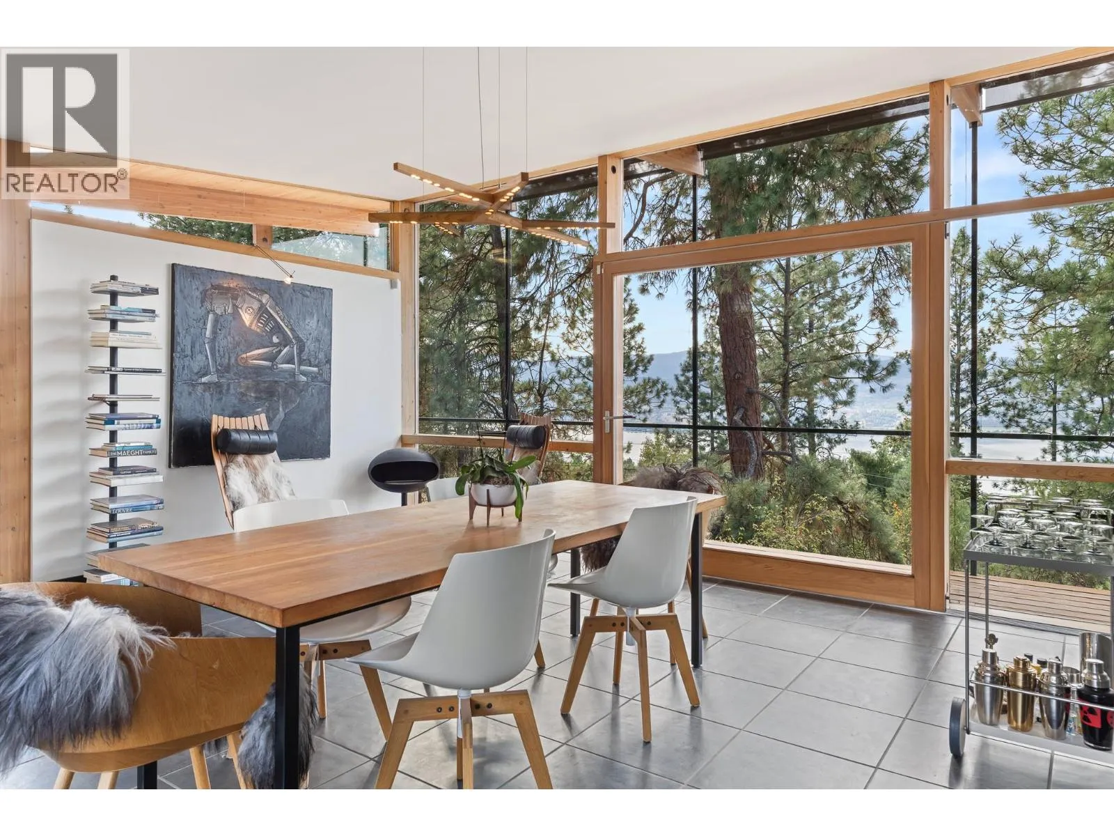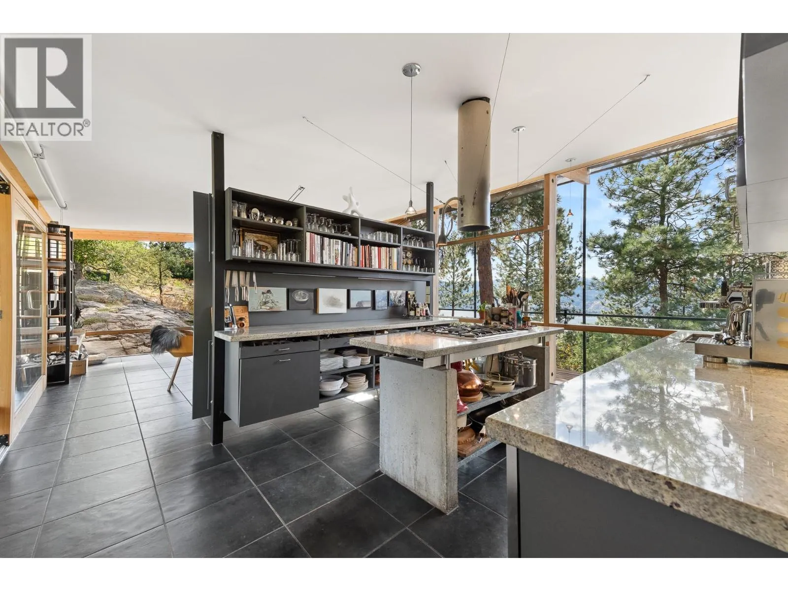 All but hidden from view is 2843 Arawana Place, a work of art designed by renowned Architect Florian Maurer. Designed as his personal residence, this home epitomizes his desire for the calm and serene as he believed the world was loud enough without him adding to it. Winning the Governor General's medal in 2006 for his design, Maurer connects the detached inside spaces by way of exterior flow for effortless functionality, with a focus on the magical courtyard space. In this home you find, rather than an abundance of square footage, a spaciousness bound with total privacy, achieving his goal of controlling the view so as not to have oneâs enjoyment and privacy governed by neighbours. Entering the gates, you pass by the upper level serving as a home office or guest suite, with an adjacent garage and storage area. From there, venture into a secret garden with entertaining spaces, corners for quiet retreat, and the beauty of dappled sun through the leaves of the trees. The second detached space serves as the primary bedroom, while the main space consists of the kitchen, large pantry, living room, and guest bedroom. A large wraparound deck affords gorgeous views through the trees to the lake and mountains where the sounds of nature settle over you. Completing the home is the gallery space, added by the current owners and set upon slim steel posts. Clad in stainless steel reflecting the sky and forest, this structure disappears as it floats above the bedrock, gently fitting into the surrounding greenspace. Book your private viewing of this one-of-a-kind home today! All msmts approx. (id:27476)
