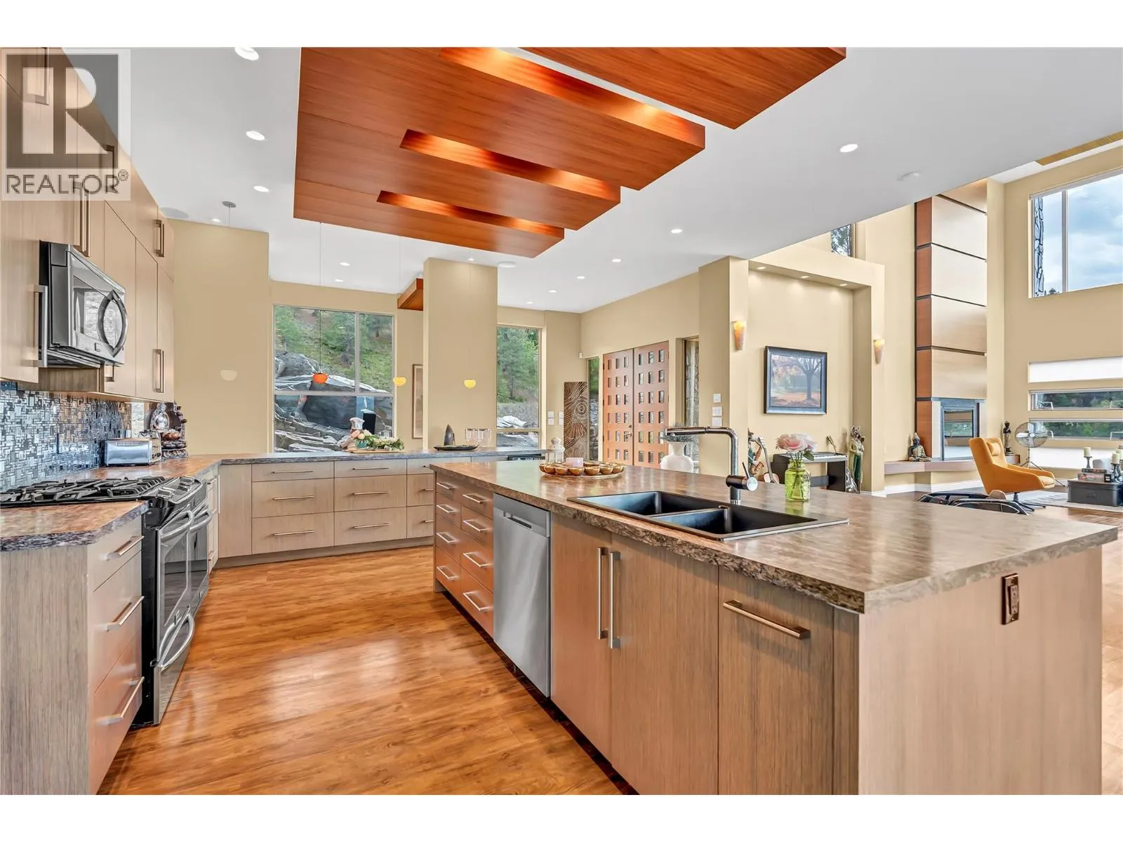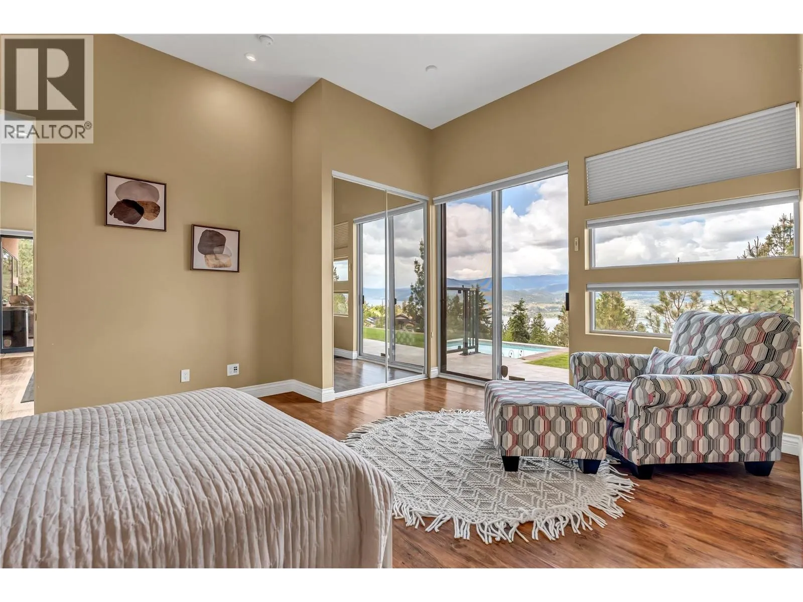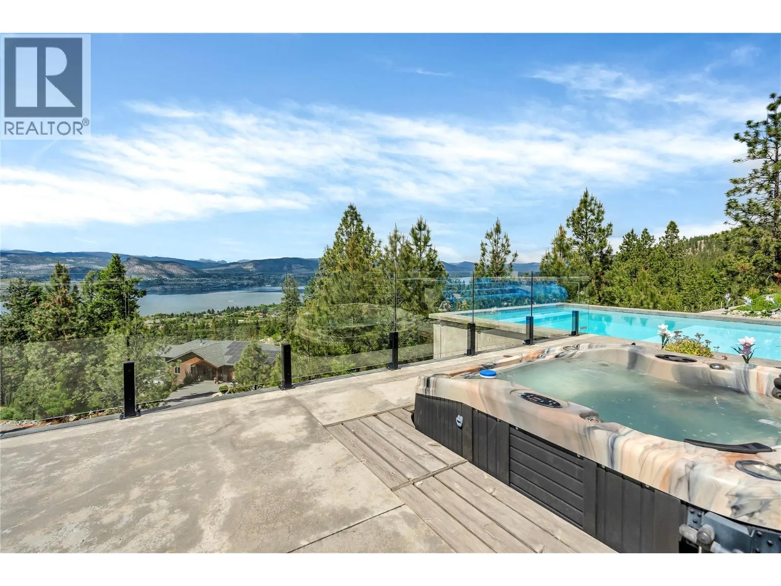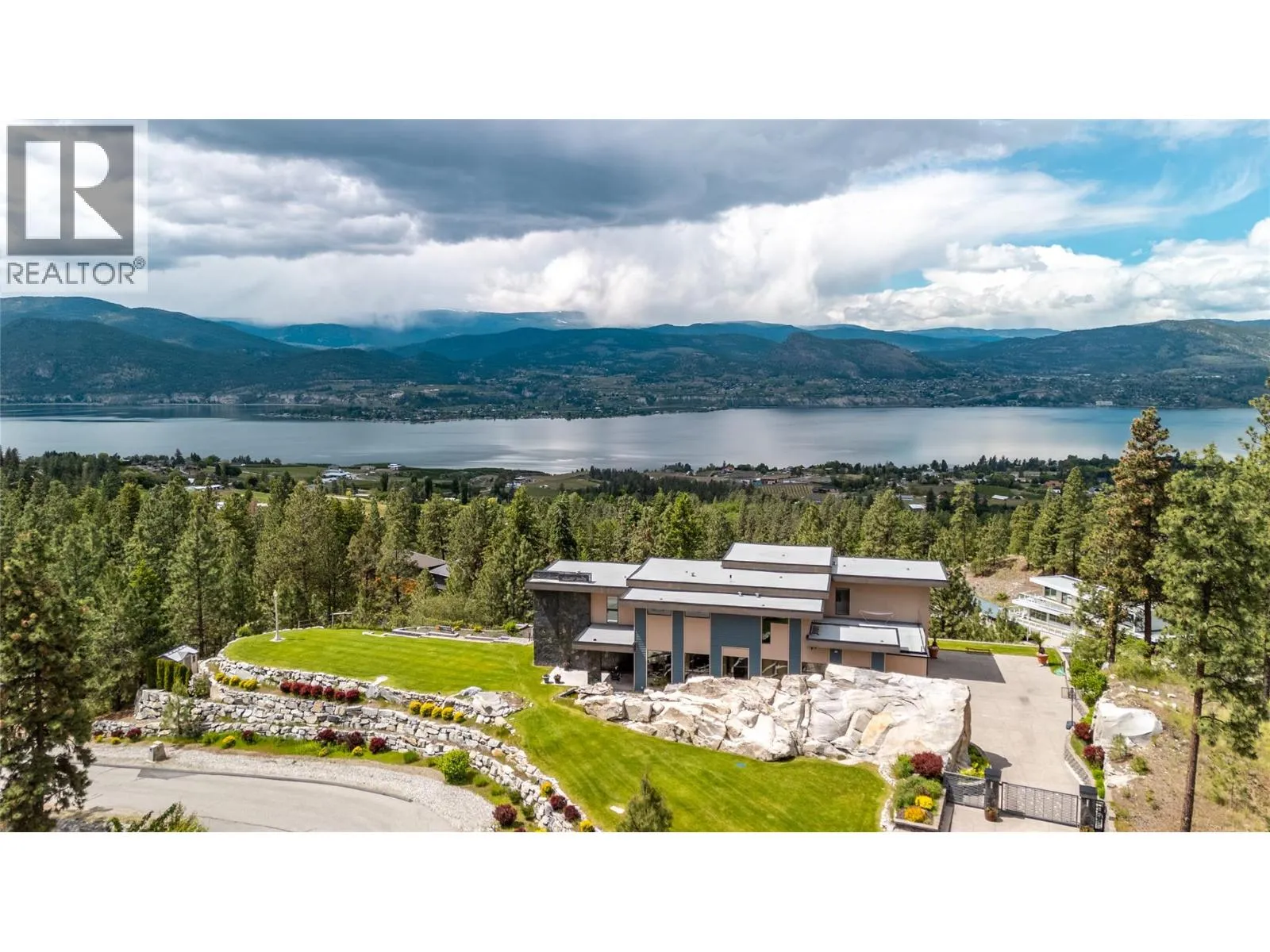 Welcome to Castlerock â A Modern Estate with Unmatched Views and Design Located on the Kettle Valley Rail Trail and surrounded by the award-winning wineries of the Naramata Bench, this exceptional estate offers panoramic views of Okanagan Lake and the surrounding mountains. This thoughtfully designed 5-bedroom, 4.5-bathroom home spans over 4,800 sqft, combining modern architectural elegance with everyday functionality. The open-concept grand room features soaring ceilings, expansive windows, and a gourmet kitchen equipped with high-end appliances and a large walk-in pantry â perfect for entertaining or relaxed family living. Two spacious sundecks â northeast and southwest facing â offer sun or shade throughout the day. Enjoy outdoor living year-round with a heated, chromatically-lit pool, infinity-edge hot tub, and an outdoor fireplace, all positioned to maximize the stunning views. Experience luxury, comfort, and natural beauty in one of the Okanaganâs most desirable locations. (id:27476)