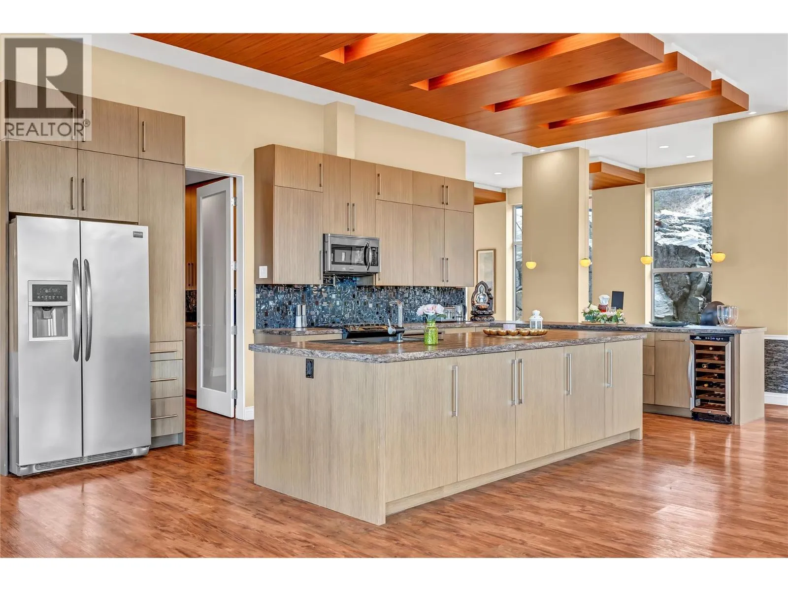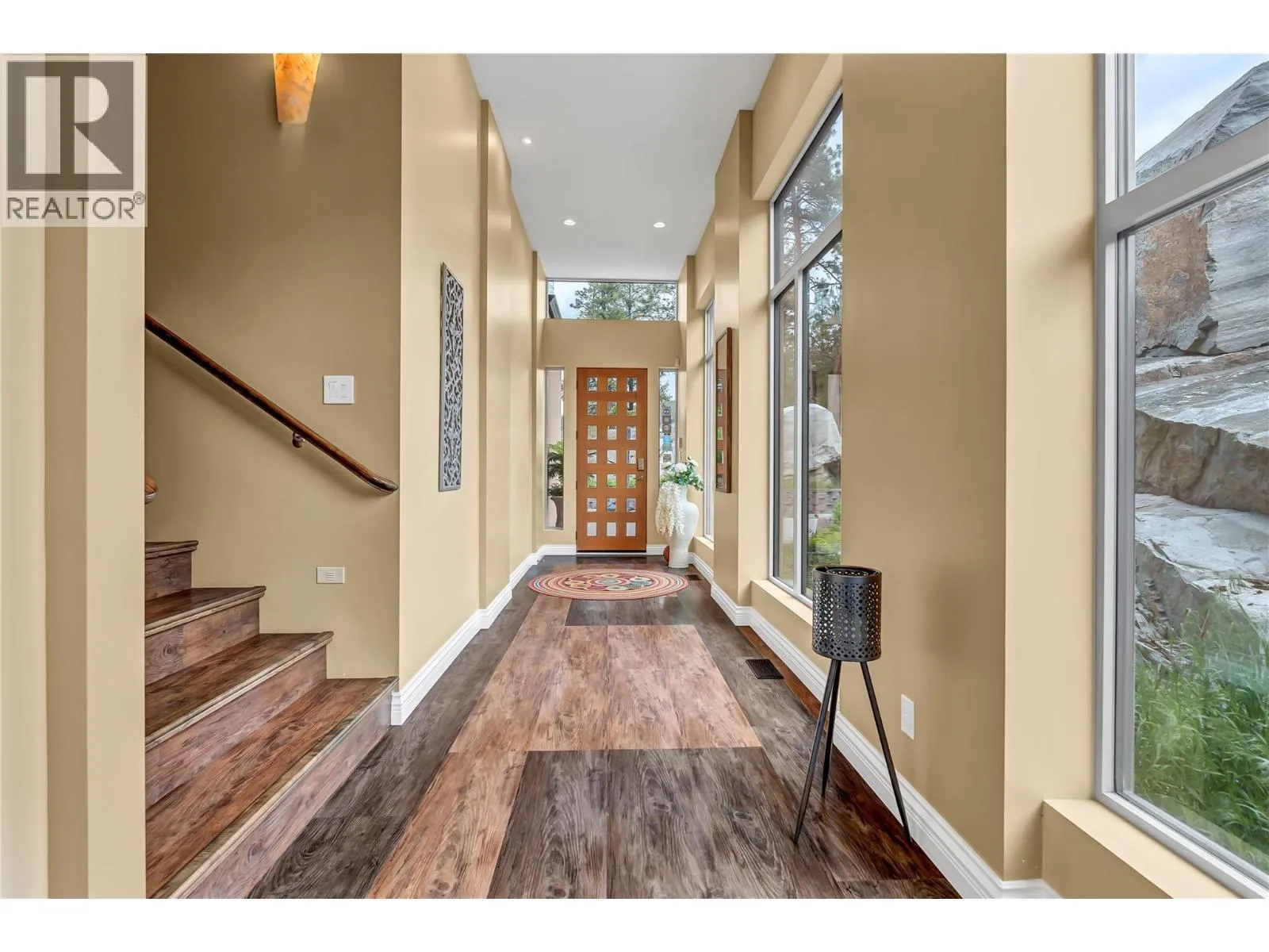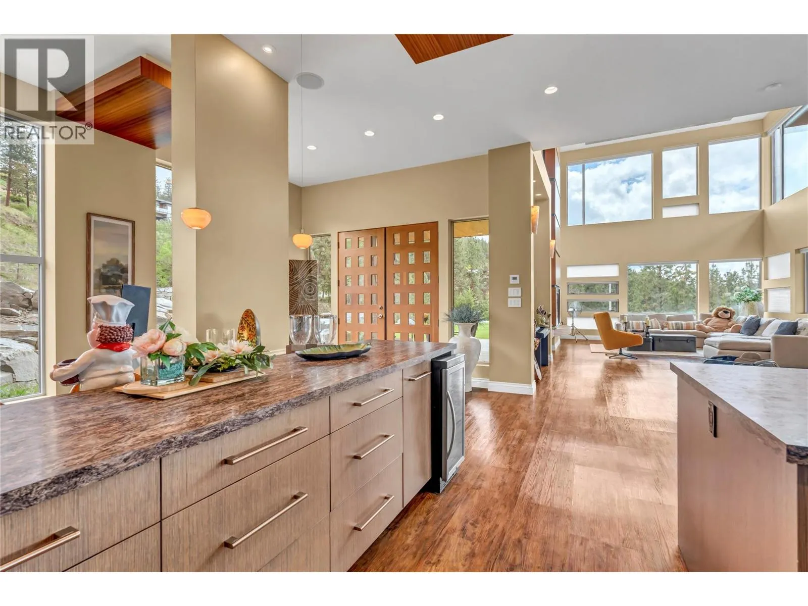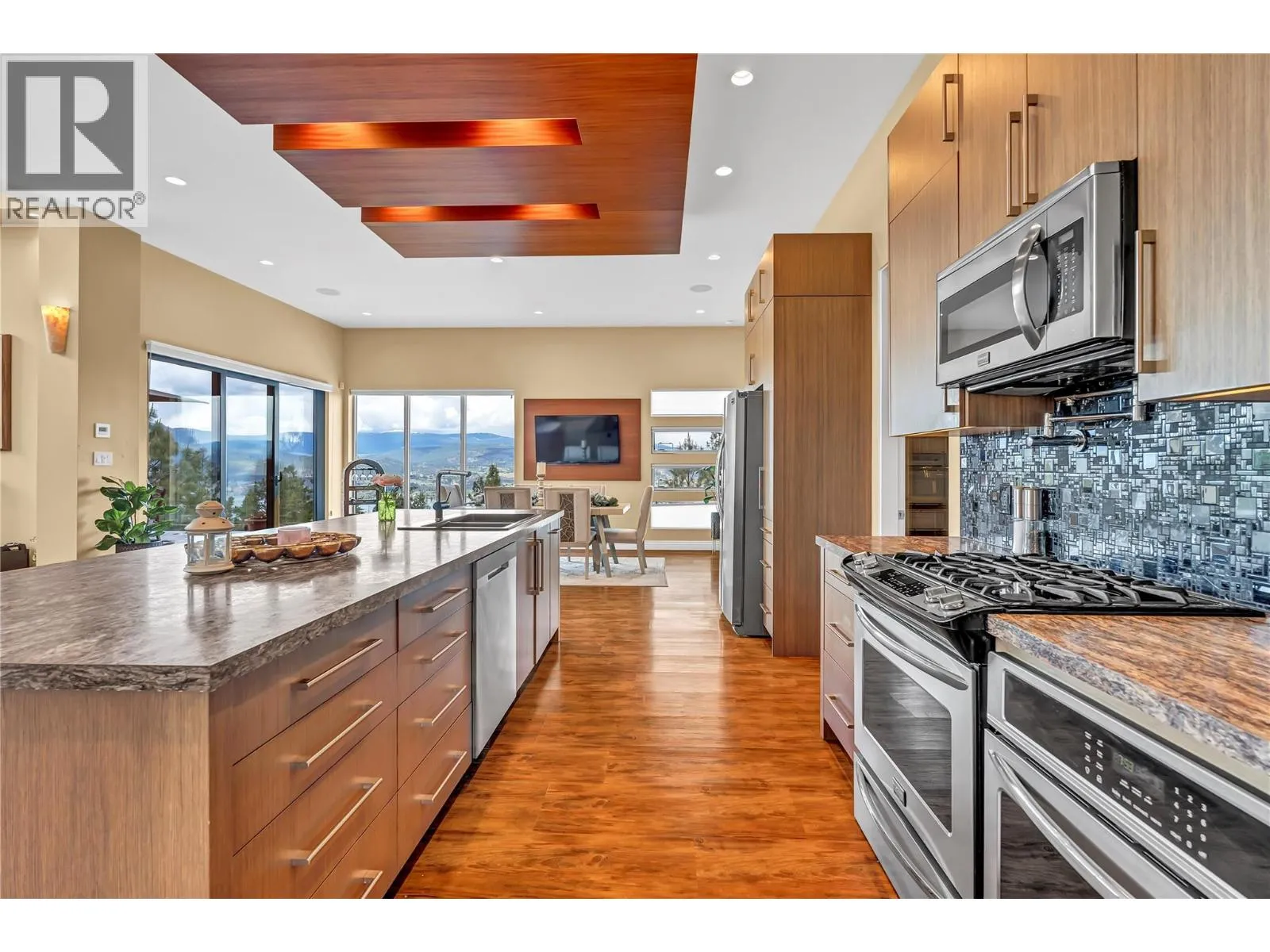 Welcome to Castlerock â A Modern Estate with Unmatched Views and Design Located on the Kettle Valley Rail Trail and surrounded by the award-winning wineries of the Naramata Bench, this exceptional estate offers panoramic views of Okanagan Lake and the surrounding mountains. This thoughtfully designed 5-bedroom, 4.5-bathroom home spans over 4,800 sqft, combining modern architectural elegance with everyday functionality. The open-concept grand room features soaring ceilings, expansive windows, and a gourmet kitchen equipped with high-end appliances and a large walk-in pantry â perfect for entertaining or relaxed family living. Two spacious sundecks â northeast and southwest facing â offer sun or shade throughout the day. Enjoy outdoor living year-round with a heated, chromatically-lit pool, infinity-edge hot tub, and an outdoor fireplace, all positioned to maximize the stunning views. Experience luxury, comfort, and natural beauty in one of the Okanaganâs most desirable locations. (id:27476)