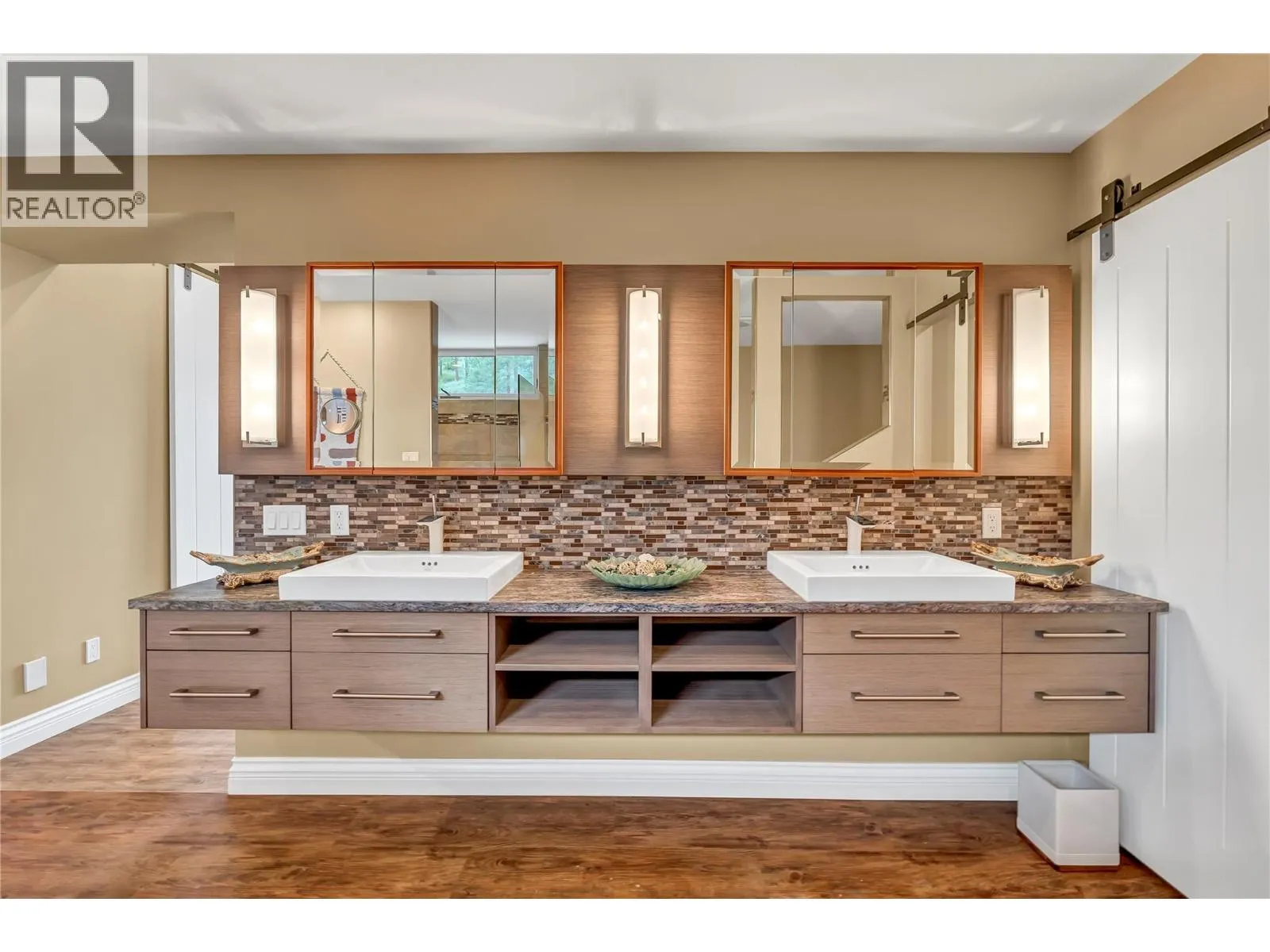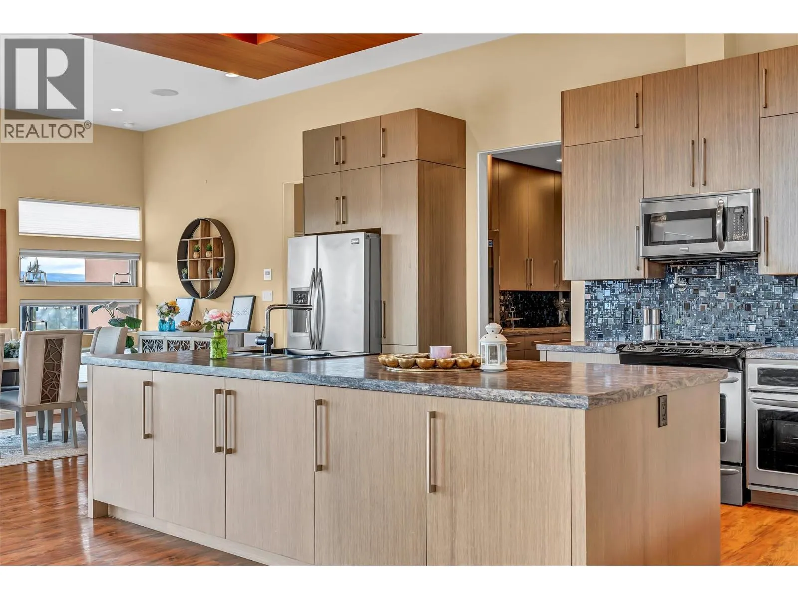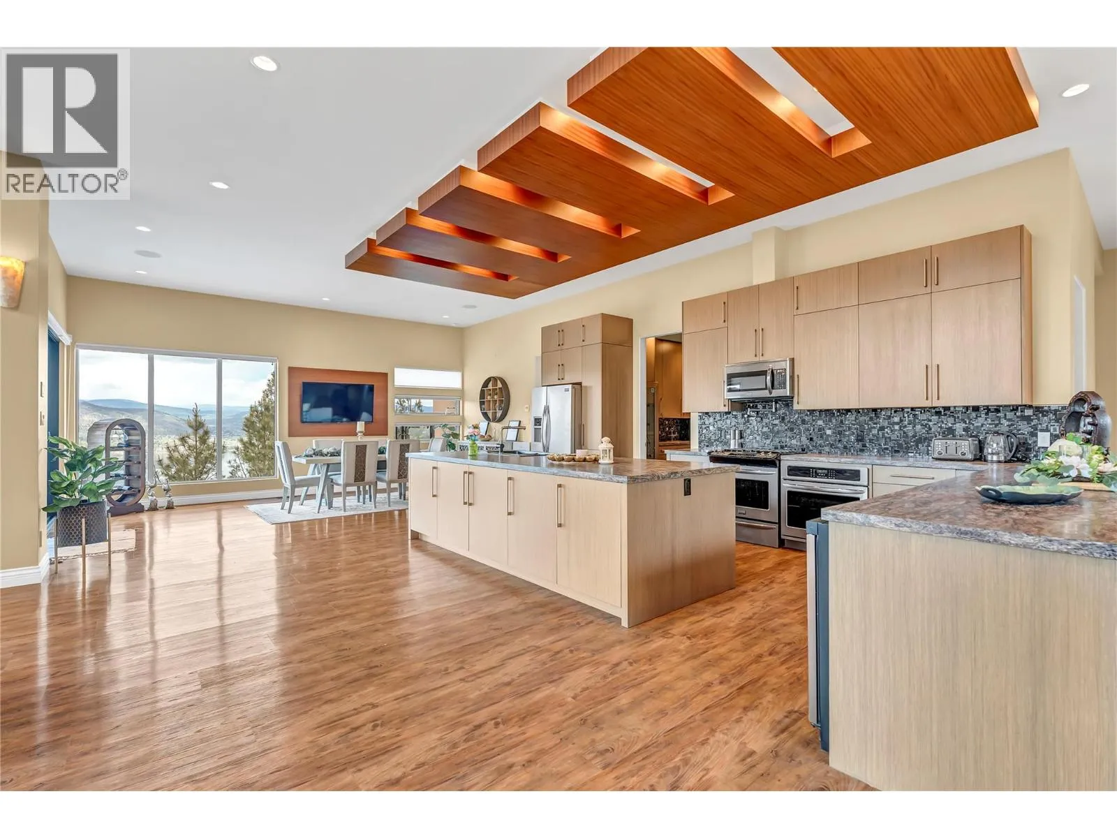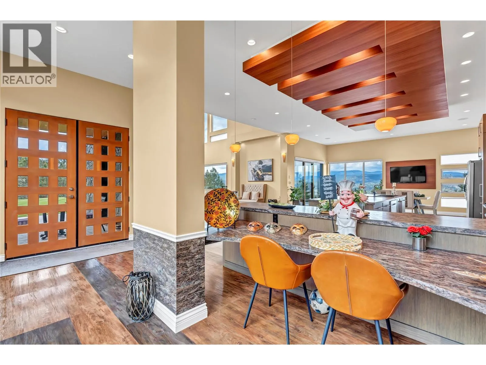 Welcome to Castlerock â A Modern Estate with Unmatched Views and Design Located on the Kettle Valley Rail Trail and surrounded by the award-winning wineries of the Naramata Bench, this exceptional estate offers panoramic views of Okanagan Lake and the surrounding mountains. This thoughtfully designed 5-bedroom, 4.5-bathroom home spans over 4,800 sqft, combining modern architectural elegance with everyday functionality. The open-concept grand room features soaring ceilings, expansive windows, and a gourmet kitchen equipped with high-end appliances and a large walk-in pantry â perfect for entertaining or relaxed family living. Two spacious sundecks â northeast and southwest facing â offer sun or shade throughout the day. Enjoy outdoor living year-round with a heated, chromatically-lit pool, infinity-edge hot tub, and an outdoor fireplace, all positioned to maximize the stunning views. Experience luxury, comfort, and natural beauty in one of the Okanaganâs most desirable locations. (id:27476)