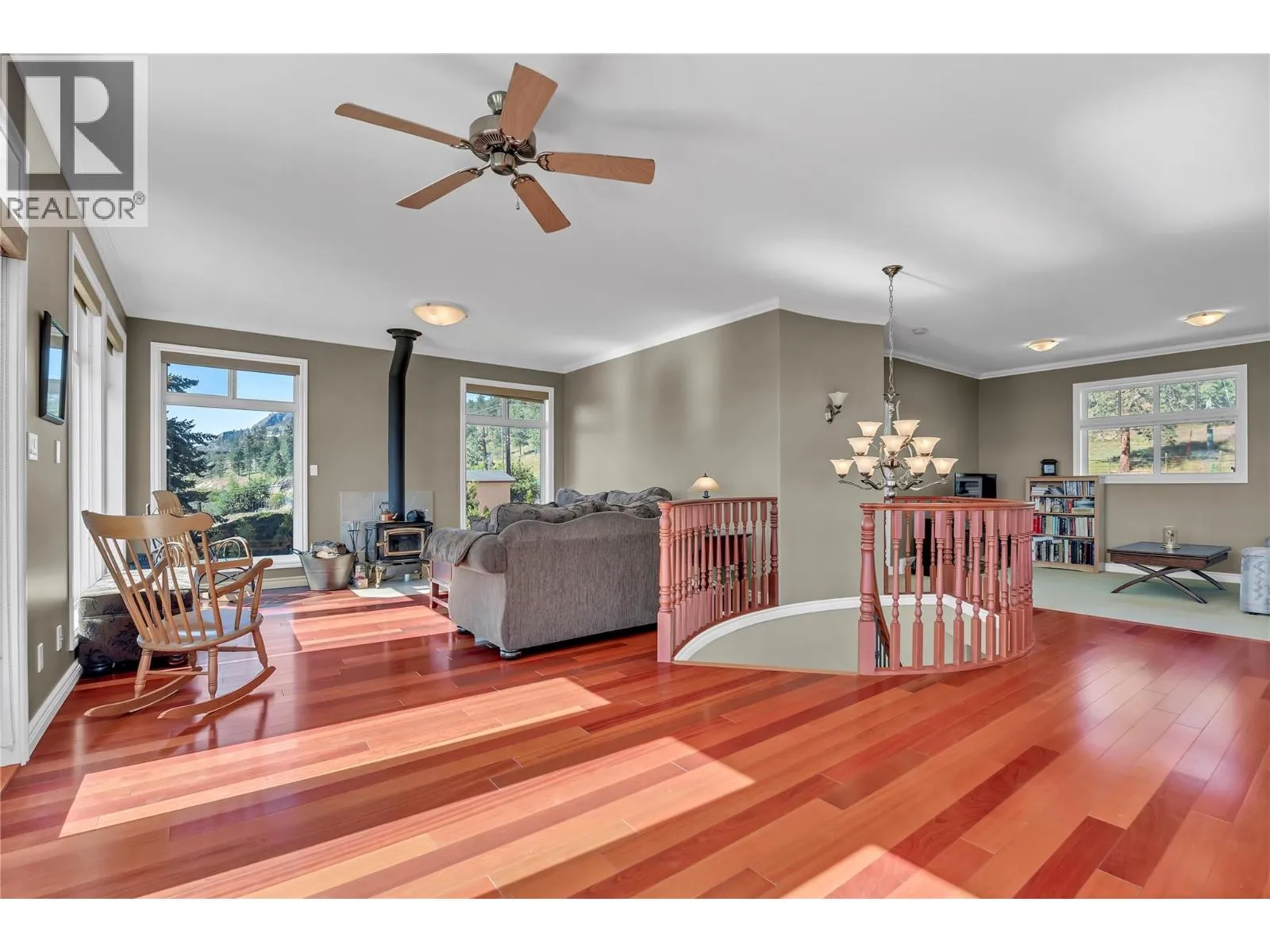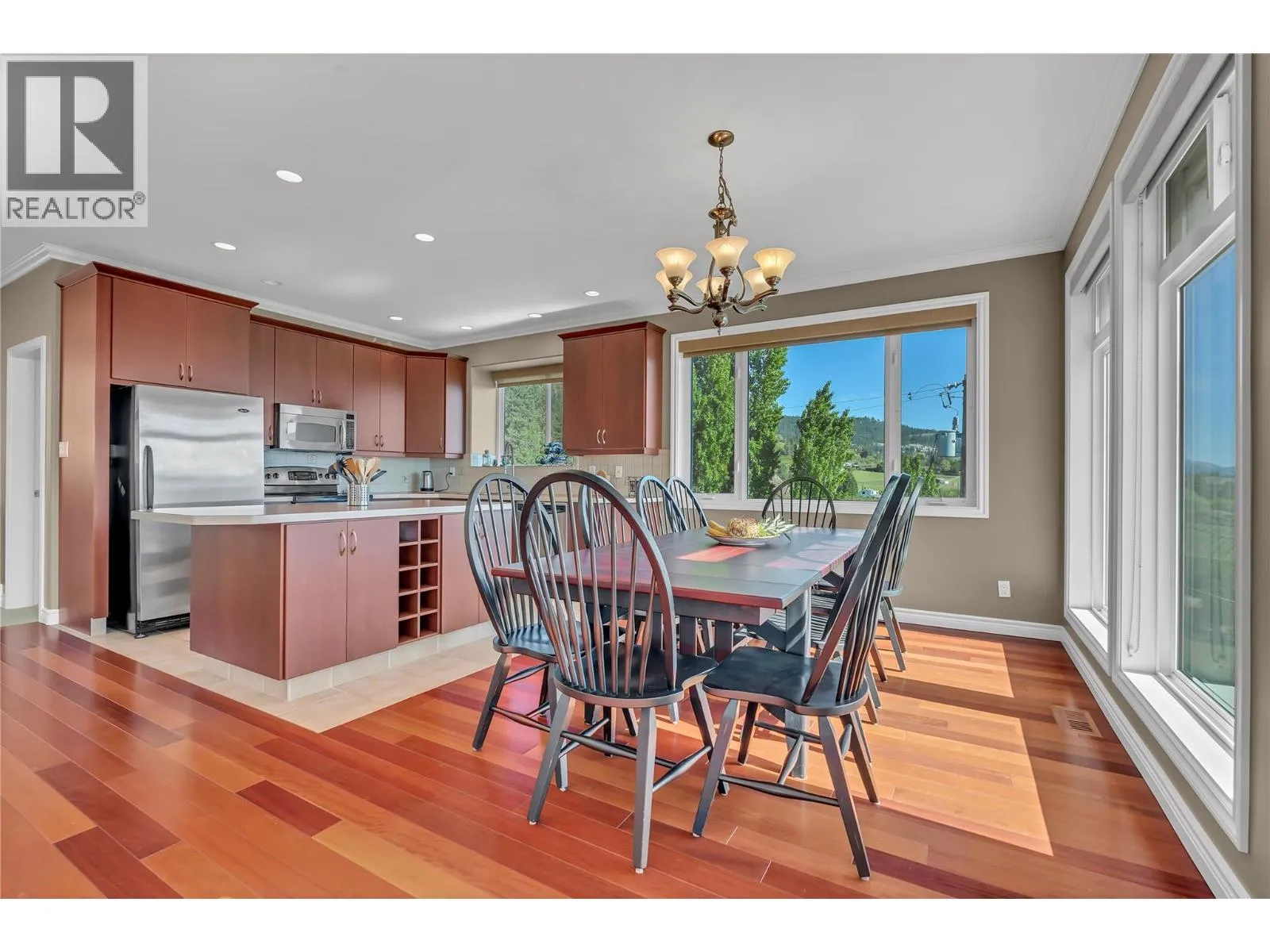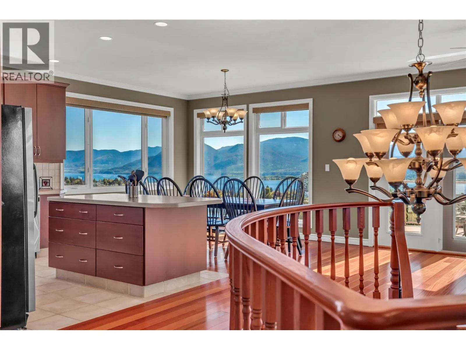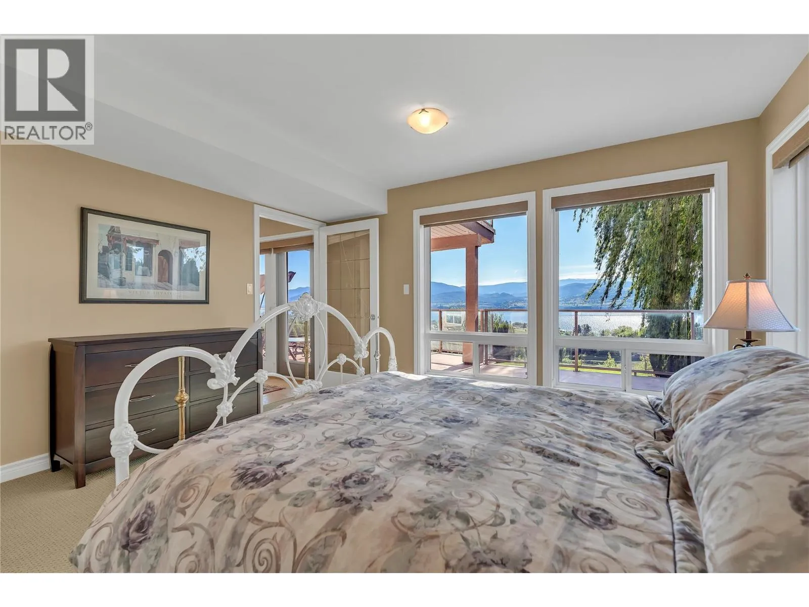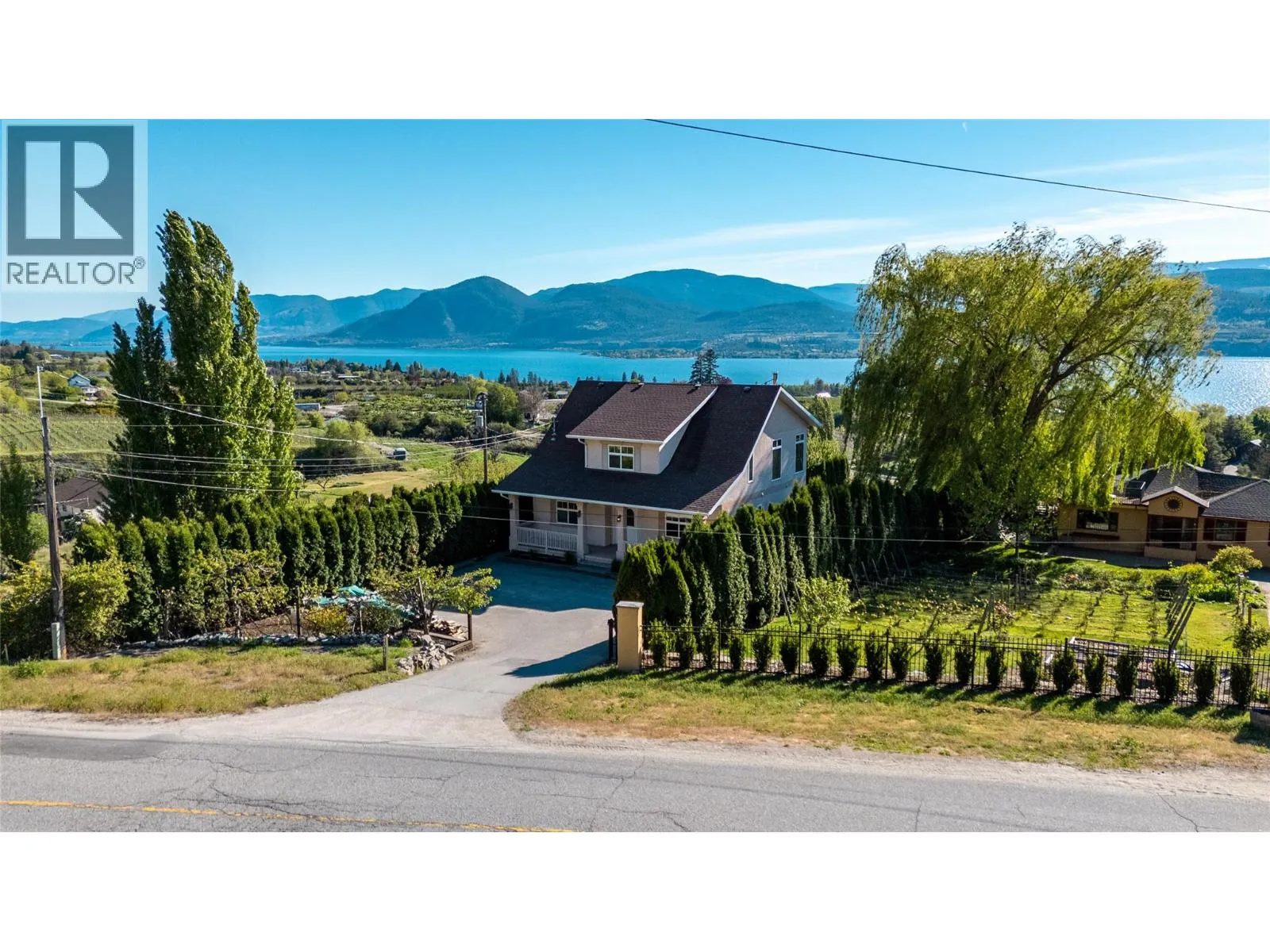 Gorgeous Lake Views | Flexible Living in Naramata | 15 Min to Penticton. Set above Okanagan Lake with sweeping 180-degree views of water and vineyards, this solidly built 2004 custom home offers nearly 3,500 sq ft of flexible living space just minutes from Naramata Village. The homeâs unique, view-oriented layout is designed to take full advantage of its setting. The entry level features three bright bedrooms, two full bathrooms, and laundry, creating a quiet and practical bedroom level separate from the upper level living spaces. Up the curved staircase is the heart of the home, where cherrywood floors, a cozy standalone fireplace, and two living areas frame stunning lake views. The kitchen, dining area, and entertaining deck are perfectly positioned for gatherings, while two additional flex rooms provide space for home offices, hobbies, or storage. The walkout lower level includes a private two-bedroom, one-bath suite with its own entrance, laundry and patioâideal for extended family, guests, or added flexibility over time. A low-maintenance, tree-lined backyard offers privacy without the upkeep. Minutes to wineries, beaches, the KVR Trail, and all that Naramata has to offer, this is a well-constructed home with exceptional views, adaptable space, and the freedom to enjoy now and personalize over time. 24 hoursâ notice required for showings. (id:27476)