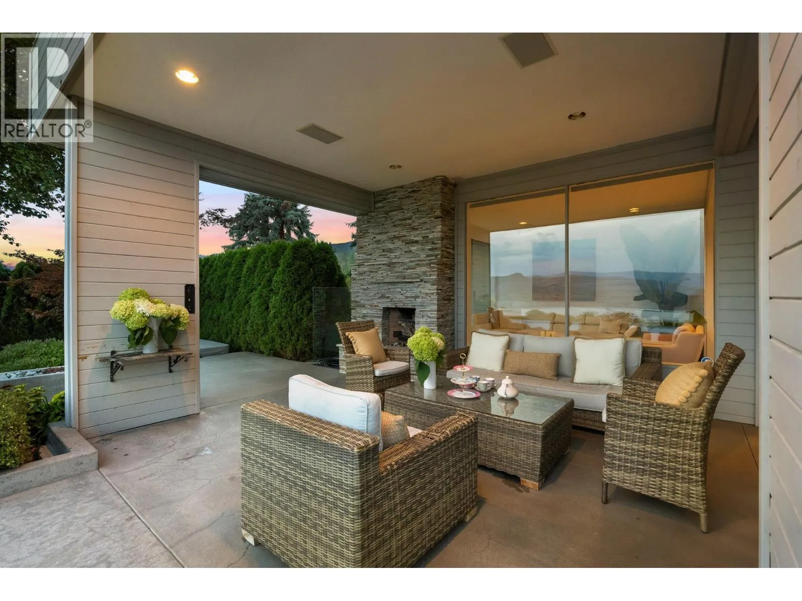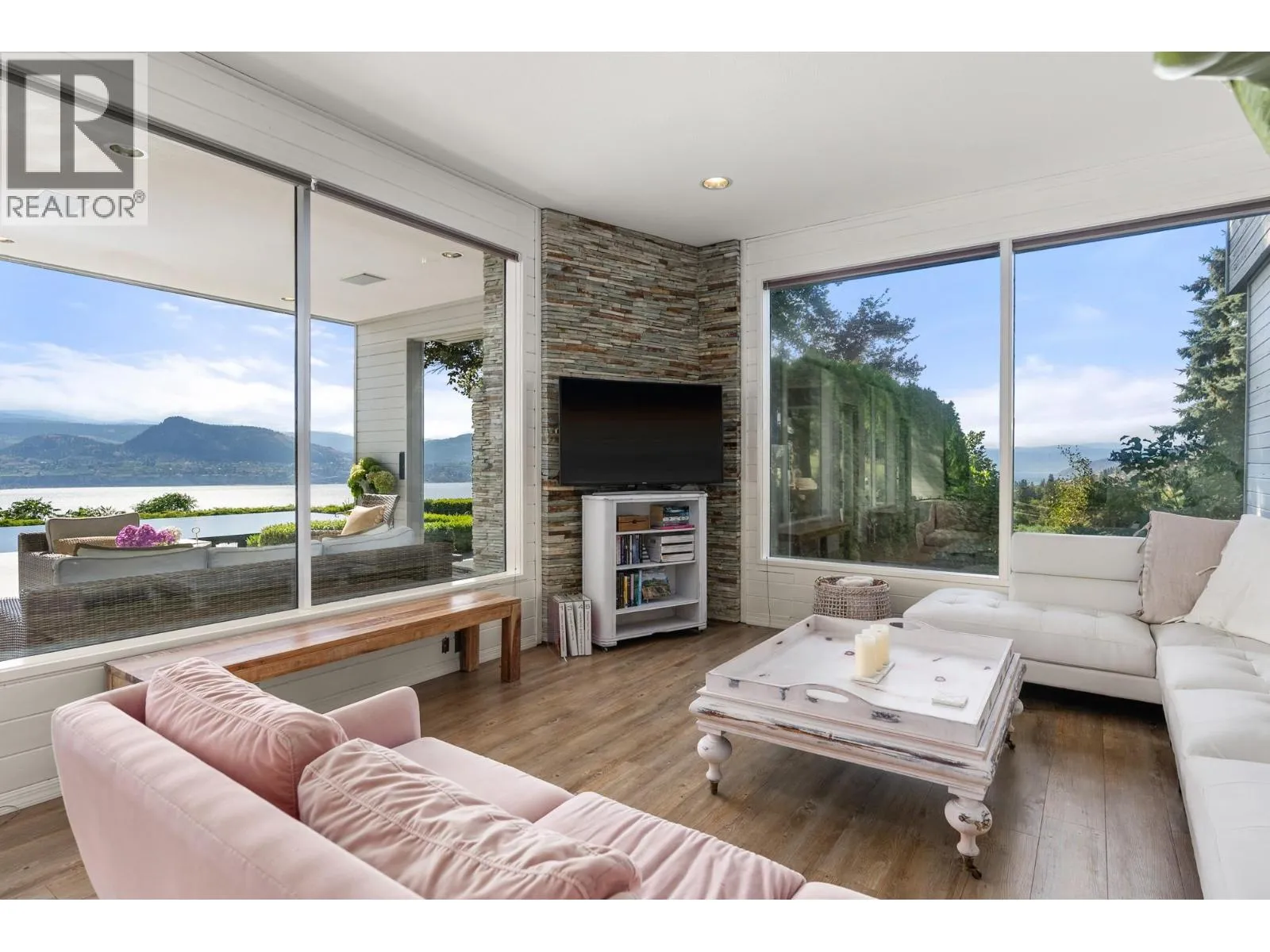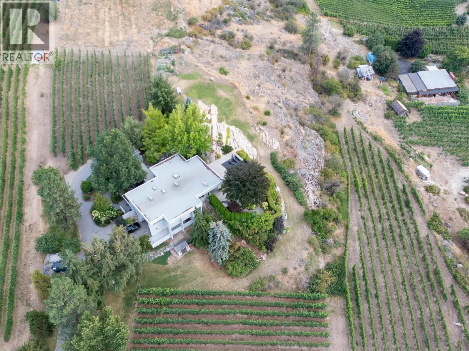 Infinity House. A rare chance to own a piece of Naramata bench only a short walk to the village. With staggering views of Okanagan Lake, this 4 bedroom, West Coast Modern home is ideally situated on a private 5 acre estate in the heart of wine country. 2 acres planted in grapes and farmed by a notable winery, this property also hosts a midnight infinity pool, caretaker's suite, extensive landscaping and an outdoor fireplace. Host friends and family on the generous poolside patio or enjoy the solitude this uber-private Okanagan estate provides. (id:27476)