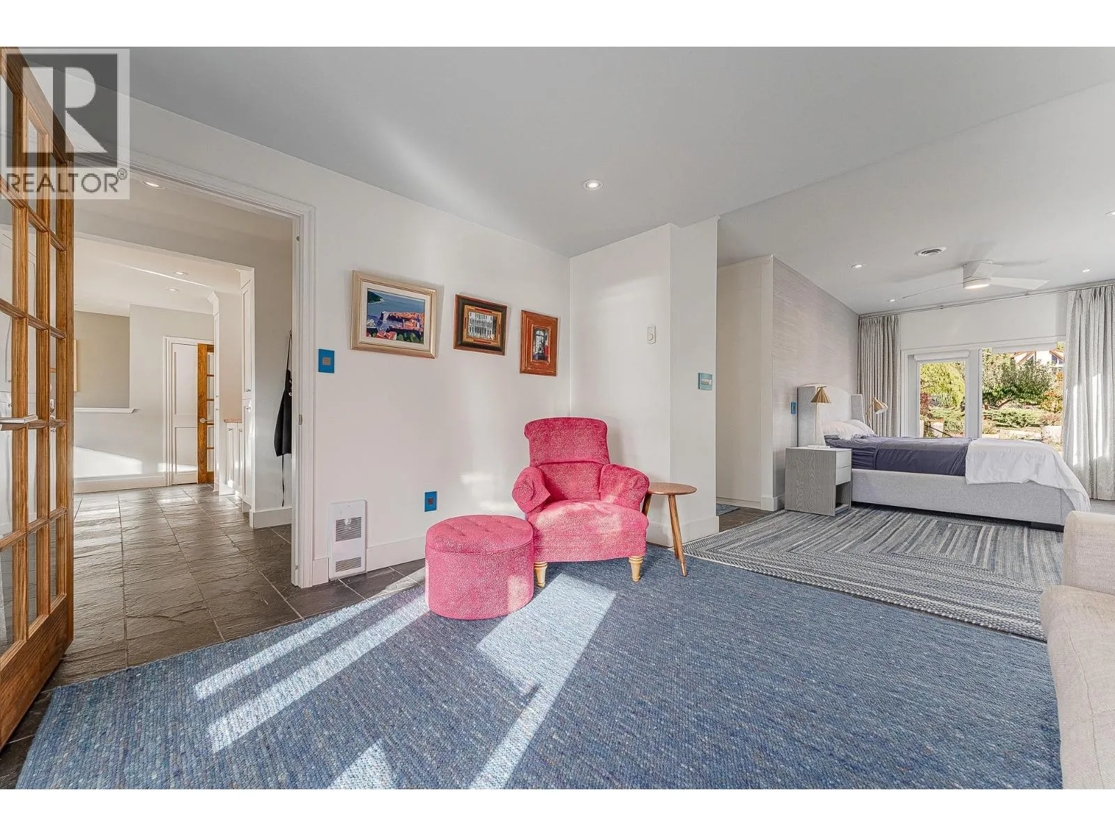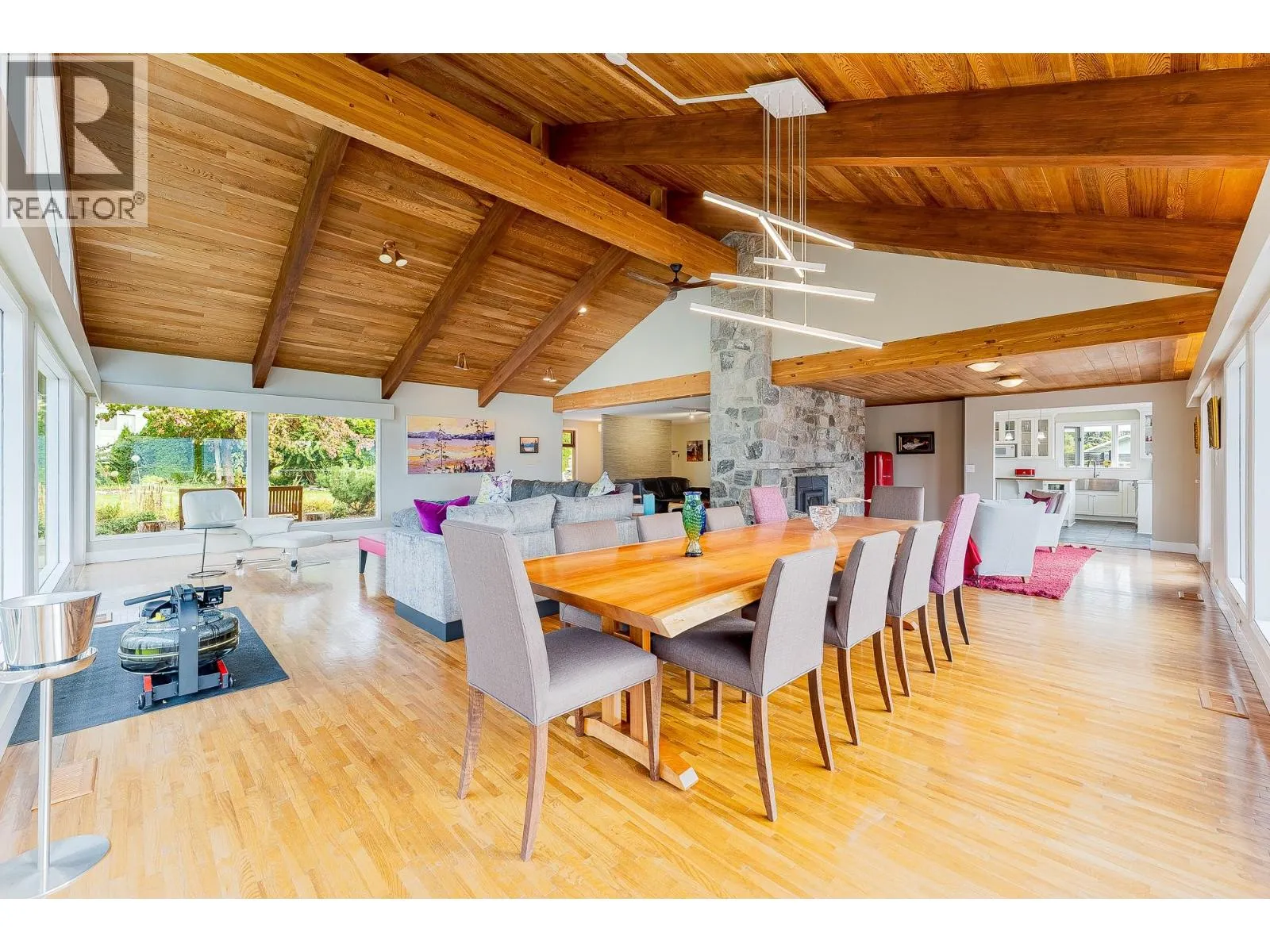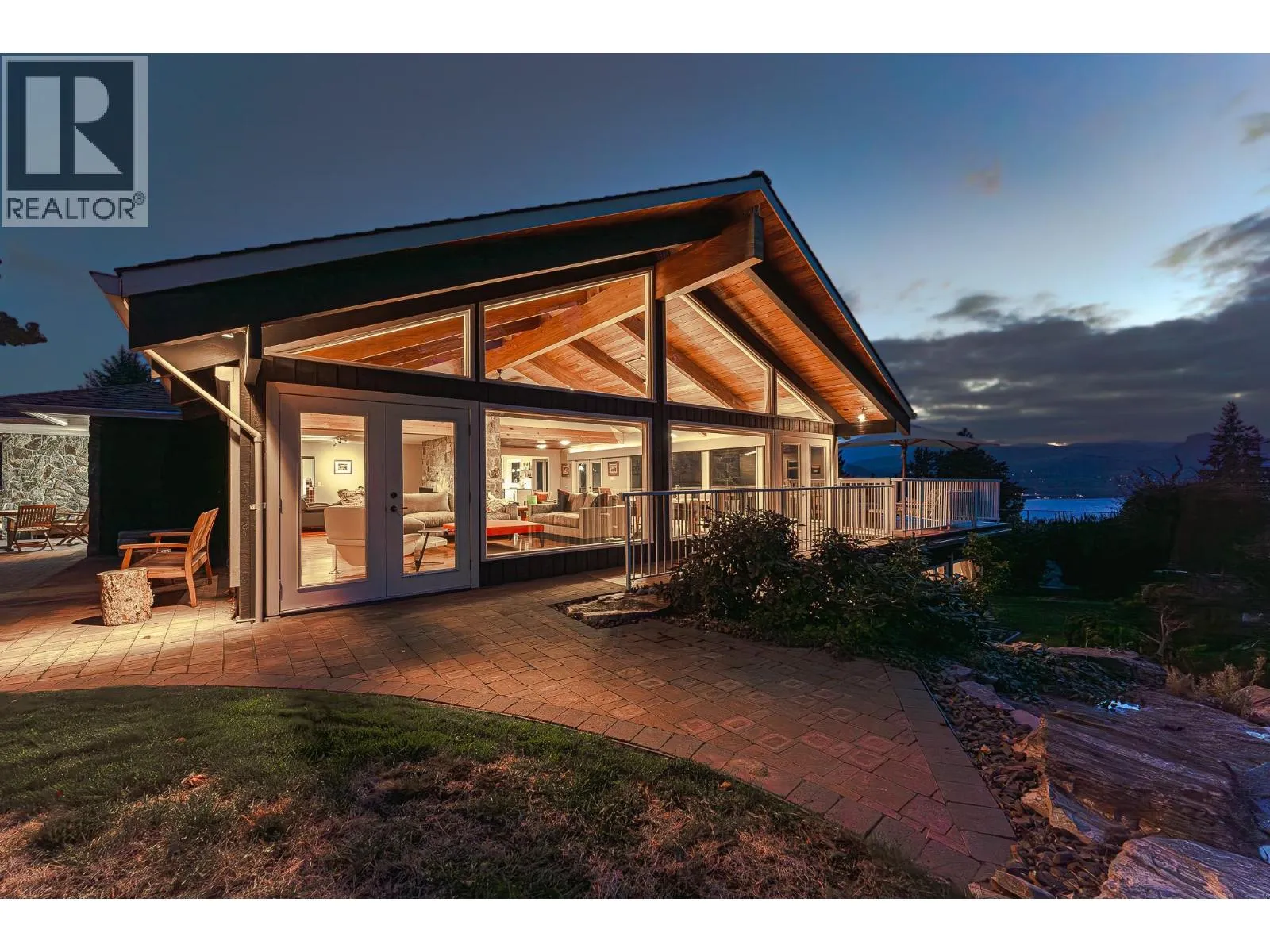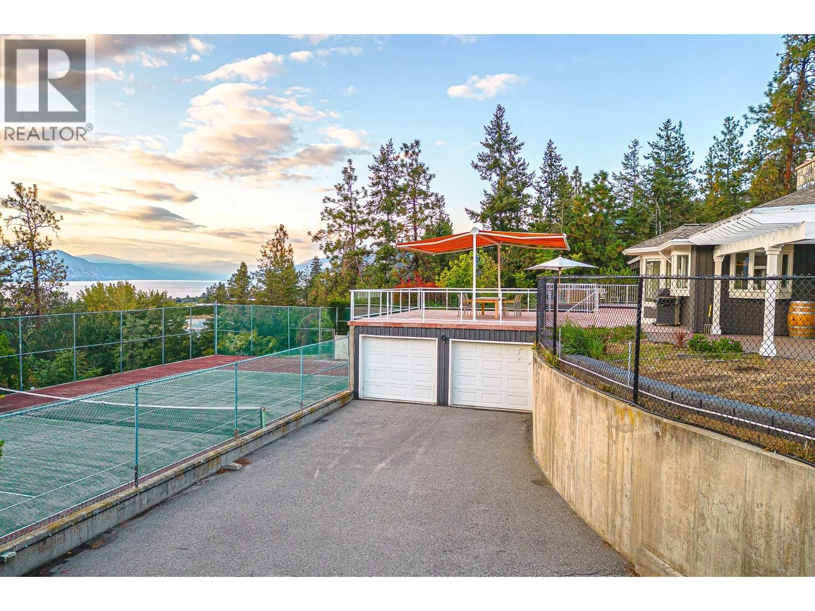 Nestled in luscious grounds this sprawling over 4700 sq ft RANCHER plus basement features: VIEWS, salt-water POOL, pickleball/tennis/basketball COURT, WORKSHOP and a GARAGE. Walk into your home with pouring natural light, massive wood beams and double sided granite fireplace overlooking the WATERFALL. This expansive home has a grand room with vaulted ceilings, room for a 10-person table, walk-out onto your vast patio with spectacular views of the lake. Perfect for entertaining or relaxing. Primary bedroom is beautifully finished with over 190sqft, walk through closet and tranquil ensuite. Bedrooms are steps away from the pool for ease. Downstairs you will find storage/den/wine cellar and a bathroom plus BONUS ROOM: gym/theater room or a potential suite. (id:27476)