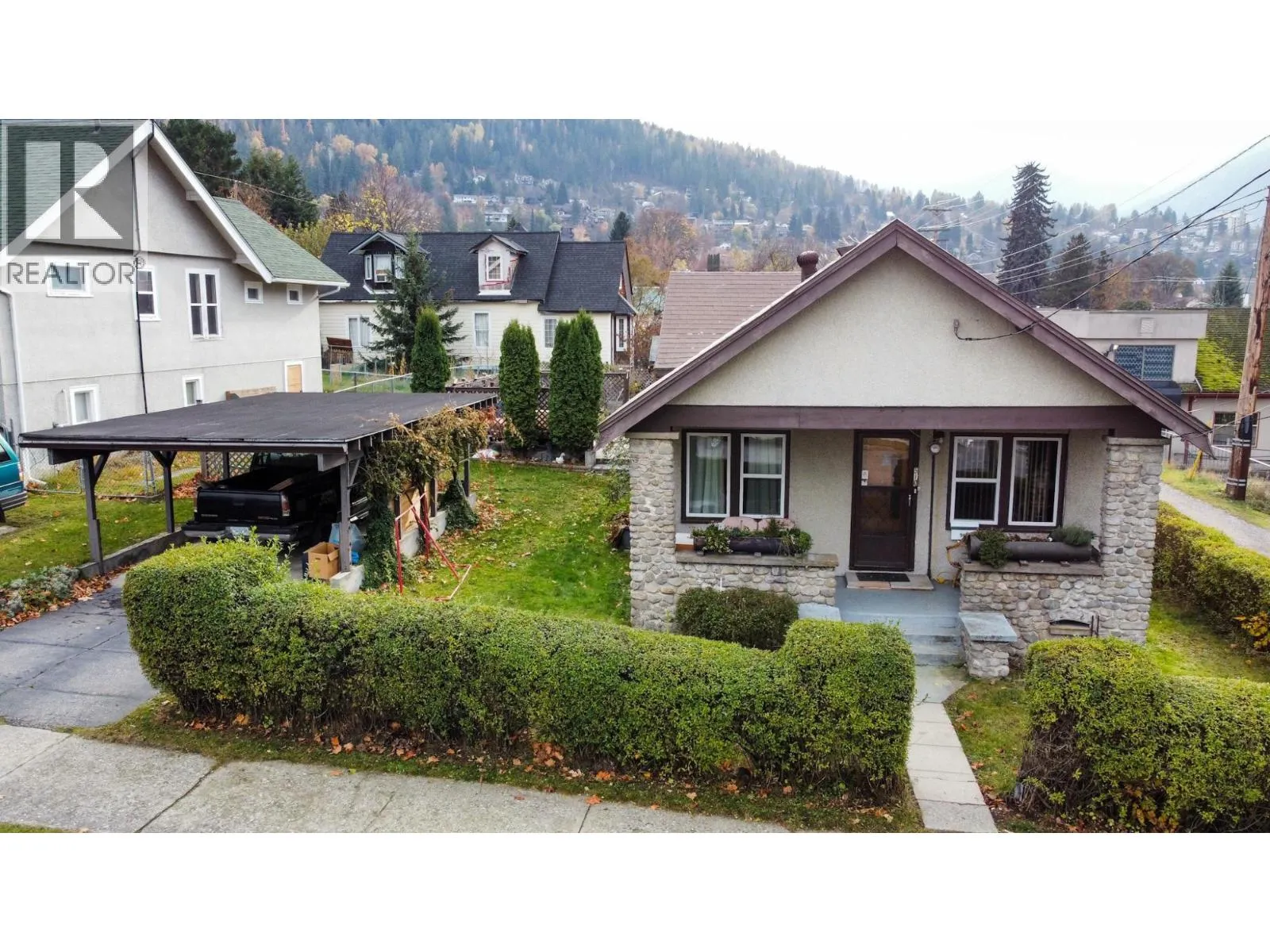 Discover the essence of character and charm in this inviting bungalow, ideally situated in the highly sought-after lower Fairview neighborhood. Located mere steps from Lakeside Park, schools, shopping, and essential amenities, this 3-bedroom, 2-bathroom home offers a perfect blend of comfort and convenience. Step inside to find a retro flair but welcoming interior w/generously proportioned rooms throughout. The spacious living open floor plan is bathed in natural light, creating a cozy atmosphere for gatherings or relaxation. The kitchen features ample cabinetry complemented by a large island which offers both functionality and style. Adjacent is a convenient dining area, ideal for family meals or casual entertaining. There is also an unfinished basement that could offer many ideas. Furnace replaced in 2019.Home sits proudly on a spacious corner lot, encompassing two separately titled lots (full 60x120) for ample outdoor space. Enjoy the convenience of off-street parking, a carport, and a large outbuilding that could fit a small vehicle, along with a large deck perfect for outdoor gatherings or relaxing evenings. This home is wheel-chair adaptable, making it accessible for all. Its proximity to the lake enhances the appeal, providing opportunities for leisurely walks and enjoying the great neighborhood. Don't miss out on the chance to own this charming bungalow with basement in one of Nelson's most desirable neighborhoods. Schedule your showing today and envision the lifestyle this home offers! Quick Possession available. (id:27476)