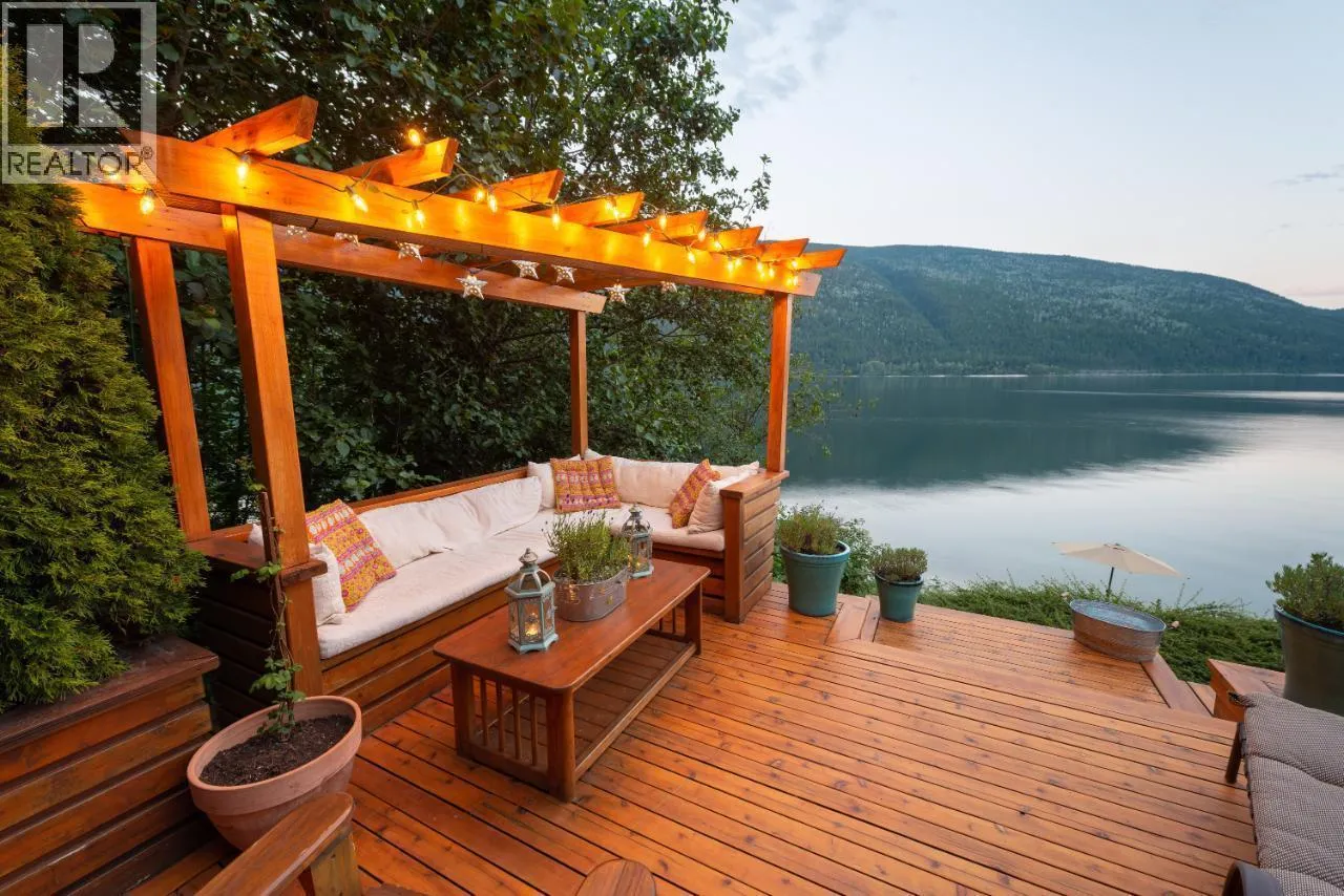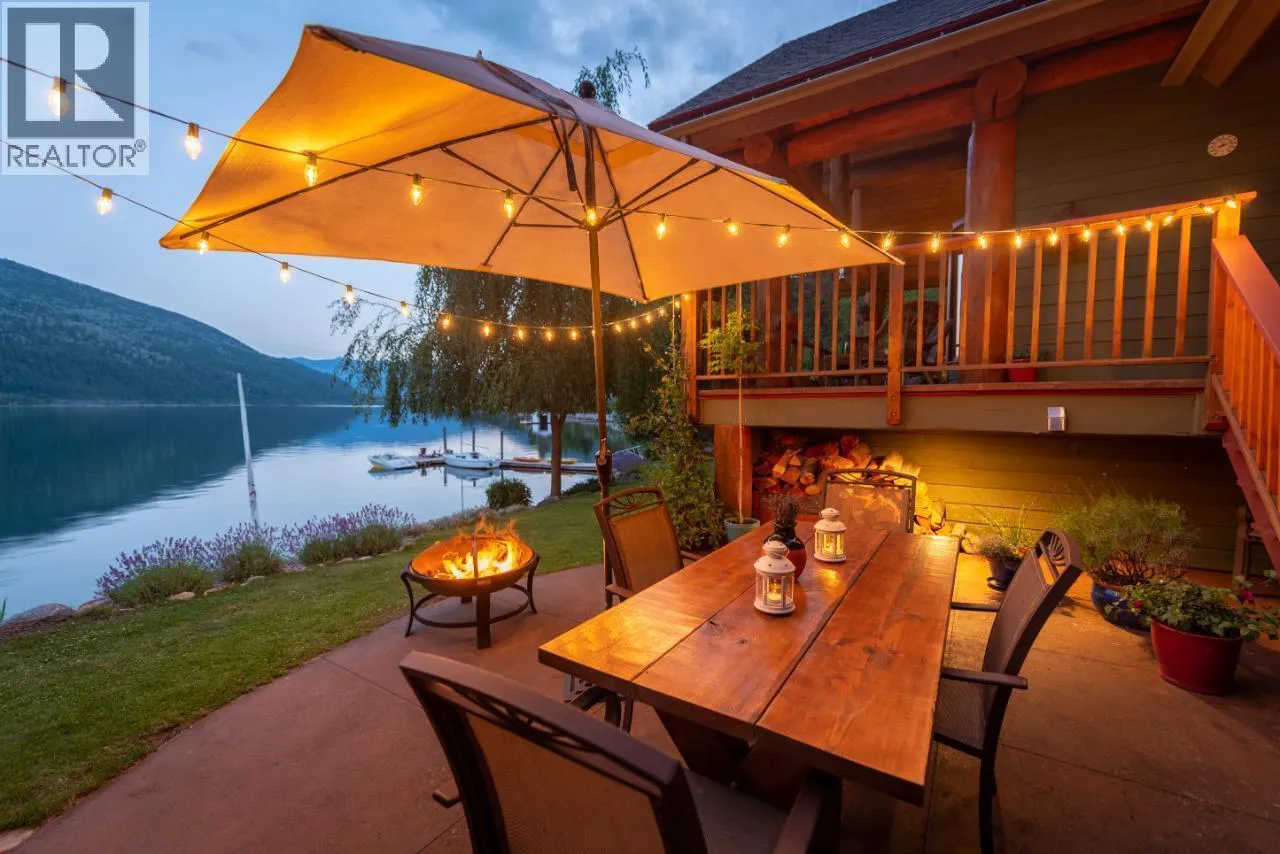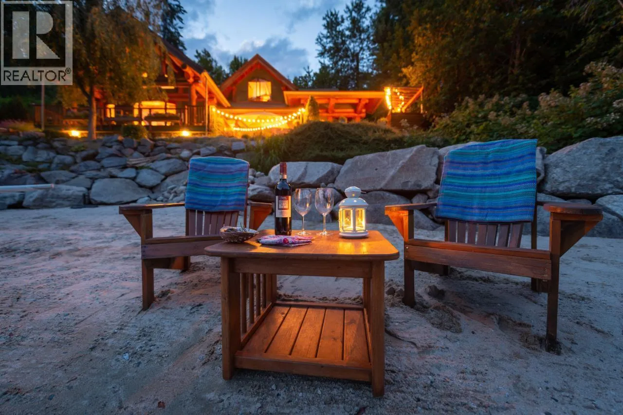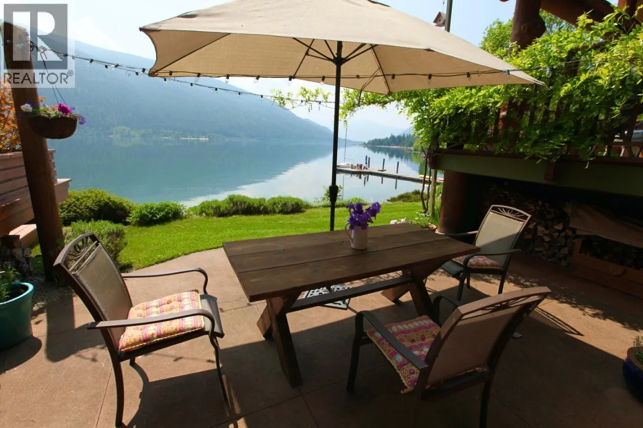 Welcome to this stunning custom-built residence with 300ft of beach front. Architecturally designed with log post and beam construction, it offers breathtaking lake and mountain views with the utmost privacy. With over 3000 sqft of living space and featuring expansive decks, this exceptional property is ideal for indoor-outdoor living, perfect for entertaining or hosting events. The home features an impressive master suite with direct access to the hot tub which offers full lake and mountain views. There is a custom kitchen with top-of-the-line appliances, an entertainment-sized principal room with floor to ceiling windows, vaulted ceilings, a signature stone fireplace, heated concrete flooring, 2+ bedrooms, 2 bathrooms, an office, loft and garage. Whether you seek the ultimate summertime experience with an abundance of outdoor living and water adventures, or a cozy ski chalet located close to Whitewater Ski Resort and endless backcountry opportunities, this lake house is the perfect retreat. Enjoy easy access to the water with a deep-water dock, perfect for mooring your water toys and boats. Additionally, the property includes almost 2 acres of vacant land above the highway, offering the potential for a second residence or workshop. Located just 7 miles from the charming town of Nelson, BC, that offers endless recreation, dining, and entertainment, this property provides the perfect opportunity to host unforgettable events and create lasting memories with friends and family. (id:27476)