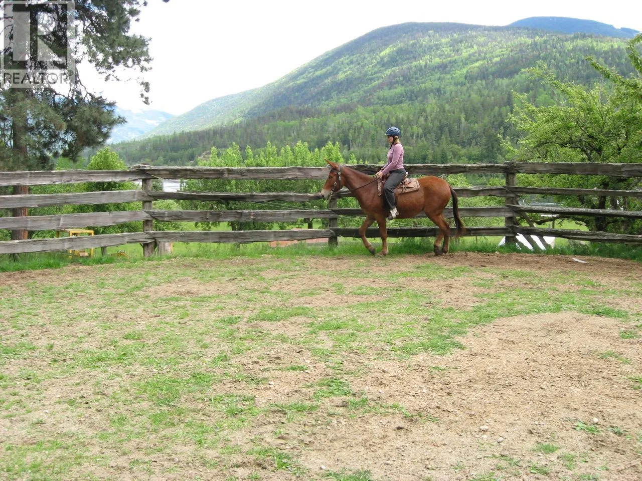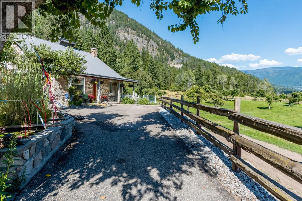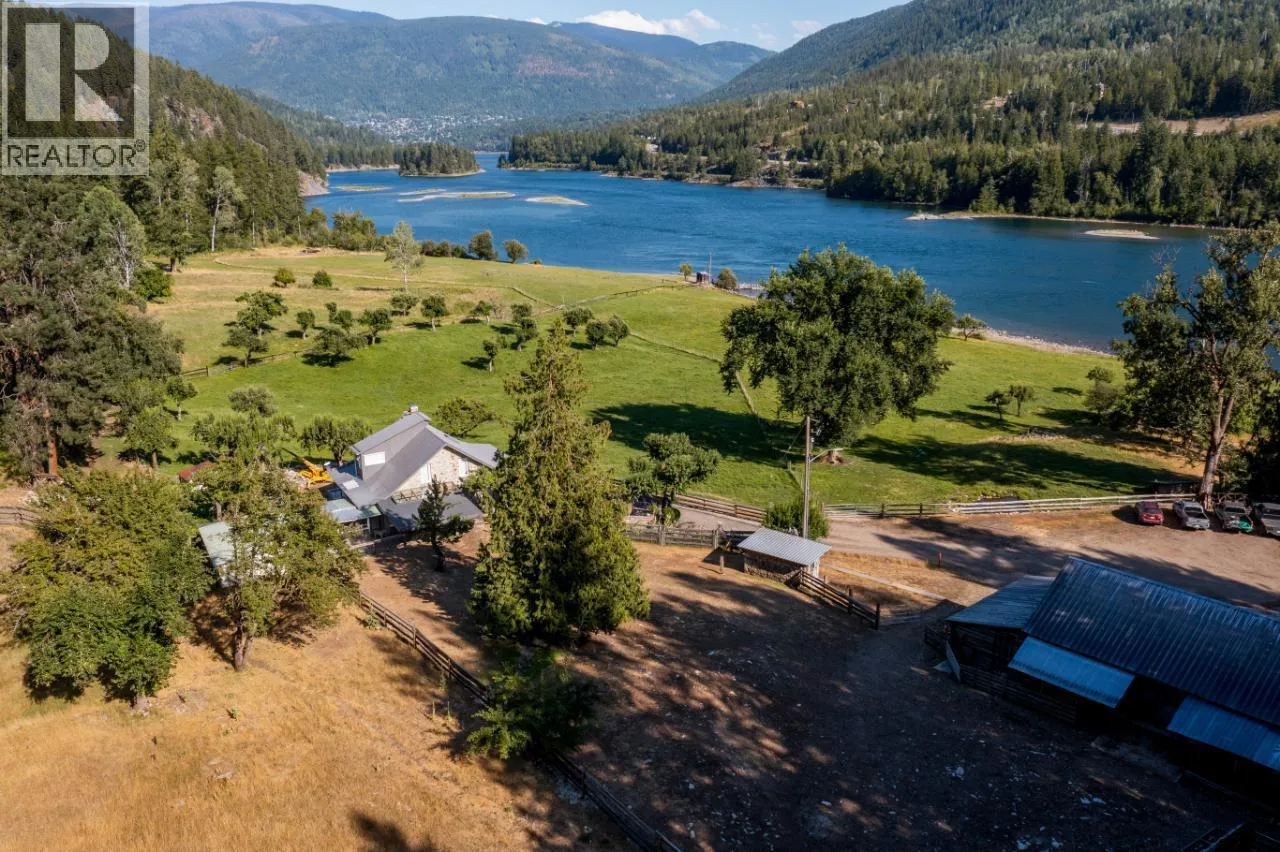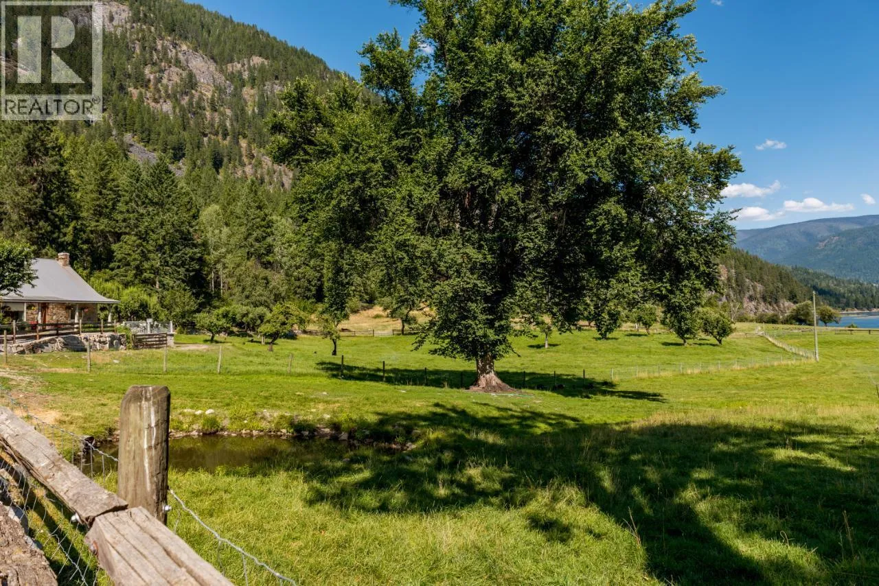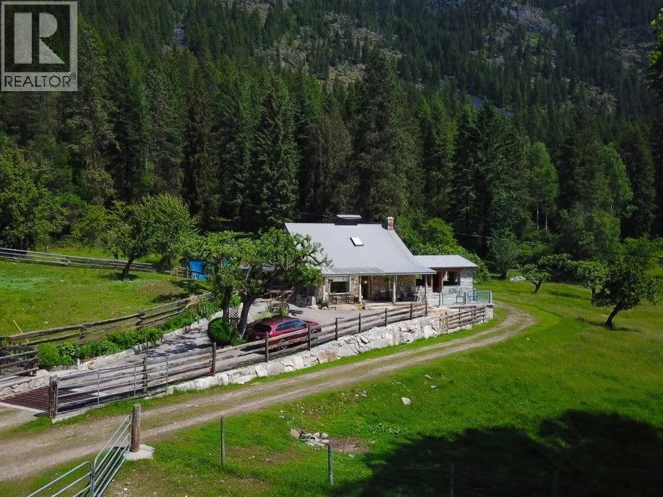 Discover an equestrian paradise in the Kootenays near Nelson, BC, on 38.6 acres of pristine land, bordered by Crown Land for ultimate privacy. Nestled at the end of a public road maintained by the DOH, 1 km from neighbors, this south-facing retreat offers striking views and water access for boating or fishing, even float plane accessible. Just 10 minutes from Nelson, this property blends seclusion with convenience. The 2600 sq. ft. stone house, with a new 27x18 ft. two-story extension showcasing stunning masonry, features 4 bedrooms, 2 bathrooms, and a finished basement. Granite and hardwood floors grace the main level, with oak cupboards and granite countertops throughout. Enjoy modern comforts like new propane central heating, central A/C, central vacuum, and high-speed internet. A sundeck, carport, root cellar, garage, workshop, and fishpond add charm. Horse enthusiasts will love the 13-acre pasture across 4 fenced paddocks with 4-rail fencing, perfect for grazing. The barn includes storage for a 40-ton hayloft and multiple stalls with waterers and tack storage. The 200x100 ft. riding arena with all-weather footing is ideal for training, while trails through 25 acres of mature fir and pine offer scenic rides. Water licenses on two creeks, two wells, and irrigation support 40 fruit trees, grapevines, and a thriving garden. Currently a non-certified organic farm with beef cows and sheep, this propertyâoutside the ALRâoffers endless possibilities for your equestrian dreams. (id:27476)