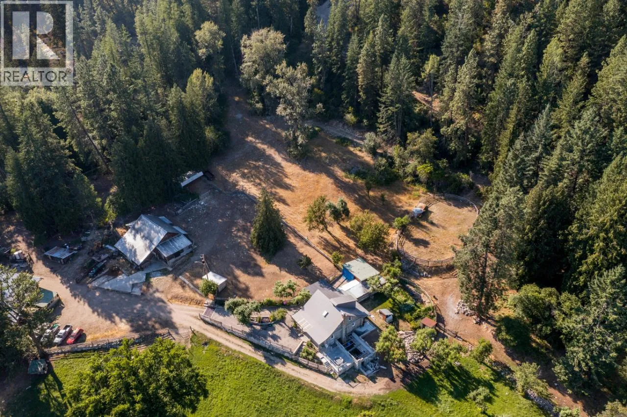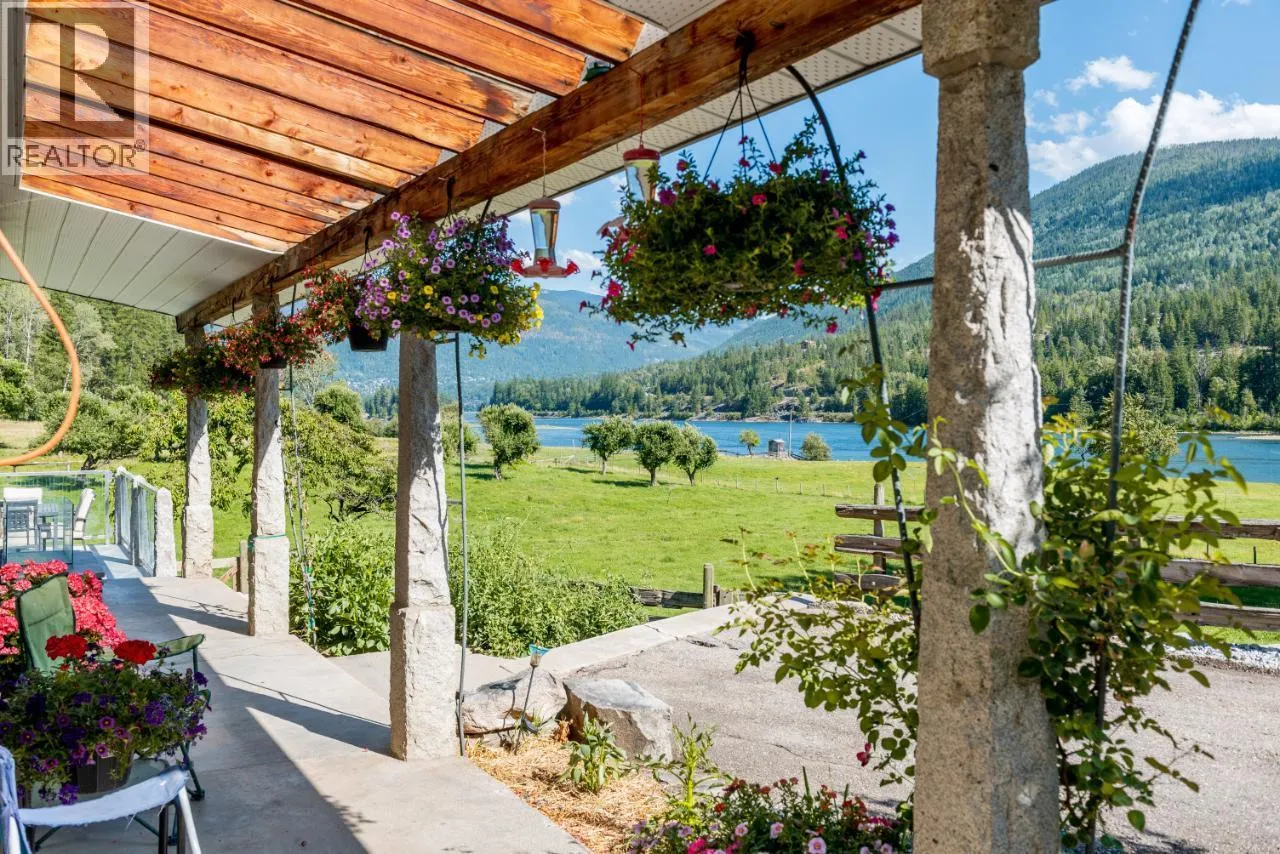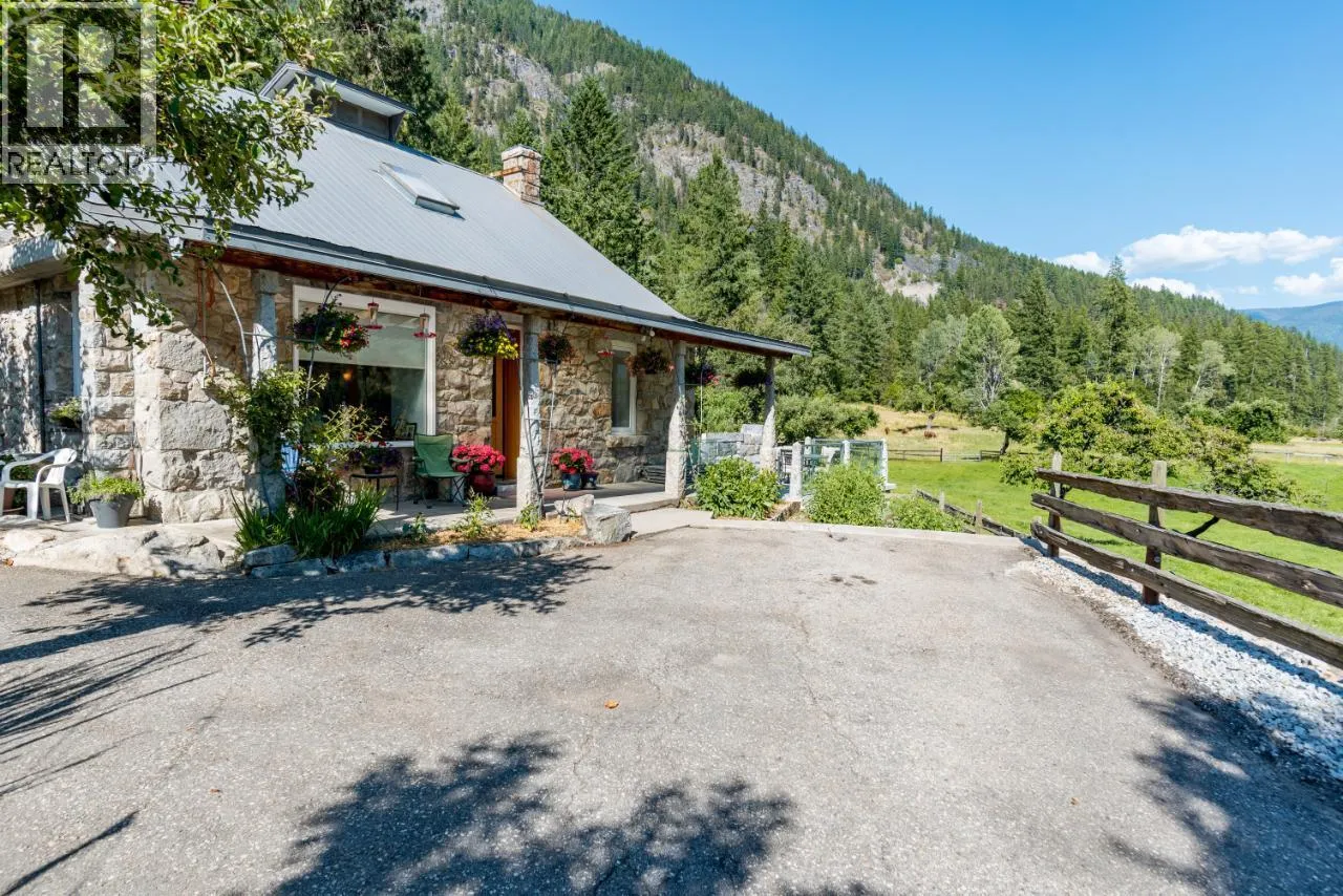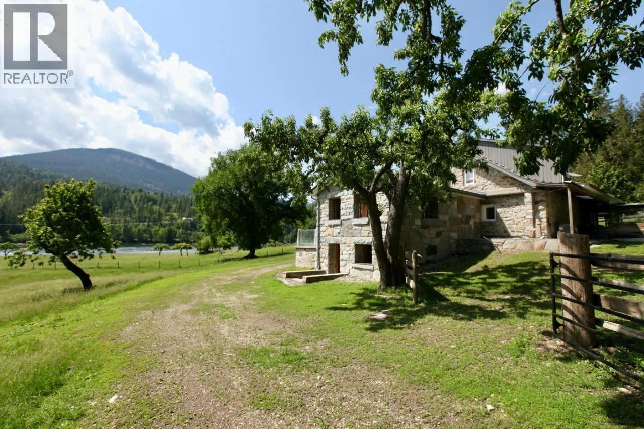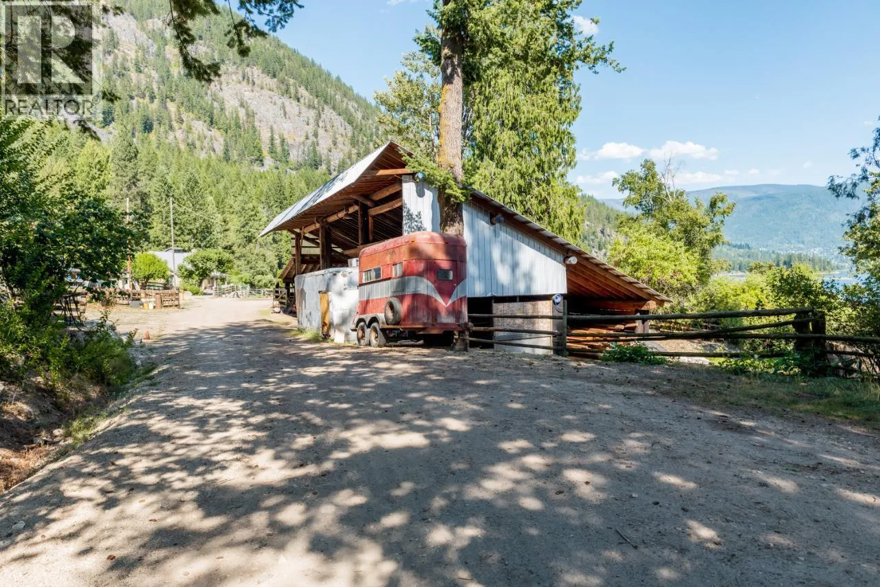 Discover an equestrian paradise in the Kootenays near Nelson, BC, on 38.6 acres of pristine land, bordered by Crown Land for ultimate privacy. Nestled at the end of a public road maintained by the DOH, 1 km from neighbors, this south-facing retreat offers striking views and water access for boating or fishing, even float plane accessible. Just 10 minutes from Nelson, this property blends seclusion with convenience. The 2600 sq. ft. stone house, with a new 27x18 ft. two-story extension showcasing stunning masonry, features 4 bedrooms, 2 bathrooms, and a finished basement. Granite and hardwood floors grace the main level, with oak cupboards and granite countertops throughout. Enjoy modern comforts like new propane central heating, central A/C, central vacuum, and high-speed internet. A sundeck, carport, root cellar, garage, workshop, and fishpond add charm. Horse enthusiasts will love the 13-acre pasture across 4 fenced paddocks with 4-rail fencing, perfect for grazing. The barn includes storage for a 40-ton hayloft and multiple stalls with waterers and tack storage. The 200x100 ft. riding arena with all-weather footing is ideal for training, while trails through 25 acres of mature fir and pine offer scenic rides. Water licenses on two creeks, two wells, and irrigation support 40 fruit trees, grapevines, and a thriving garden. Currently a non-certified organic farm with beef cows and sheep, this propertyâoutside the ALRâoffers endless possibilities for your equestrian dreams. (id:27476)