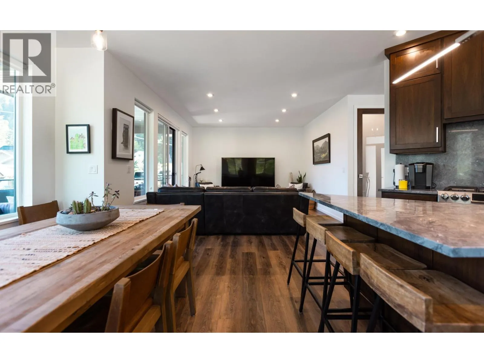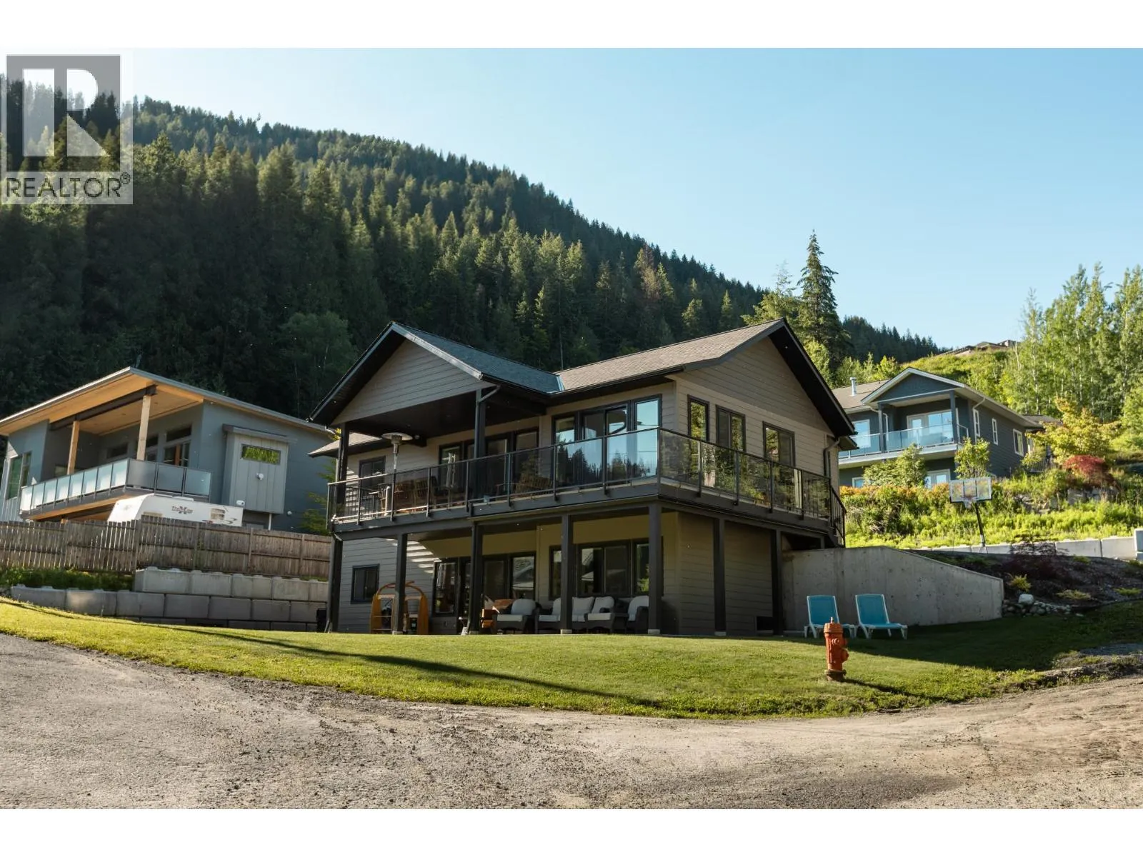 Discover beautiful lake views and comfortable living in this modern 4-bedroom + den/office, 3-bathroom home built in 2018 with a separate 2-bedroom, 1-bathroom fully equipped suite, offering breathtaking views of Kootenay lake and the mountain ranges. Nestled in a coveted location, this 3433 sqft residence boasts a covered wrap around deck, a hot tub area, a spacious 2-car garage with additional storage rooms and EV charging accessible. Modern elegance defines the interior, featuring a custom-built wine room, a gym area, and a wood-burning fireplace adorned with cultured stone. The kitchen opens up to the dining and living room that both offer remarkable views of the beautiful lake and Kootenay mountains, Ideal for families or professional couples, the property is conveniently situated near schools, walking and biking trails, waterfront access, parks, and the renowned L&C Bakery. With its blend of upscale amenities and picturesque surroundings, this home provides a perfect blend of comfort and sophistication. Whether you're seeking a spacious family retreat or an investment opportunity with a lucrative rental suite, this property promises an unparalleled lifestyle in a desirable community. (id:27476)