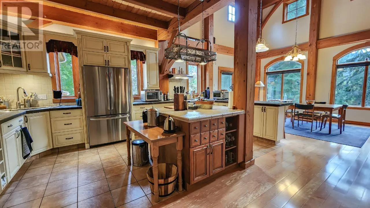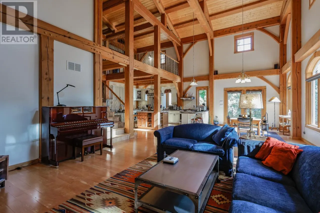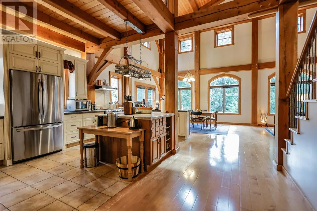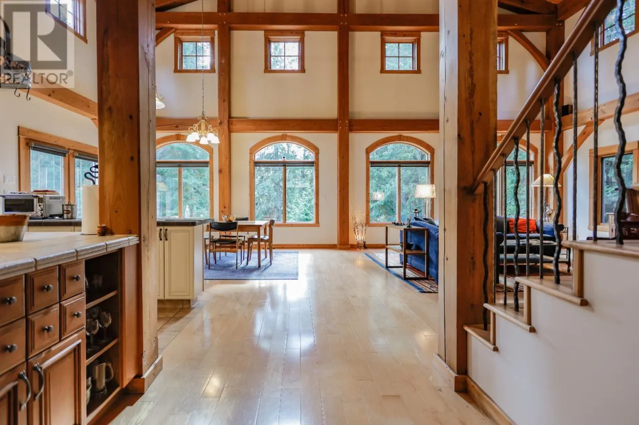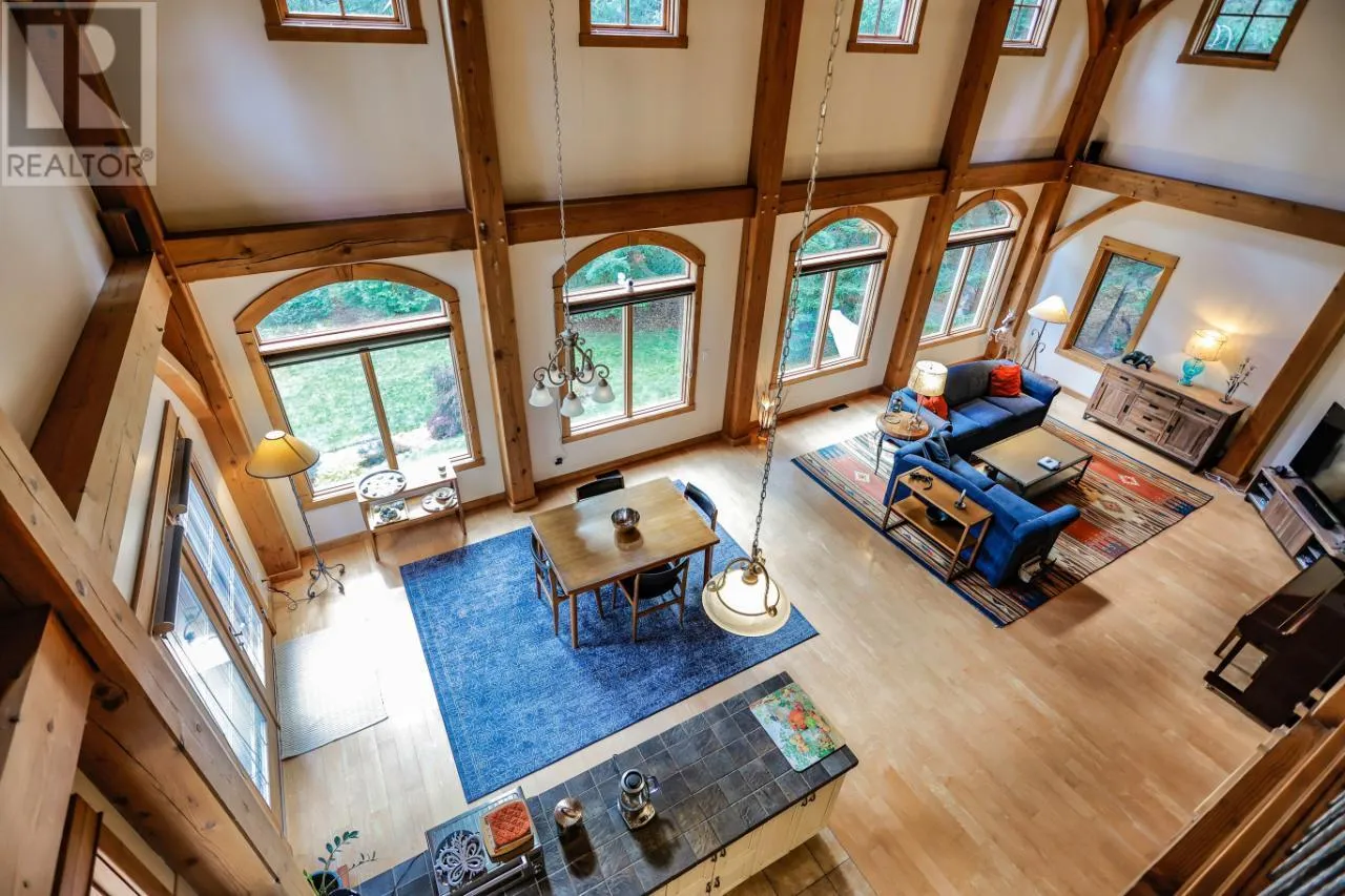 Welcome to 3179 Heddle Road. This custom crafted timber frame home features spectacular ~24 foot vaults and rests on a beautifully landscaped, level 1.25 acre lot just 15 minutes from Nelson on the North Shore of Kootenay Lake. The home offers a nice open floor plan and plenty of living area that includes 5-6 bedrooms and 5 bathrooms. Nice quality finishes complement this post and beam structure with arched windows, hardwood and ceramic tile flooring throughout, and a gourmet kitchen with island open to the living and dining rooms and deck area. There is a spacious double garage with a fully contained studio guest suite above. There is a nice forest area at the back of the property. The size and dimensions of rooms are approximate. Now priced under BC Assessed value this home is an outstanding value for a buyer looking for plenty of high quality finished space for a large or extended family or a combination of home and short term rental, secondary suite and/or office. (id:27476)