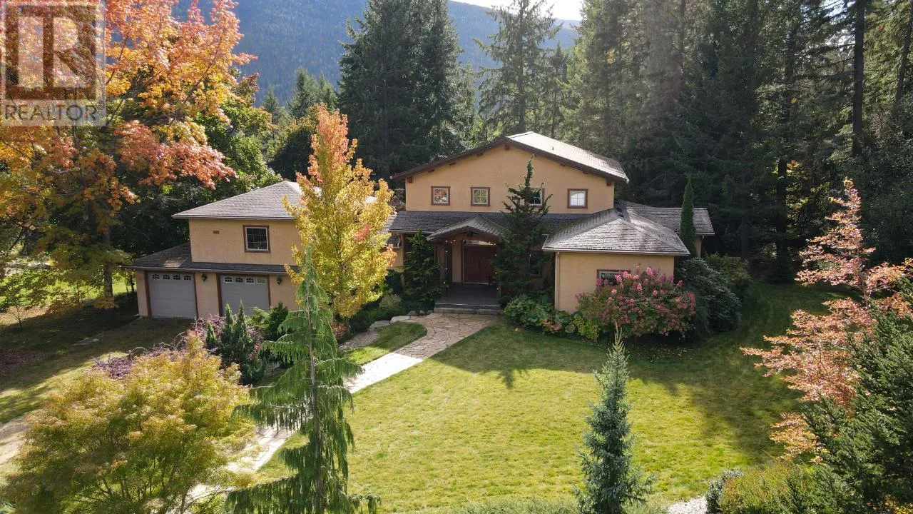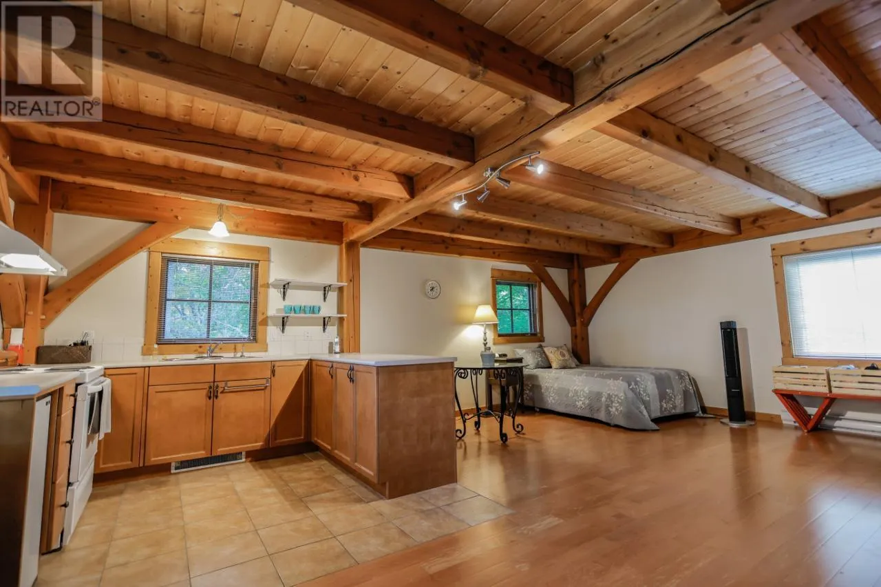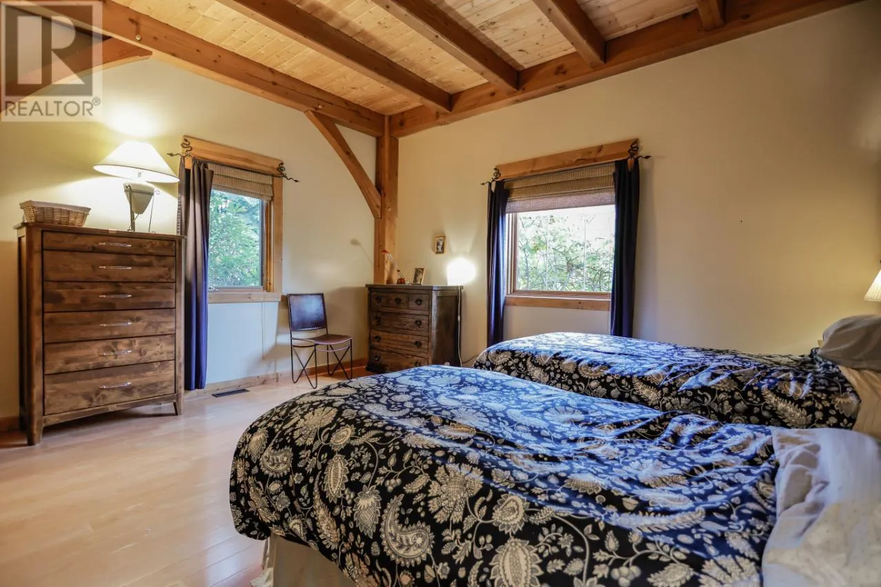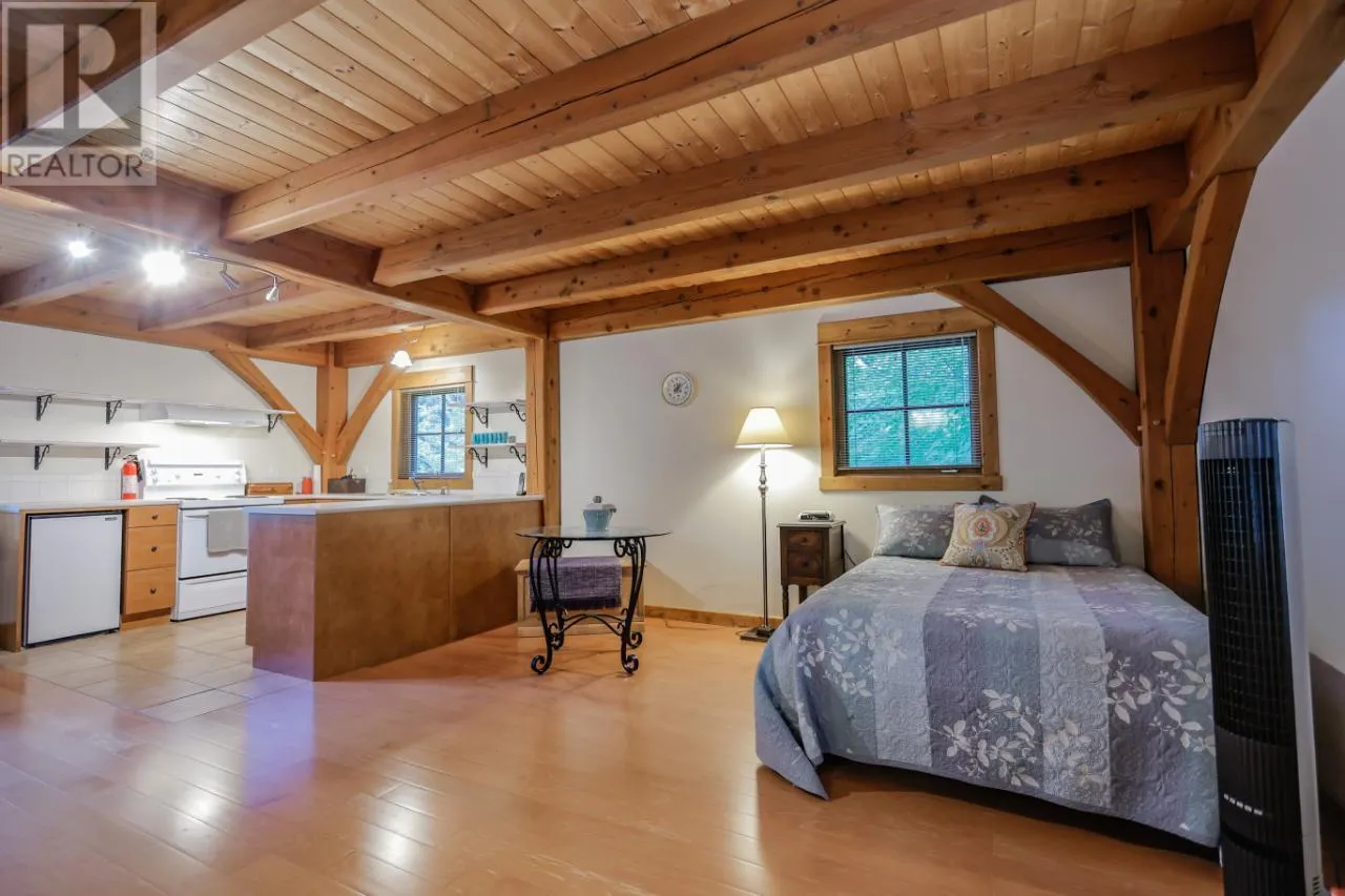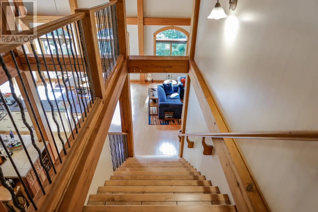 Welcome to 3179 Heddle Road. This custom crafted timber frame home features spectacular ~24 foot vaults and rests on a beautifully landscaped, level 1.25 acre lot just 15 minutes from Nelson on the North Shore of Kootenay Lake. The home offers a nice open floor plan and plenty of living area that includes 5-6 bedrooms and 5 bathrooms. Nice quality finishes complement this post and beam structure with arched windows, hardwood and ceramic tile flooring throughout, and a gourmet kitchen with island open to the living and dining rooms and deck area. There is a spacious double garage with a fully contained studio guest suite above. There is a nice forest area at the back of the property. The size and dimensions of rooms are approximate. Now priced under BC Assessed value this home is an outstanding value for a buyer looking for plenty of high quality finished space for a large or extended family or a combination of home and short term rental, secondary suite and/or office. (id:27476)