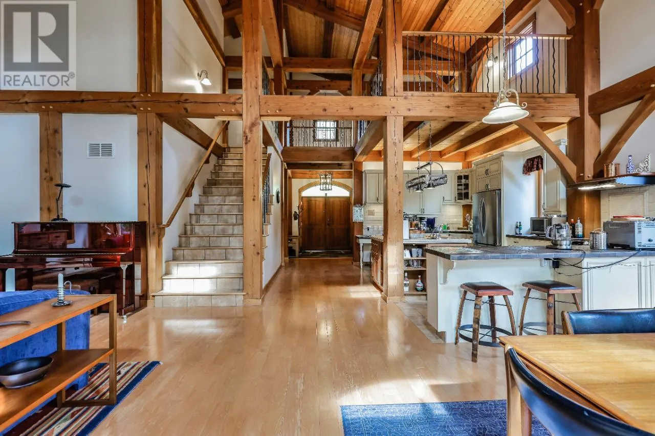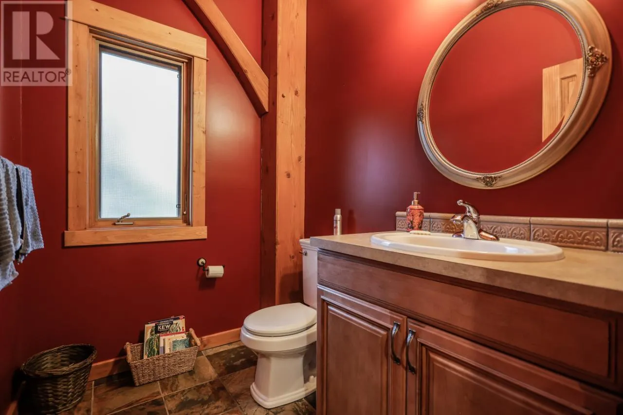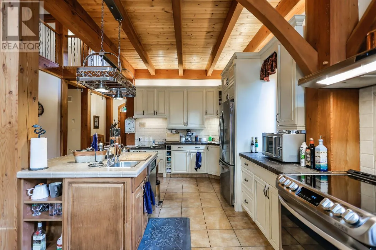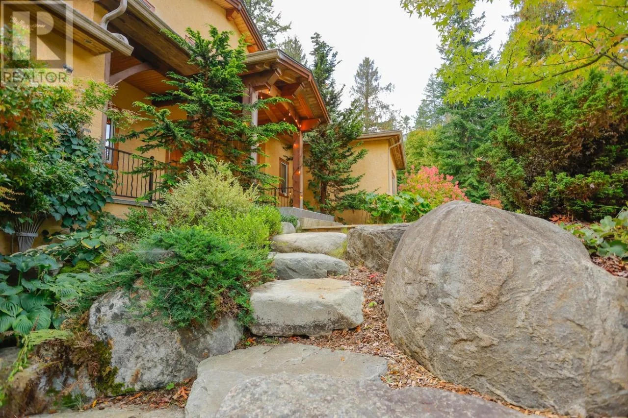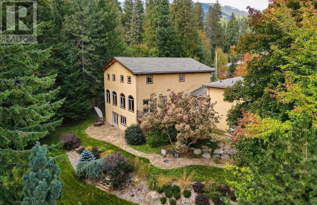 Welcome to 3179 Heddle Road. This custom crafted timber frame home features spectacular ~24 foot vaults and rests on a beautifully landscaped, level 1.25 acre lot just 15 minutes from Nelson on the North Shore of Kootenay Lake. The home offers a nice open floor plan and plenty of living area that includes 5-6 bedrooms and 5 bathrooms. Nice quality finishes complement this post and beam structure with arched windows, hardwood and ceramic tile flooring throughout, and a gourmet kitchen with island open to the living and dining rooms and deck area. There is a spacious double garage with a fully contained studio guest suite above. There is a nice forest area at the back of the property. The size and dimensions of rooms are approximate. Now priced under BC Assessed value this home is an outstanding value for a buyer looking for plenty of high quality finished space for a large or extended family or a combination of home and short term rental, secondary suite and/or office. (id:27476)