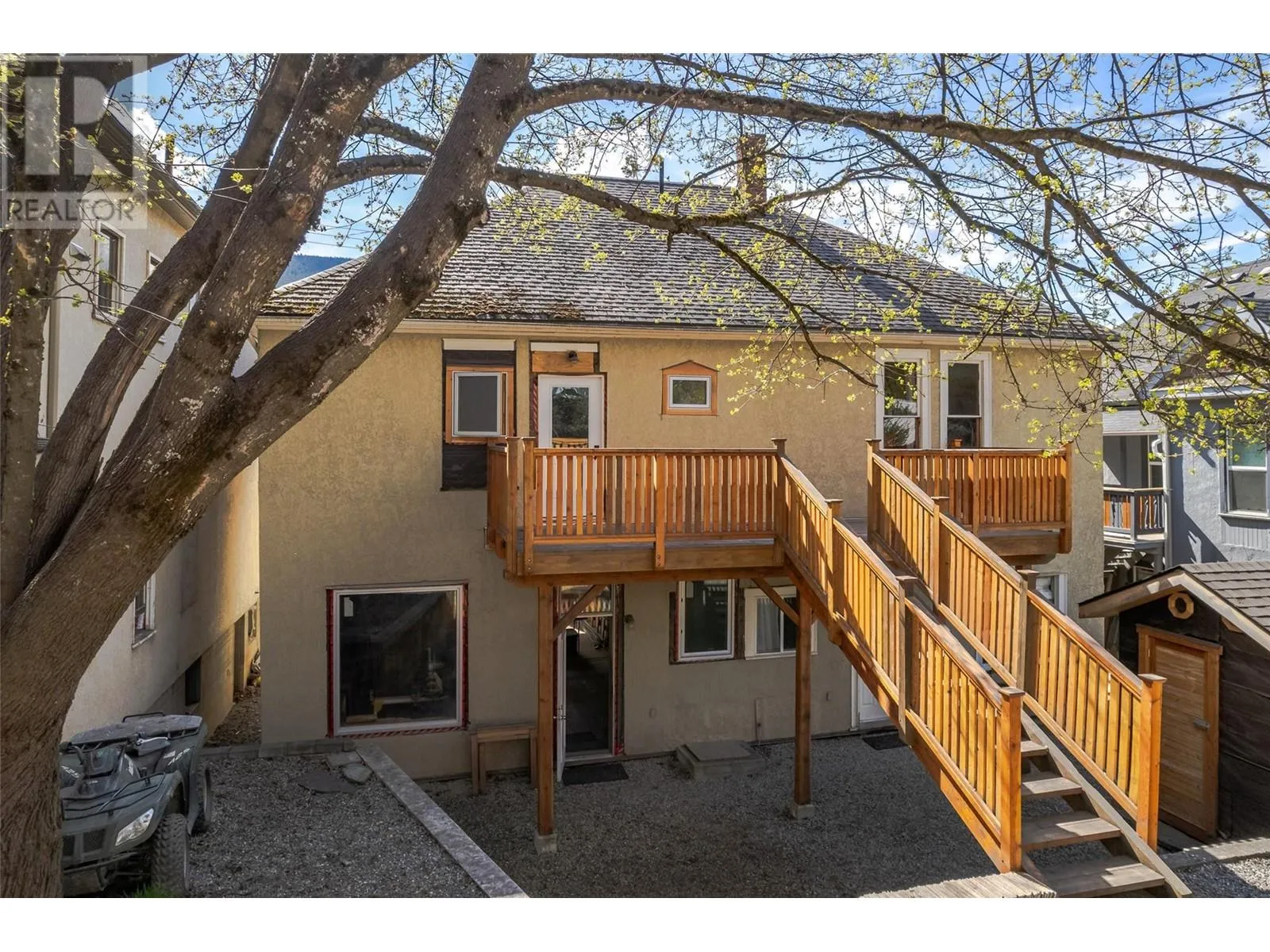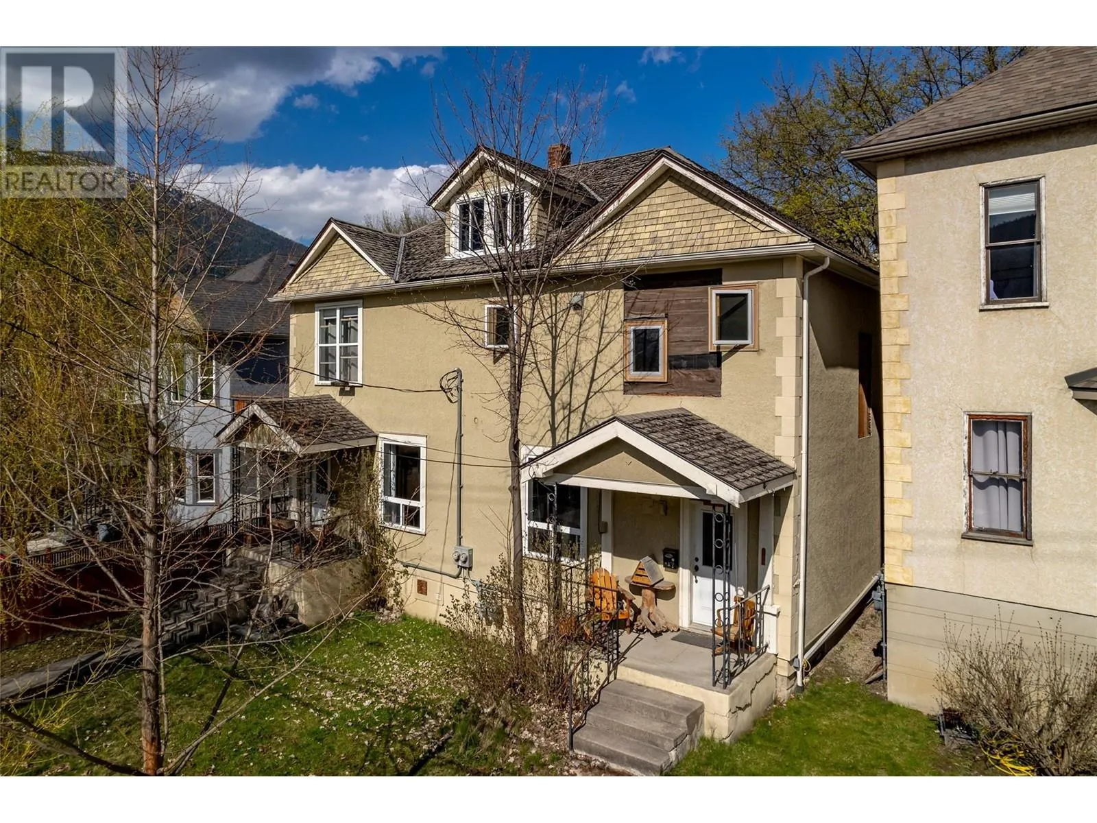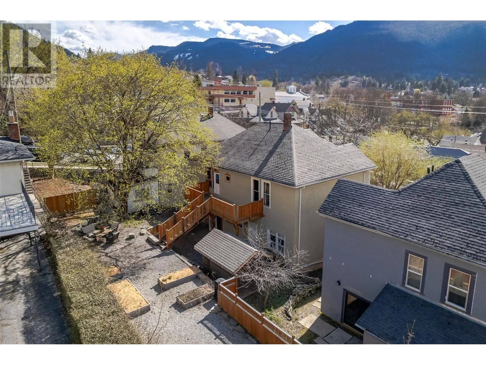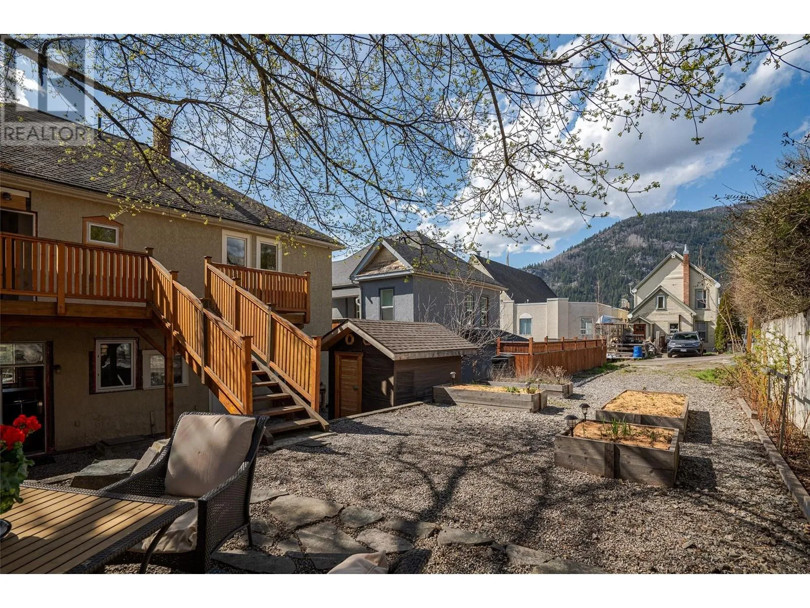 LOCATION! LOCATION! LOCATION! Endless possibilities await with this beautifully maintained and newly upgraded Duplex, ideally located just steps from downtown Nelson. This charming side-by-side property offers exceptional versatility, whether you're seeking a multigenerational home, investment opportunity, or a creative live-work space. Each side of the duplex is incredibly spacious, with the downtown-facing unit (Unit 715) featuring a fully finished 3-bedroom, 2-bathroom layout. It boasts stunning original hardwood flooring throughout much of the main living area, deep wood accents, classic wainscoting, high ceilings, and a timeless heritage exterior that will melt your heart. The uphill unit currently operates as a woodworking studio on the main level, complete with a convenient half bath. Upstairs, a newly started suite is taking shape with 1 bedroom, a den, and 2 bathrooms (unfinished), offering a fresh canvas for customization. This unit also includes a large attic space perfect for a studio or additional room. Both units enjoy private basement entries with ample storage space. Extensive upgrades across the property include updated electrical and plumbing, new insulation, some new windows, and a new furnace, ensuring comfort and efficiency, new back deck & even new landscaping. Outdoors, you'll find a serene back patio shaded by a mature maple treeâideal for summer relaxationâand off-street back parking accessed via the alley. The generous backyard placed on a 52x100' lot also offers exciting potential for a future laneway or carriage home. This unique and versatile property truly combines classic charm with modern updates in an unbeatable central location. (id:27476)