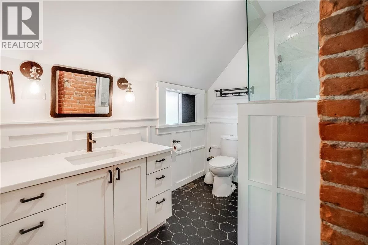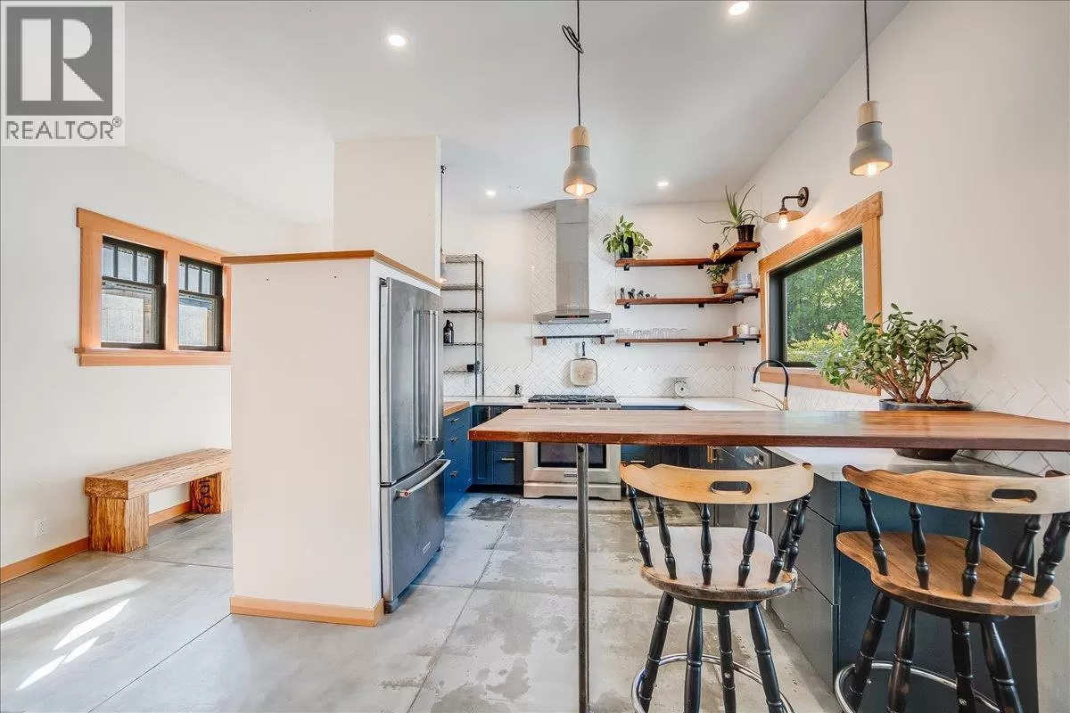 Experience the perfect blend of historic charm and modern luxury in this stunningly renovated heritage home, ideally located in the heart of Nelson, BC. This beautiful property offers 3 spacious bedrooms and 3 exquisitely updated bathrooms featuring elegant tile work and sleek glass showers. The homeâs thoughtfully designed layout is enhanced by soaring ceilings, rich hardwood, and polished concrete floors, creating a sophisticated yet welcoming ambiance. The open-concept kitchen is a chefâs dream, boasting modern countertops, ample cabinetry, and a generous dining area perfect for entertaining. Step outside to enjoy both covered and open balconies that showcase breathtaking views of the water and surrounding mountainsâan ideal setting for morning coffee or evening relaxation. Comfort is assured year-round with natural gas heating and air conditioning. Combining heritage character with high-end finishes, this exceptional home offers timeless appeal in one of Nelsonâs most sought-after locations. Donât miss the opportunity to make it yours! (id:27476)