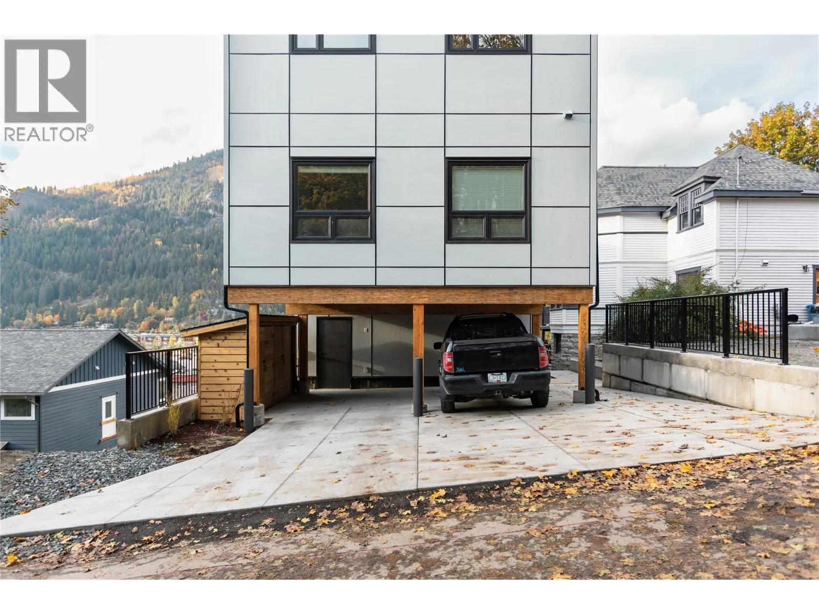 Welcome to Front Street Flats, where modern design meets the raw beauty of natureâideally located in the heart of Nelson, BC. This collection of luxury townhomes built in 2021 is thoughtfully crafted to elevate everyday Kootenay living, blending sophisticated architecture with the surrounding lake and mountain views. This stunning 3-bedroom, 3-bathroom, 1,726 sq.ft. townhome spans three levels and offers the perfect balance of comfort, function, and style. Featuring STEP 5 energy efficiency, the home is outfitted with high-performance mini-split systems for ultra-efficient heating and cooling year-round. Inside, the open-concept main floor flows seamlessly with European-inspired cabinetry, premium stainless steel appliances, and modern finishes throughout. Natural light fills the space, creating a warm, inviting atmosphere thatâs both elegant and livable. Step up to your private rooftop patioâa rare urban oasis with sweeping views of the Kootenays, perfect for morning coffee or evening sunsets. Located just a short walk to vibrant Baker Street and downtown Nelson, Front Street Flats offers easy access to shops, dining, culture, and the waterfront, all while surrounded by some of BCâs most breathtaking scenery. Donât miss your opportunity to own in one of Nelsonâs most desirable new developments. Live naturally, live modernâlive here. (id:27476)