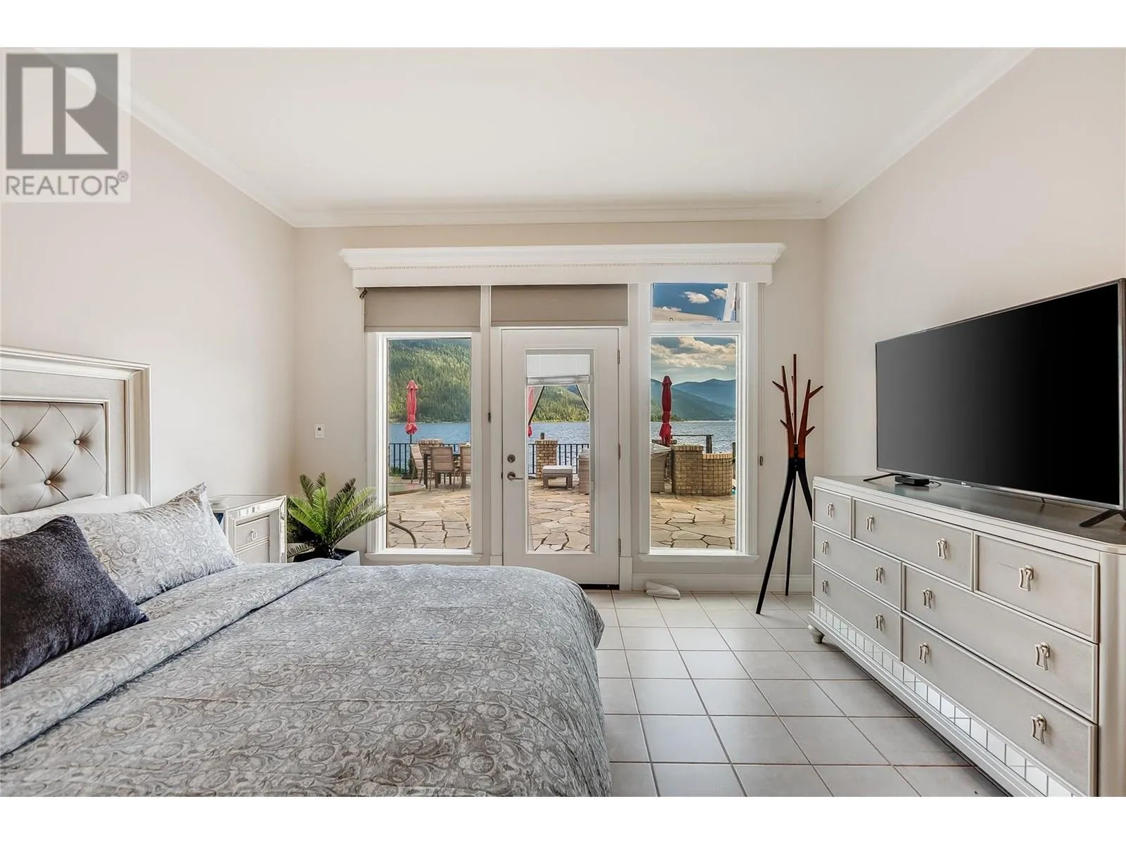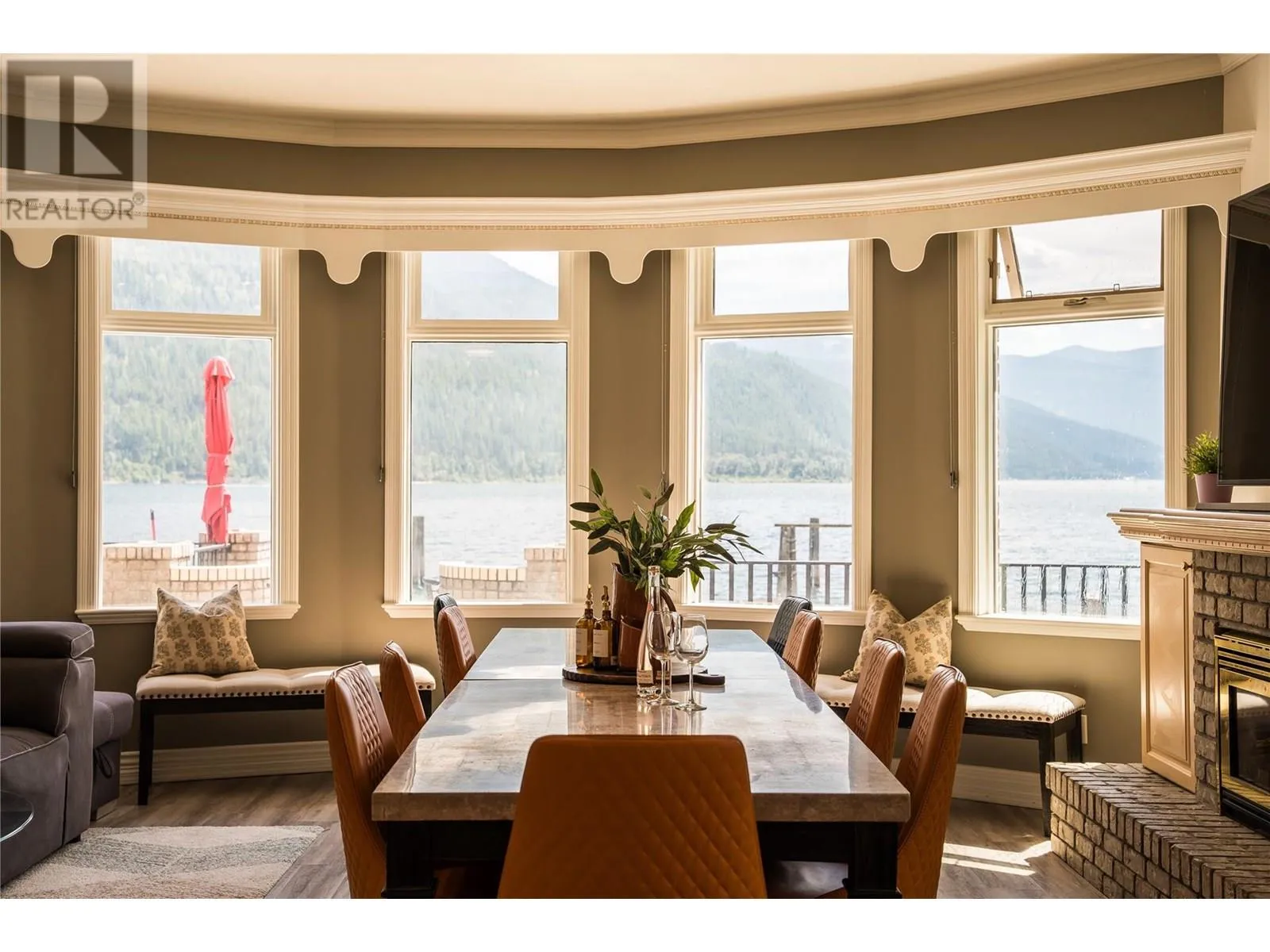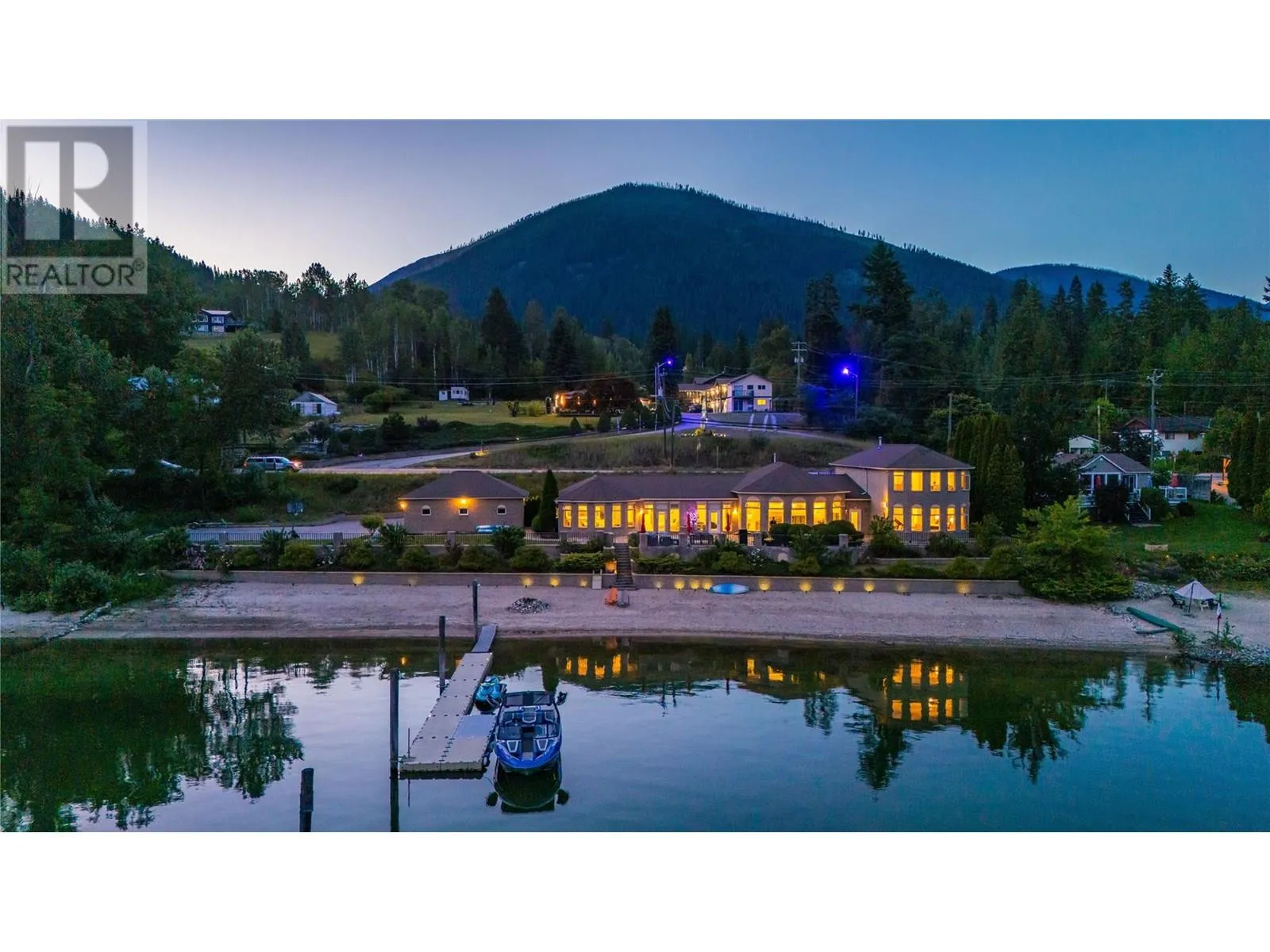 Indulge in the pinnacle of waterfront living with this breathtaking executive home, perfectly positioned on over 220 feet of pristine sand frontage along the shores of beautiful Kootenay Lake. Offering more than 3,500 sq. ft. of refined main-floor living space plus a separate 900 sq. ft. caretaker or guest suite, this property seamlessly blends elegance, comfort, & functionality. Immaculately constructed, the home and detached double garage are fully clad in timeless brick. Inside, you'll find 9-foot ceilings adorned with elegant crown moldings, radiant in-floor heating throughout, and triple-glazed windows that frame breathtaking lake views from every room. A uniquely designed domed living room adds architectural interest and a sense of grandeur, while custom built-ins provide both beauty and practicality. The primary suite is a true retreat, featuring a spacious en suite with a separate tub and shower. All rooms are generously sized, offering space to entertain or relax in comfort. Outside, enjoy expansive stone patios, a large private dock, and ample parking, all set against the stunning natural backdrop of the lake and surrounding landscape. This is more than a home . This is a forever escape where sophistication meets the serenity of sandy shores, majestic sunsets and the soothing sounds of lapping waves. Whether as a private retreat, executive haven, or generational compound, this estate delivers lifestyle beyond compare. Your dream of lakeside opullence starts here. (id:27476)