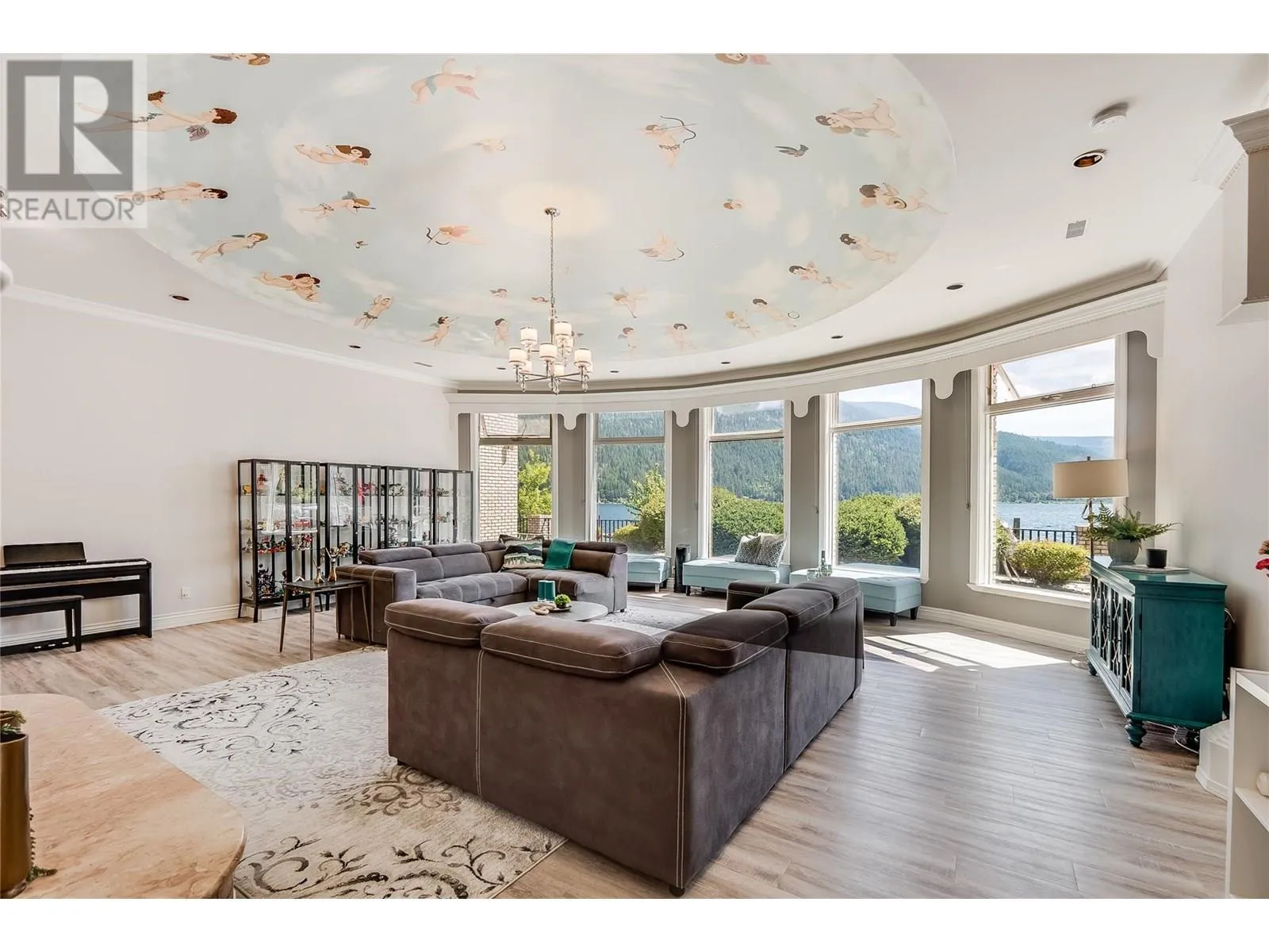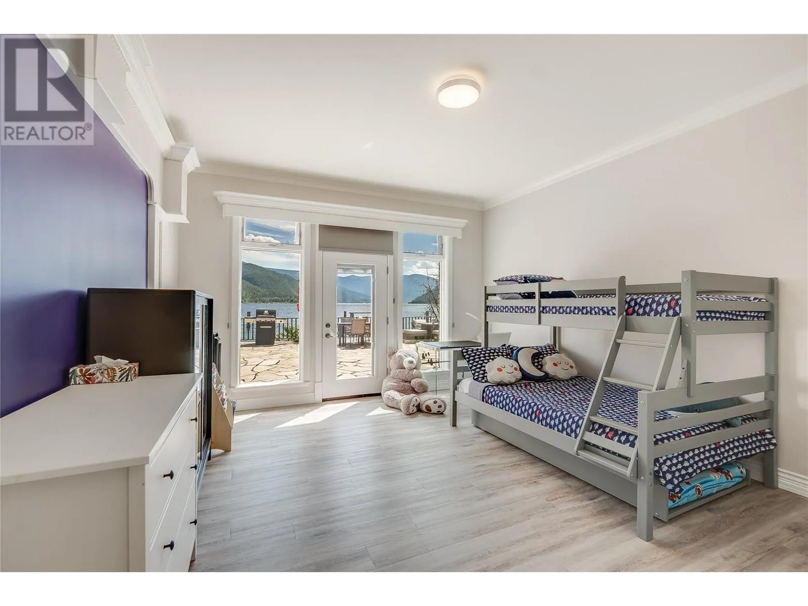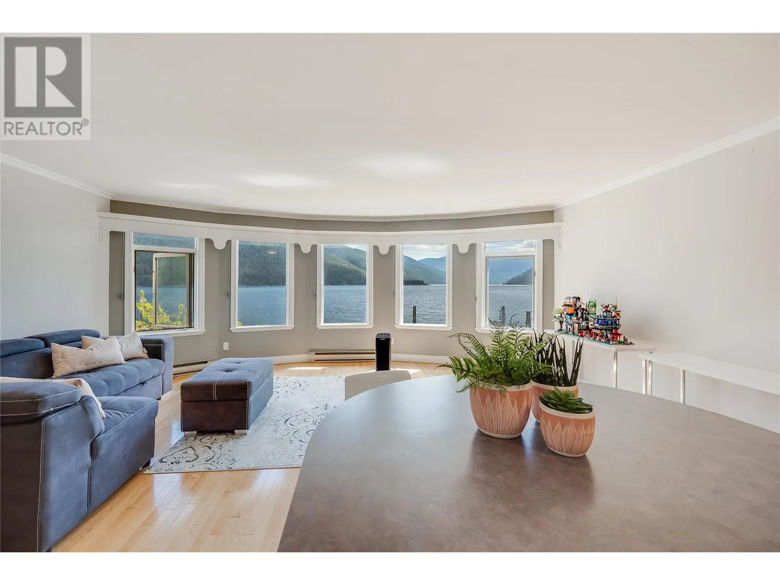 Indulge in the pinnacle of waterfront living with this breathtaking executive home, perfectly positioned on over 220 feet of pristine sand frontage along the shores of beautiful Kootenay Lake. Offering more than 3,500 sq. ft. of refined main-floor living space plus a separate 900 sq. ft. caretaker or guest suite, this property seamlessly blends elegance, comfort, & functionality. Immaculately constructed, the home and detached double garage are fully clad in timeless brick. Inside, you'll find 9-foot ceilings adorned with elegant crown moldings, radiant in-floor heating throughout, and triple-glazed windows that frame breathtaking lake views from every room. A uniquely designed domed living room adds architectural interest and a sense of grandeur, while custom built-ins provide both beauty and practicality. The primary suite is a true retreat, featuring a spacious en suite with a separate tub and shower. All rooms are generously sized, offering space to entertain or relax in comfort. Outside, enjoy expansive stone patios, a large private dock, and ample parking, all set against the stunning natural backdrop of the lake and surrounding landscape. This is more than a home . This is a forever escape where sophistication meets the serenity of sandy shores, majestic sunsets and the soothing sounds of lapping waves. Whether as a private retreat, executive haven, or generational compound, this estate delivers lifestyle beyond compare. Your dream of lakeside opullence starts here. (id:27476)
