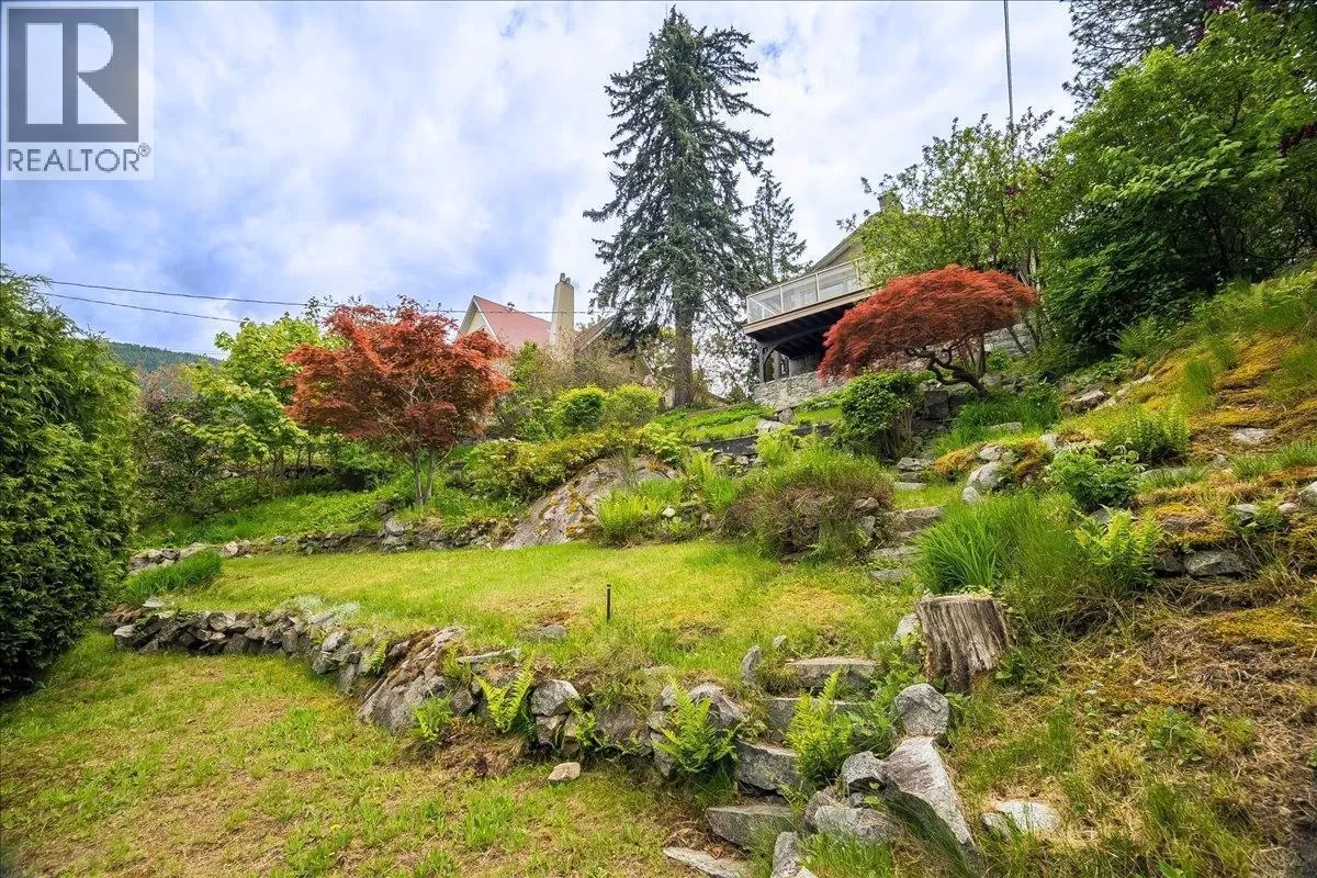 Welcome to one of Nelsonâs most iconic heritage homes, perched high on the southern bluffs to capture a truly breathtaking panorama of mountain, lake, and city views. Tucked away on a rare, level cul-de-sac, this private 0.32 acre paradise offers the tranquility of an alpine garden plus the convenience of a ten-minute walk to the city centre. The home has been extensively renovated, each and every detail invested with the utmost care and attention. Improvements include updated stucco and masonry, modernized perimeter drainage, custom steel gates and cedar fences, as well as a brand new furnace, boiler, and hot water tank, and an on-line security system. Enjoy your morning coffee on the flagstone patio under a magnificent white oak, then stroll down to a terraced oasis where a Japanese maple catches the rising sun, and the air is sweet with the scent of lilacs and yellow wisteria. Glance up at the tallest ponderosa in town as an osprey soars above it. And when winter comes, hunker down with a toddy in front of a roaring fire in the living room or the den. This is a home with something more - itâs a landmark, a legacy, and a lifestyle, and a once-in-a-lifetime opportunity. Book a showing today to experience all it has to offer! (id:27476)
