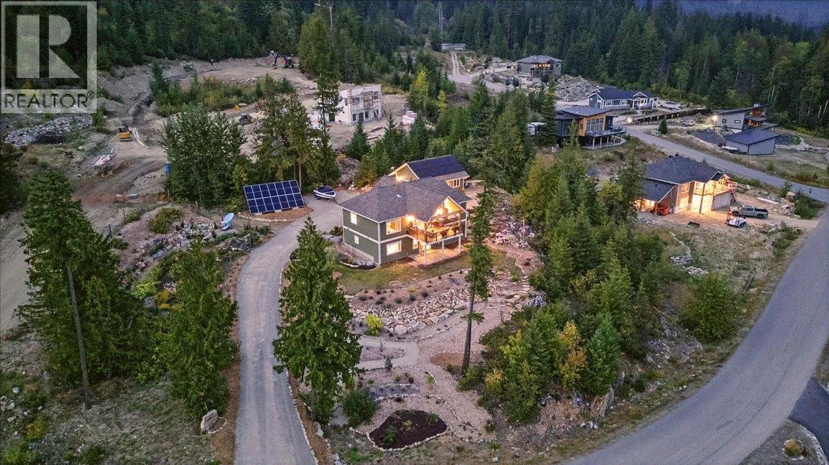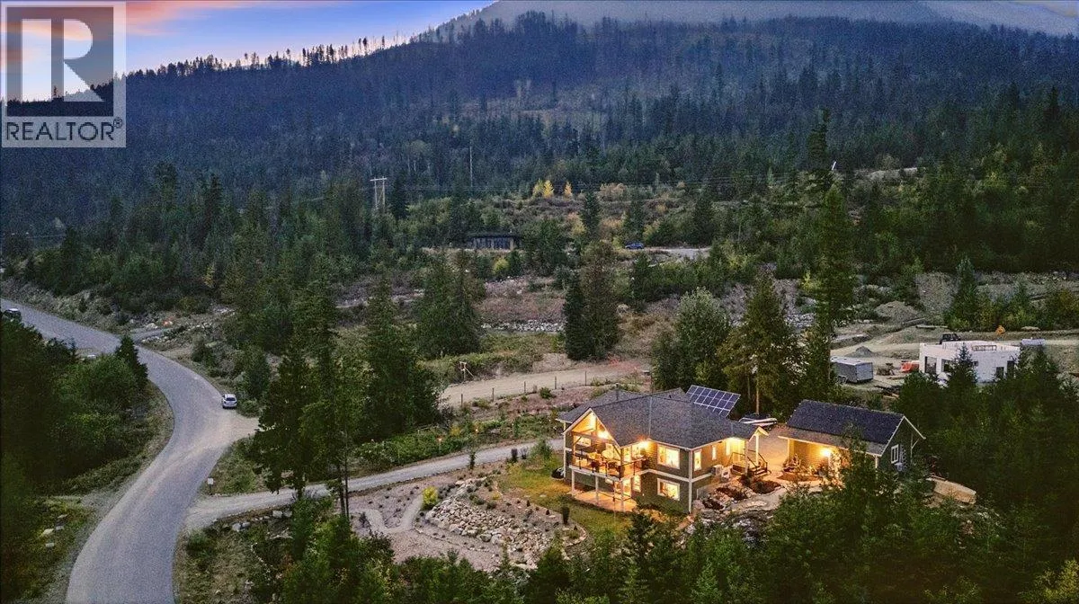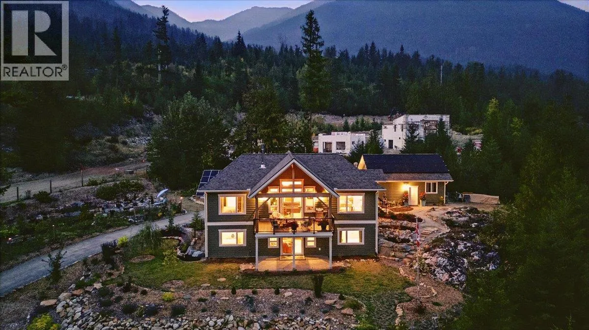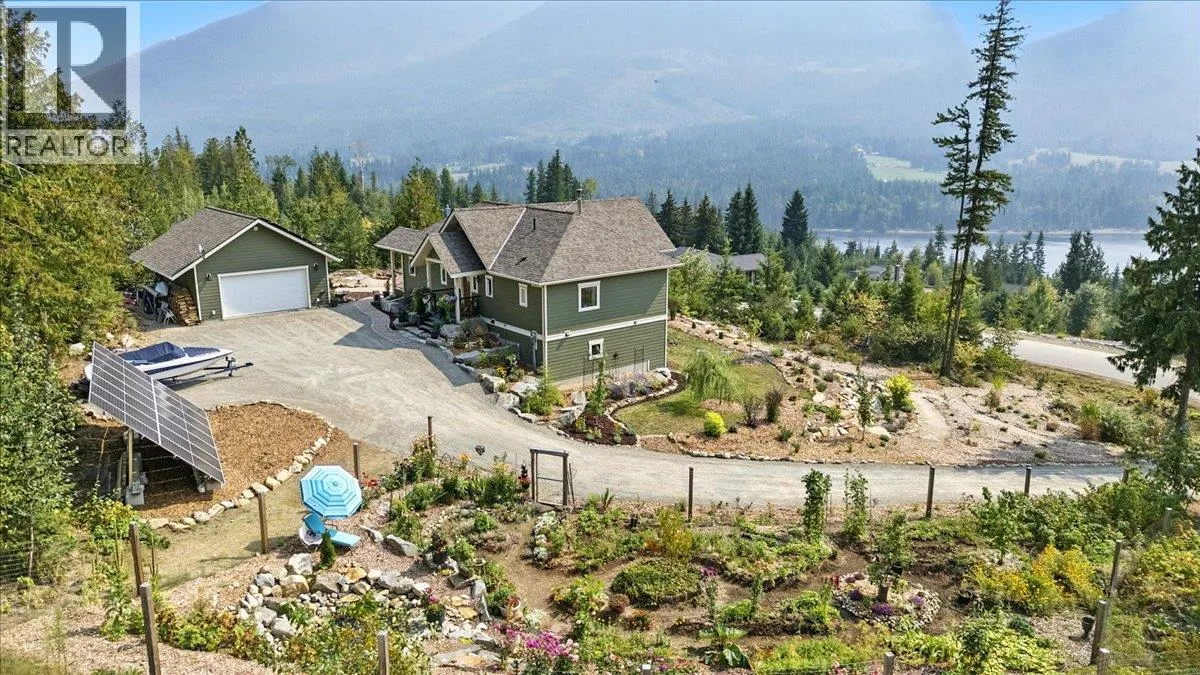 Welcome to this handcrafted Kootenay masterpiece in the Grandview Property Development, a quiet and friendly neighborhood just minutes from the lake. Less than 2 years old, this 4 bedroom, 3 bathroom home is covered by a full home warrantyâwith no GST payable. Built with exceptional craftsmanship, it blends modern comfort with timeless design. Take in unparalleled panoramic views up the valley in both directions, overlooking the lake and mountainsâtruly breathtaking. This home is fully electric, with its own net-zero designed solar panel system, allowing you to sell power back to the grid for credit and enjoy much lower electrical bills for years to come. Triple pane windows, engineered hardwood flooring, hardie board siding, granite and quartz counters all add to the quality and care in this design. Comfort is key with radiant in-floor heating and an AC-equipped heat pump, plus the detached double garage comes with its own AC-equipped heat pump for year-round usability. Additional features include a 40 Amp RV wire hookup ready for install, beautifully established gardens with irrigation, and professional landscaping. Nearby boat launches make lake life simple and convenient. A spectacular golf course along with pickleball and tennis courts are just 10 minutes away. This is more than a homeâitâs a lifestyle. A rare chance to own a new, energy-efficient residence in the heart of the Kootenays. (id:27476)