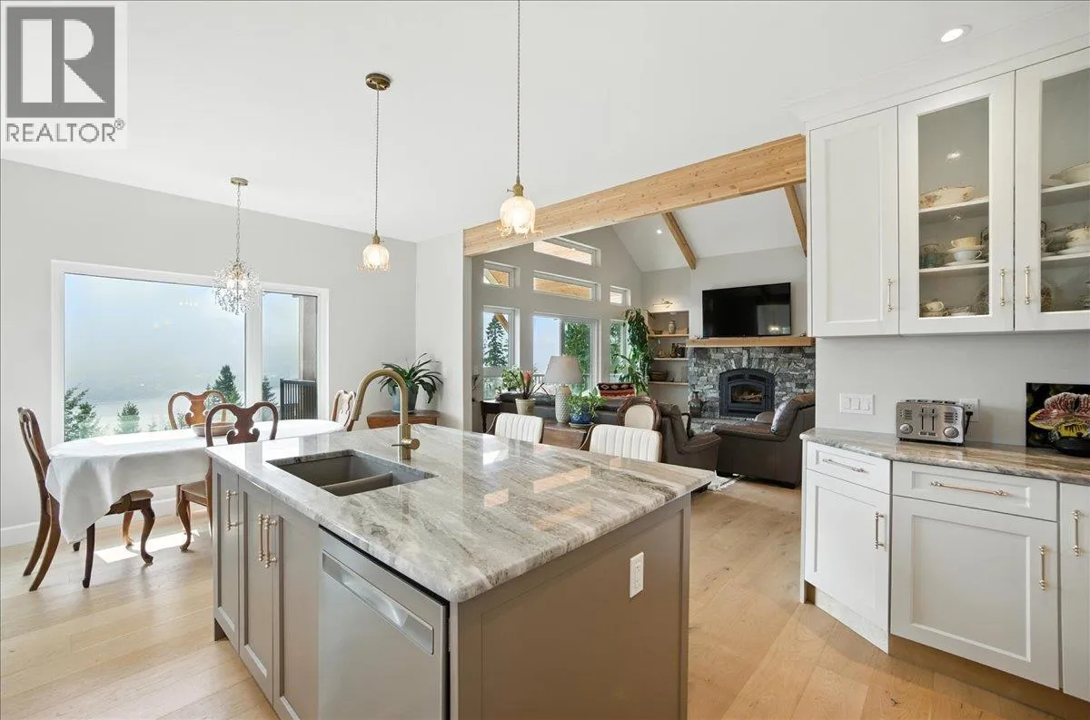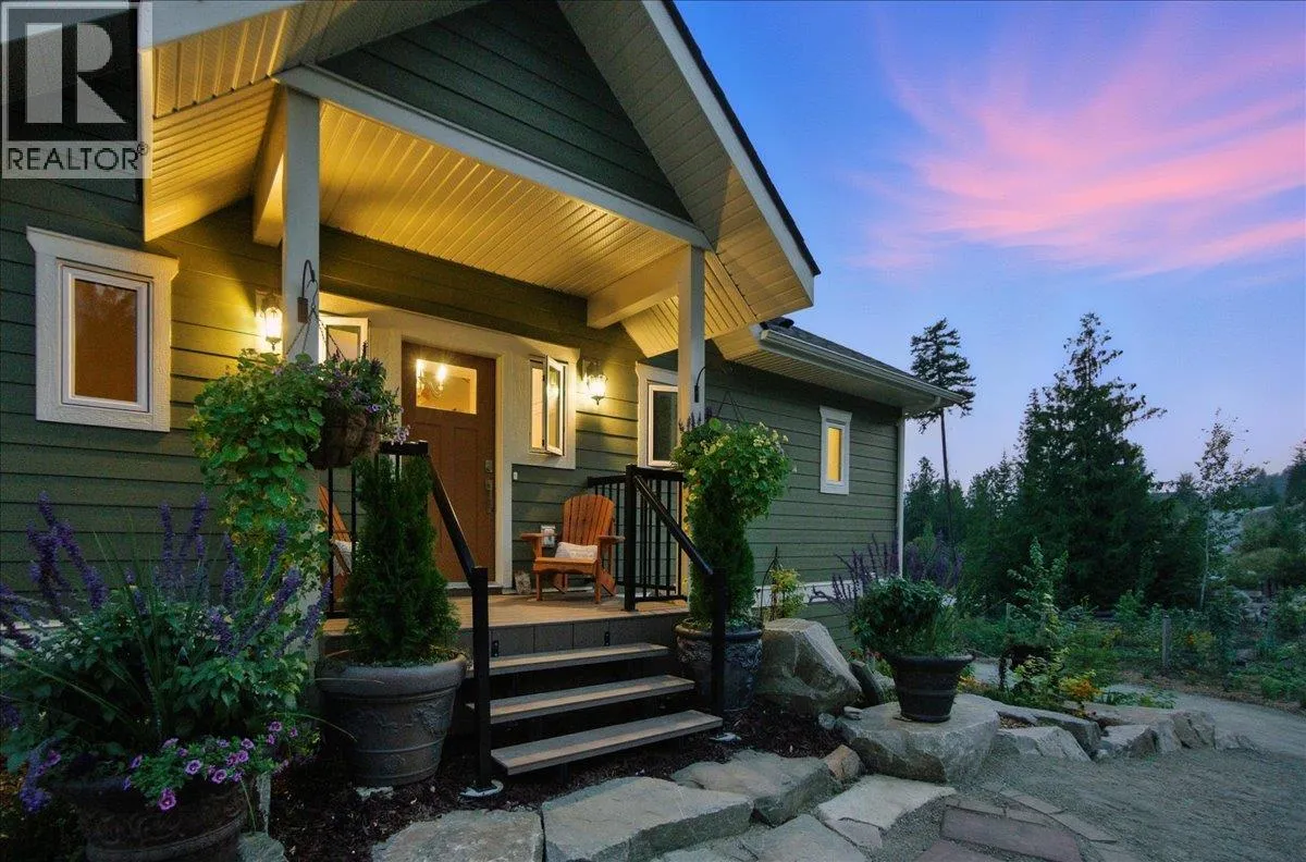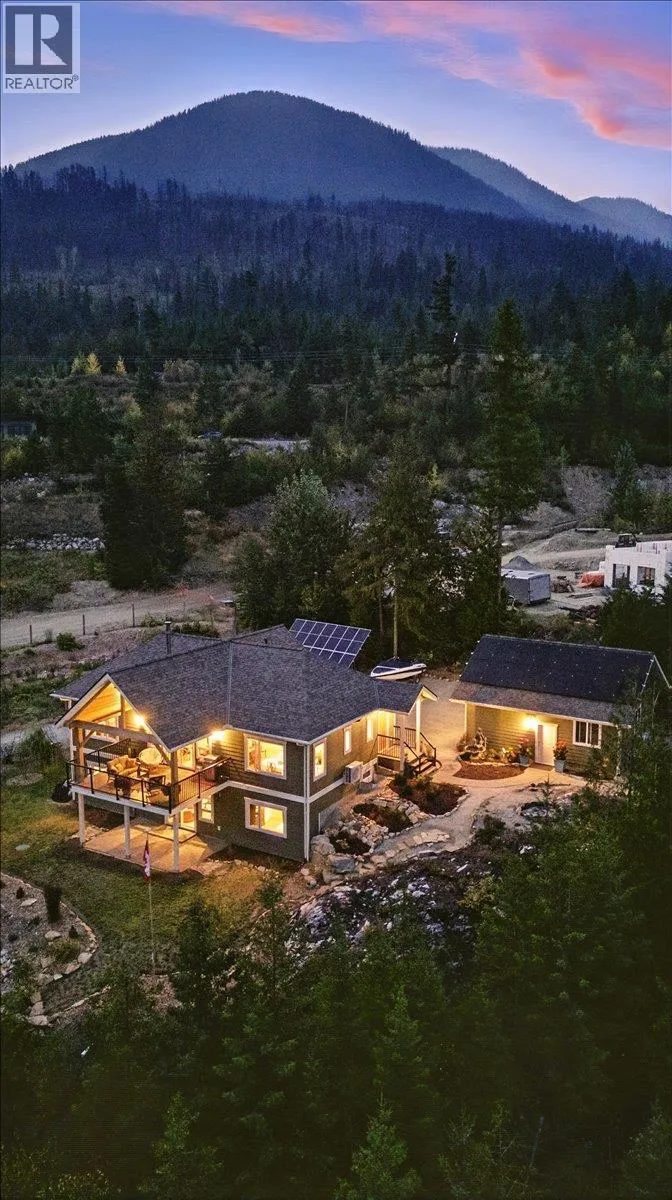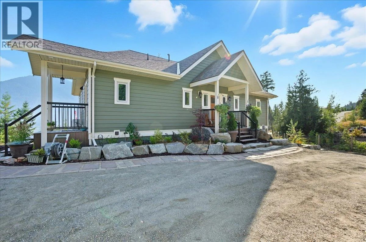Welcome to this handcrafted Kootenay masterpiece in the Grandview Property Development, a quiet and friendly neighborhood just minutes from the lake. Less than 2 years old, this 4 bedroom, 3 bathroom home is covered by a full home warrantyâwith no GST payable. Built with exceptional craftsmanship, it blends modern comfort with timeless design. Take in unparalleled panoramic views up the valley in both directions, overlooking the lake and mountainsâtruly breathtaking. This home is fully electric, with its own net-zero designed solar panel system, allowing you to sell power back to the grid for credit and enjoy much lower electrical bills for years to come. Triple pane windows, engineered hardwood flooring, hardie board siding, granite and quartz counters all add to the quality and care in this design. Comfort is key with radiant in-floor heating and an AC-equipped heat pump, plus the detached double garage comes with its own AC-equipped heat pump for year-round usability. Additional features include a 40 Amp RV wire hookup ready for install, beautifully established gardens with irrigation, and professional landscaping. Nearby boat launches make lake life simple and convenient. A spectacular golf course along with pickleball and tennis courts are just 10 minutes away. This is more than a homeâitâs a lifestyle. A rare chance to own a new, energy-efficient residence in the heart of the Kootenays. (id:27476)