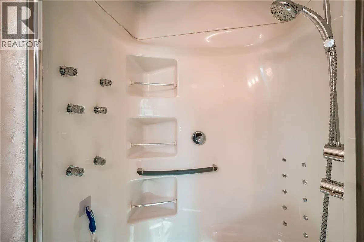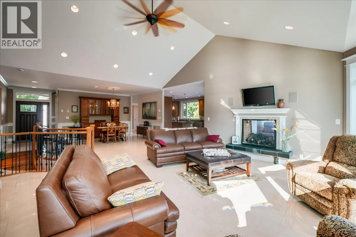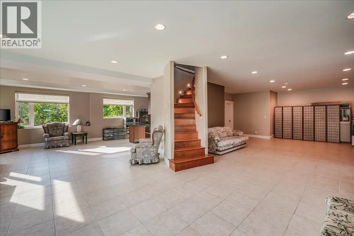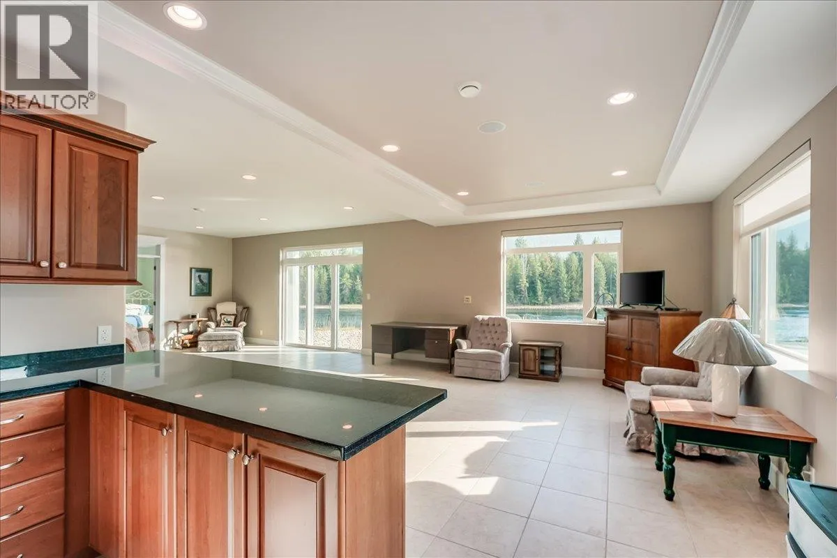 Gorgeous custom waterfront home located on Nelson's North Shore. Nicely tucked away on your own private point with absolutely spectacular 180 degree lake and mountain views!! You will love the sheltered bay with a sandy beach. This quality built home with approx. 4000 sq. ft. finished features 4 bedrooms and 4 bathrooms. Incredible window schedule brings in lots of light and takes full advantage of the breathtaking views. The main floor, with vaulted ceilings and porcelain tile floors, has a spacious living room with a double sided gas fireplace, beautiful kitchen with cherry wood cabinets and granite counters, family room, large dining room, primary suite with spa level ensuite with a steam shower and walk in closet, a second bedroom, full bath, foyer with walk in coat closet, laundry with half bath and a pantry room. The daylight full finished basement has a huge family room and rec-room with a kitchen, 2 bedrooms, a 7 piece bathroom and 2 storage rooms. In-floor heat throughout and built in vac. The property is low maintenance. Paved Driveway and a Triple car garage with in floor heat. ASSESSED AT $1,787,000. Amazing Value!! (id:27476)