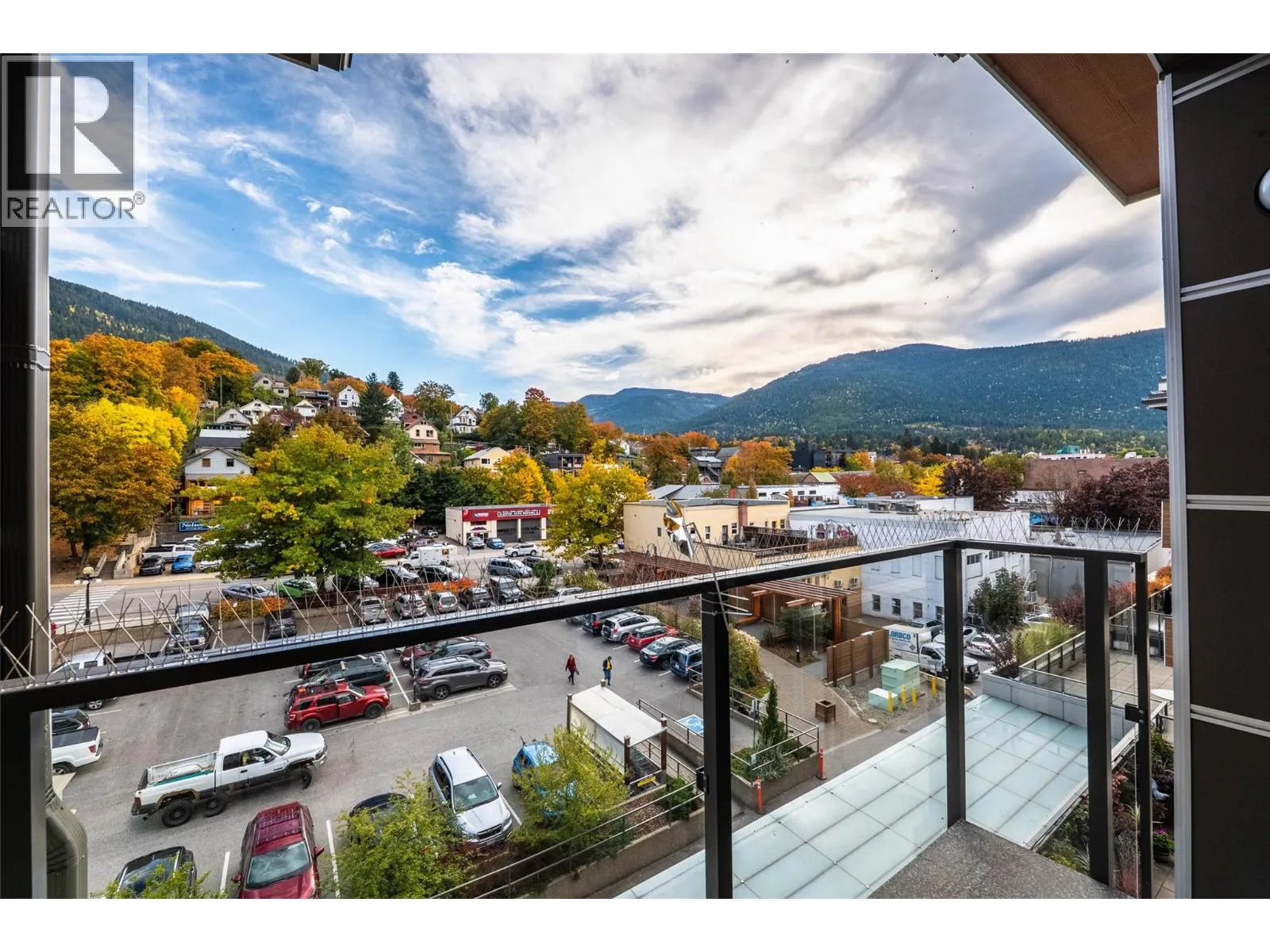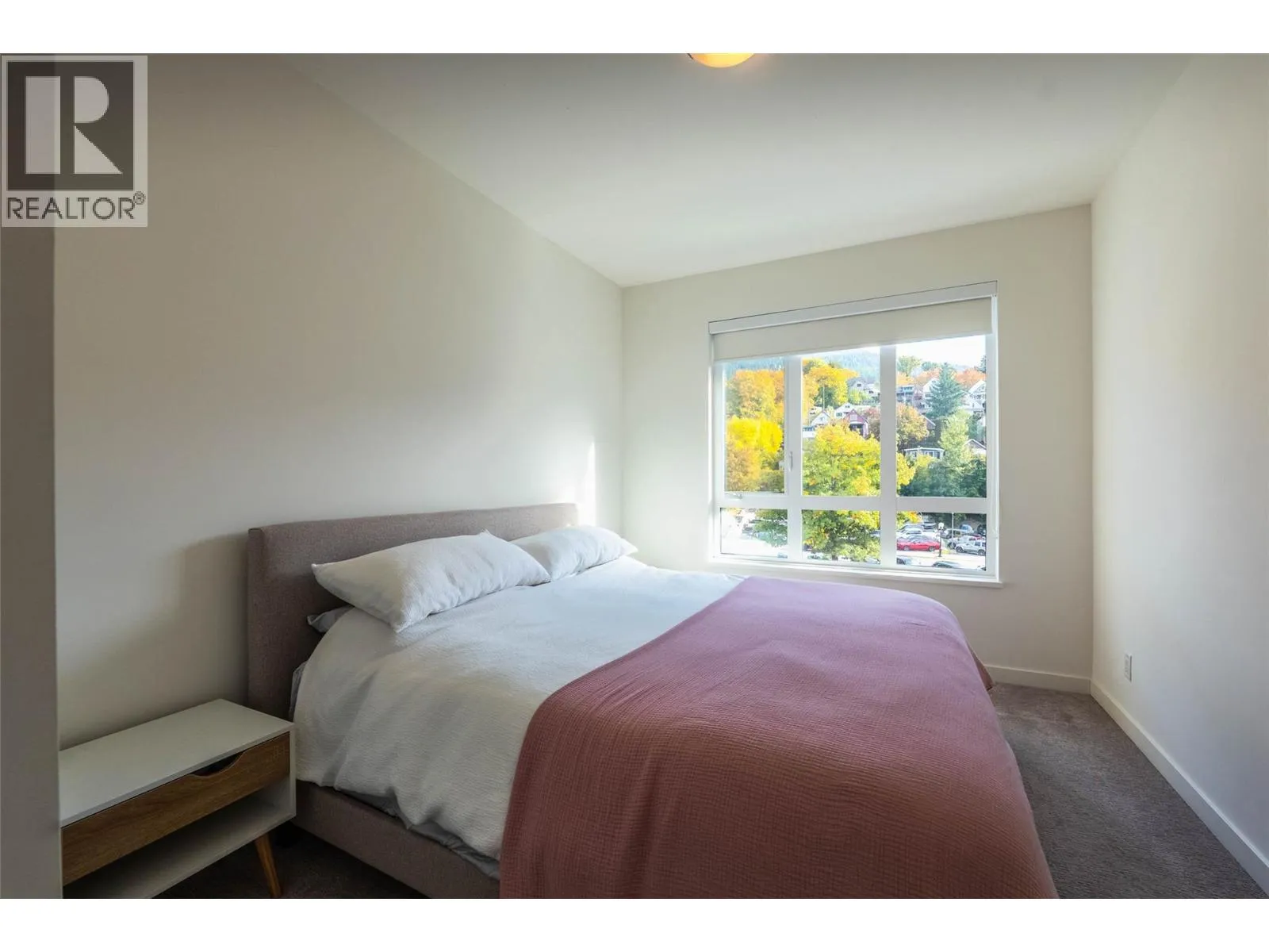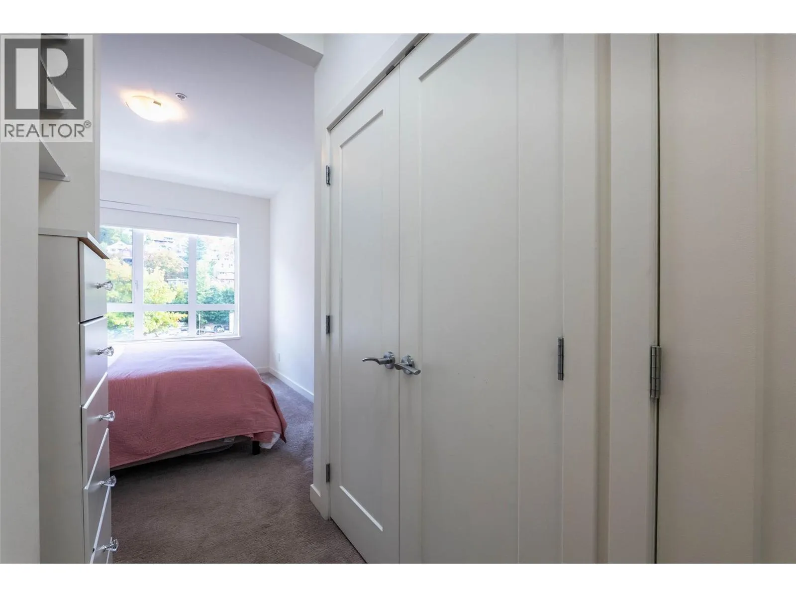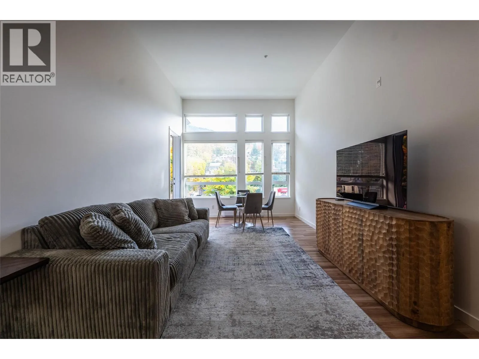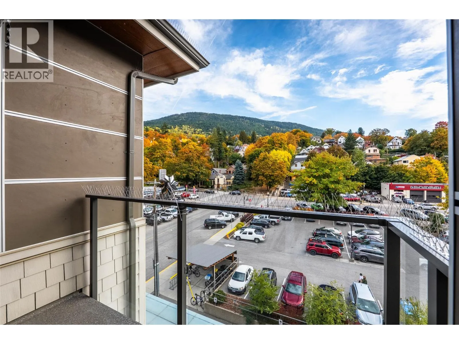 Welcome to the highly sought-after Nelson Commons at 710 Vernon St, where this immaculate two-bedroom plus den, two-bathroom unit offers the perfect blend of modern convenience and sophisticated downsizing. Situated on the top floor, you'll enjoy the peace and quiet of having no one living above you, a premium feature that elevates this unit above the rest and allows for overheight celings in the main living area. Built in 2016, the 868 square foot home features an open-concept living space flooded with natural light, ideal for entertaining or quiet relaxation. The kitchen boasts sleek stainless steel appliances and flows seamlessly into the main area, while the private balcony provides a tranquil outdoor retreat with a dedicated natural gas hookup for easy, year-round grilling. The versatile den is perfect for a home office, hobby room, or storage. Practicality meets luxury with in-unit laundry, a secure underground parking stall, and a private storage locker. The star feature is the unbeatable location: step outside and you are within a single block of a major grocery store, pharmacy, medical clinic and restaurants, dramatically simplifying daily errands and offering an unparalleled walkable urban lifestyle. Experience the ultimate in comfort and quality in a building that sets the benchmark for contemporary living in Nelson. (id:27476)