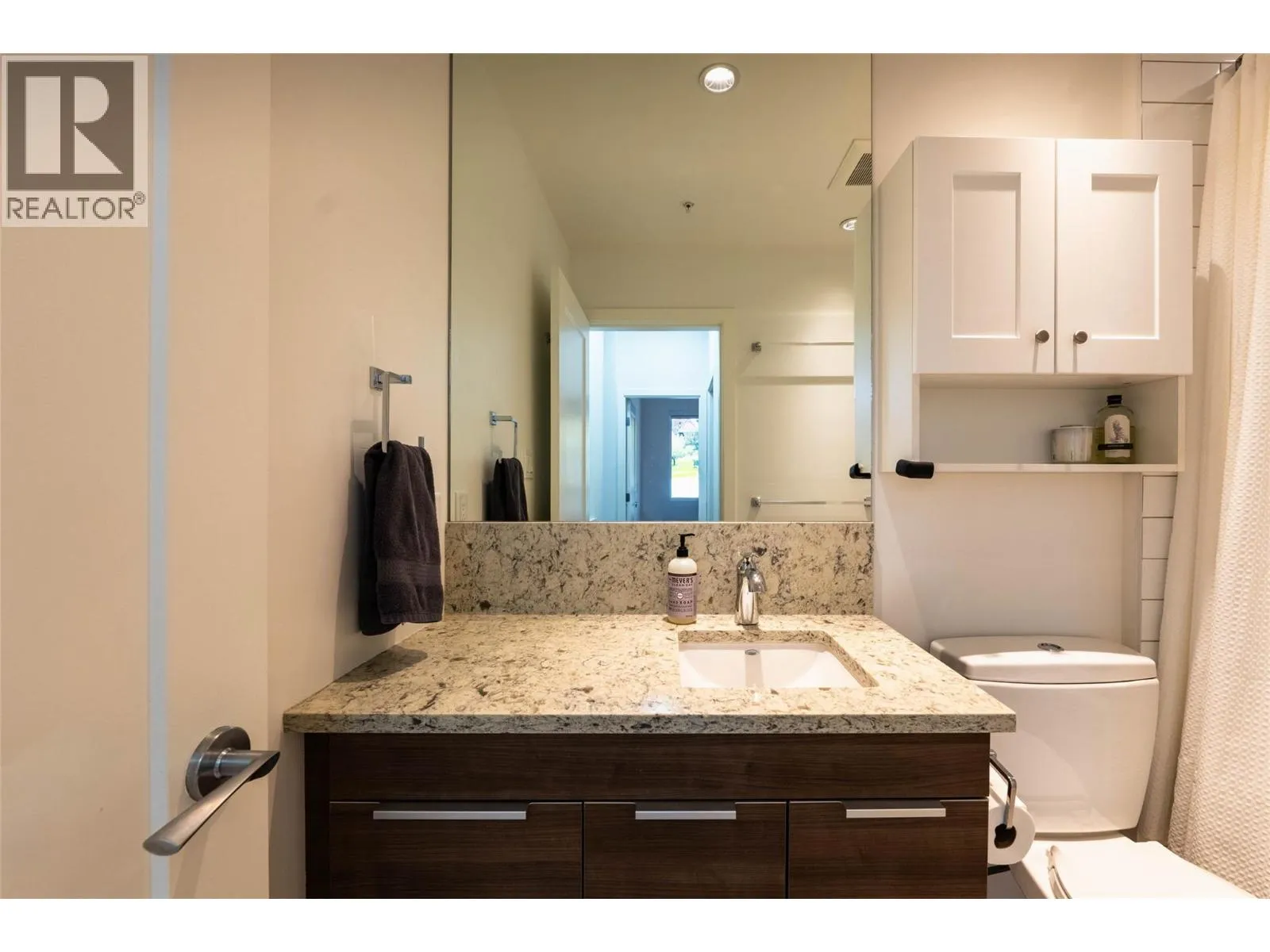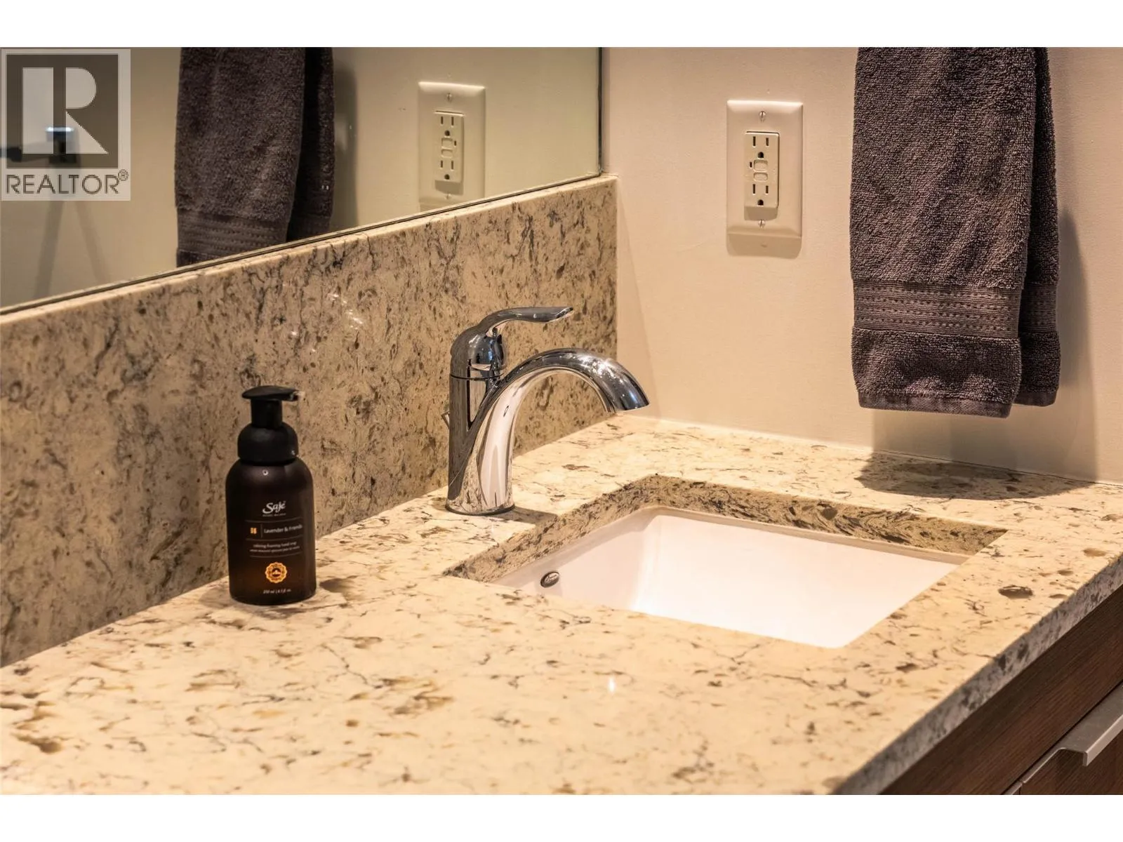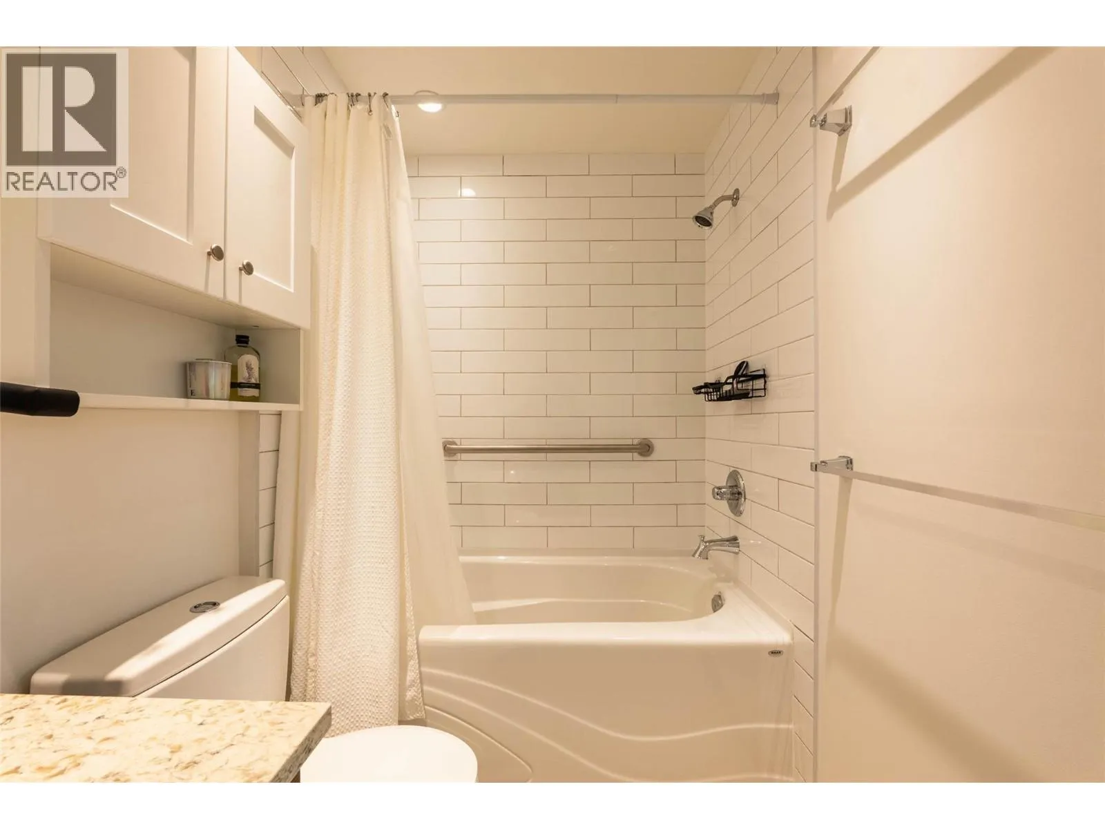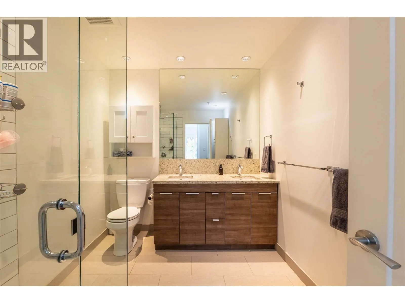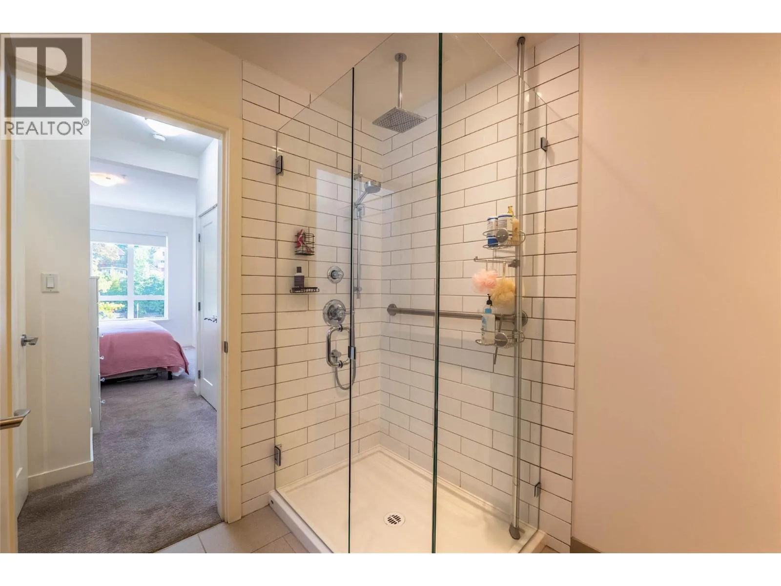 Welcome to the highly sought-after Nelson Commons at 710 Vernon St, where this immaculate two-bedroom plus den, two-bathroom unit offers the perfect blend of modern convenience and sophisticated downsizing. Situated on the top floor, you'll enjoy the peace and quiet of having no one living above you, a premium feature that elevates this unit above the rest and allows for overheight celings in the main living area. Built in 2016, the 868 square foot home features an open-concept living space flooded with natural light, ideal for entertaining or quiet relaxation. The kitchen boasts sleek stainless steel appliances and flows seamlessly into the main area, while the private balcony provides a tranquil outdoor retreat with a dedicated natural gas hookup for easy, year-round grilling. The versatile den is perfect for a home office, hobby room, or storage. Practicality meets luxury with in-unit laundry, a secure underground parking stall, and a private storage locker. The star feature is the unbeatable location: step outside and you are within a single block of a major grocery store, pharmacy, medical clinic and restaurants, dramatically simplifying daily errands and offering an unparalleled walkable urban lifestyle. Experience the ultimate in comfort and quality in a building that sets the benchmark for contemporary living in Nelson. (id:27476)