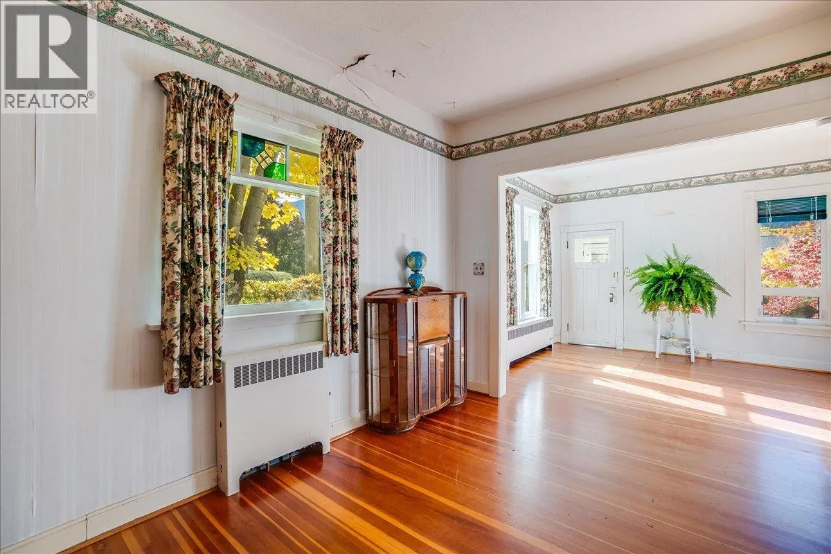 Home to the same family for the past 33 years, this solid 3 bedroom, 1 bath home rests on two 30'x120' near level lots with productive gardens, lawn area, tall perimeter privacy hedging and beautiful mature landscaping. Many original heritage features including tall ceilings, generous room and window sizing creating bright living areas, two sun porches, Douglas Fir flooring throughout and original trim including doors with glass knobs, built-ins and stained glass. New 200 amp electrical service. The detached garage has plenty of room for a workshop. The unfinished basement provides plenty of storage area with an outside entry. Great development potential, maybe adding a laneway house. The house and garage appears to be located exclusively on Lot 1 and if so, Lot 2 could possibly be built on or sold separately. Very conveniently located close to schools, shopping, and Lakeside Park. This is a great place to call home. (id:27476)