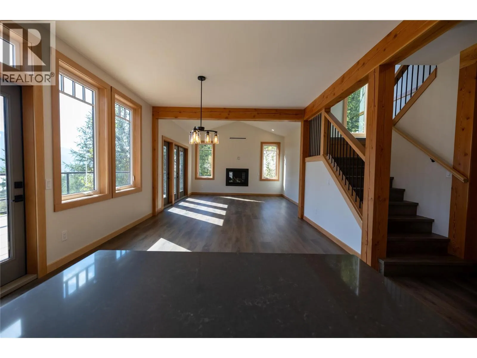 Just 20 minutes from Nelson, this brand-new custom home in Grandview Properties offers exceptional craftsmanship, thoughtful design, and sweeping views of Kootenay Lake and the surrounding mountains. The main floor is designed for easy living and entertaining, featuring an open-concept kitchen with solid hickory cabinetry, stainless steel appliances, and warm fir timber accents throughout. The bright living and dining area is anchored by a Valor gas fireplace and large windows that frame uninterrupted lake views, with multiple access points to the spacious deckâideal for relaxing or hosting guests. A flexible bedroom or home office and a full bathroom complete this level. Upstairs, youâll find two vaulted bedrooms, convenient laundry, and a peaceful primary suite with a spa-inspired ensuite, tiled walk-in shower, and walk-in closet with custom pine shelving. The daylight basement includes a finished bedroom, full bathroom, and open family room, with plumbing in place for a future suite or summer kitchen. High ceilings, abundant windows, and walk-out access to a covered patio keep the space bright and welcoming. Additional highlights include a heated garage with 60A service, ample parking, a 0.38-acre lot, and the security of a 2-5-10 New Home Warranty. (id:27476)