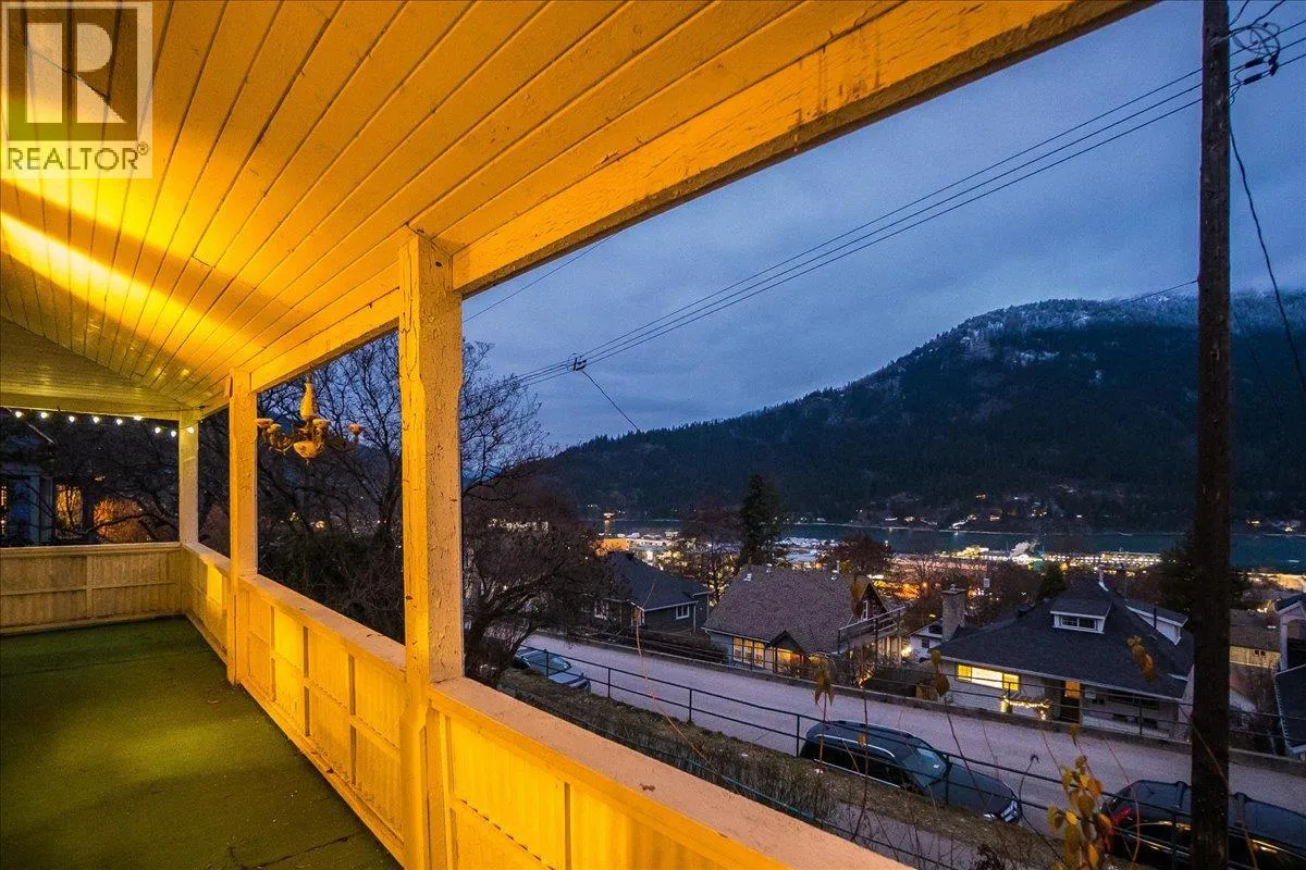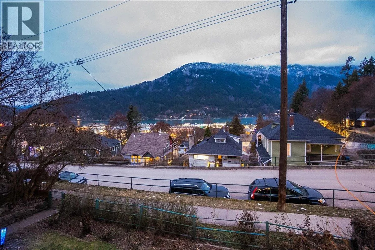 Discover comfort and charm in this well-located family home, just minutes from Nelsonâs historic downtown in a desirable, centrally located neighbourhood in BCâs Kootenay region. With stunning views and exceptional renovation potential, this property offers a rare opportunity to create something truly special. The main floor features a bright eat-in kitchen that opens into a spacious living and dining area, along with three bedrooms; an ideal layout for family living. Step onto the expansive porch and take in sweeping views of Kootenay Lake and Elephant Mountain, a standout feature that sets this home apart and offers incredible potential for future upgrades and outdoor entertaining. A self-contained suite provides excellent mortgage-helper potential and added monthly income. While the home is dated and ready for updates, it offers a solid footprint, flexible layout, and the chance to significantly increase value through thoughtful renovations. Outside, the expansive double lot offers ample room for outdoor living, gardening, and entertaining, surrounded by mature trees and space to create a garden oasis. Off-street parking for two vehicles plus a single-car garage adds everyday convenience. With schools, parks, and amenities nearby, this property is an ideal choice for buyers seeking views, income potential, and a renovation project with long-term upside. (id:27476)