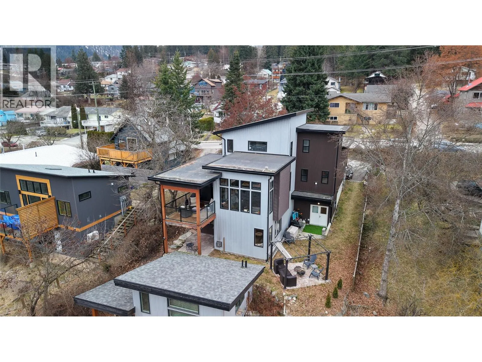 Positioned in one of British Columbiaâs most sought-after ski and lifestyle destinations, this 2016-built, energy-efficient two-home property offers a rare blend of quality, privacy and established income opportunities. The main residence is designed for elevated everyday living and entertaining, featuring a bright open-concept layout with high-end appliances, central island with gas cooktop, modern finishes, and expansive windows framing lake, city, and mountain views. Gas fireplaces add warmth, while central air conditioning ensures year-round comfort. A covered deck extends the living space outdoors, ideal for dining and morning coffee. The upper level provides a private retreat with a bedroom, walk-in closet, office, and full bathroom. The lower level offers a fully self-contained living space with separate access, two bedrooms, bonus room, office, in-suite laundry, full bathroom, and wine room (not represented as a legal suite). Ideal for short-term rental, extended family, or flexible income use. A standout feature is the detached 589 sq. ft. cottage, built to the same high standards and operating as a highly rated short-term rental with a proven six-year track record. With vaulted ceilings, loft bedroom, full kitchen, gas fireplace, private deck, yard, and infrared sauna, it delivers a guest experience. Together these spaces provide lifestyle flexibility and multiple income streams, just minutes from Nelsonâs dining, arts, waterfront, and outdoor recreation. (id:27476)