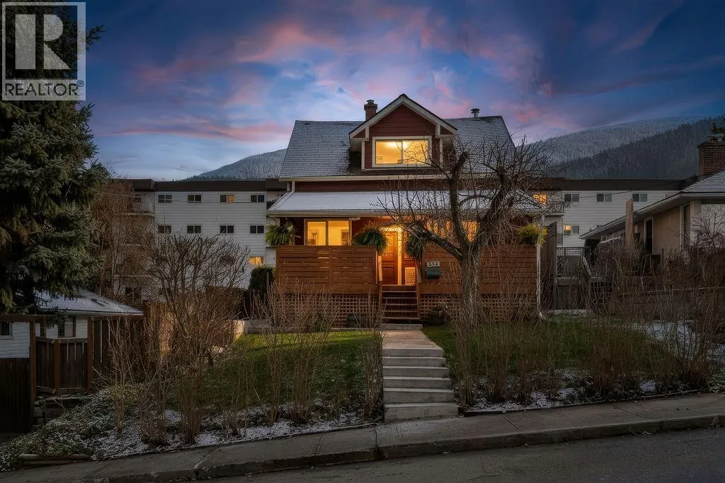 The one you have been waiting for is finally here! This nearly 2000sf (1403sf finished + 589sf unfinished) quaint home is a rare gem situated in one of Nelson's most desirable locations. A few steps away from the iconic Lakeside Park and on a quiet, dead end street where turnover is non-existent, this home offers an opportunity to relish and enjoy all things that make up the finest of Kootenay living. 514 First offers an easily maintained yard with raised organic vegetable beds and is adorned with optimal sun exposure for all times of the year which provides a long growing season for all your favorite veggies. Tastefully updated throughout the past few years, charm radiates in every space. Bursting at the seams with character, openness and pride of ownership. A few highlights include: expansive back deck and front porch (totaling an additional, nearly 700 sf of useable space), stainless steel appliances, a large basement offering endless storage, workshop, original fir floors, a 26'6X16'5 heated garage, laneway access, loads of off street parking for your toys or RV, a JA Roby wood stove you can cook on, a two person Almost Heaven dry sauna and bonus covered storage area next to the garage. Guests describe the home as welcoming, warm, having phenomenal energy and having a WOW factor! If you're looking for a functional move-in ready home or a low maintenance vacation property in one of Canada's most desirable towns, this one is definitely worth checking out! (id:27476)