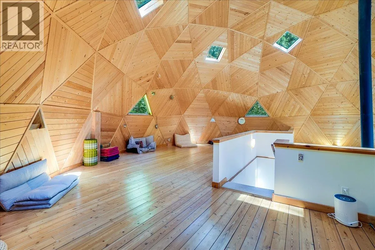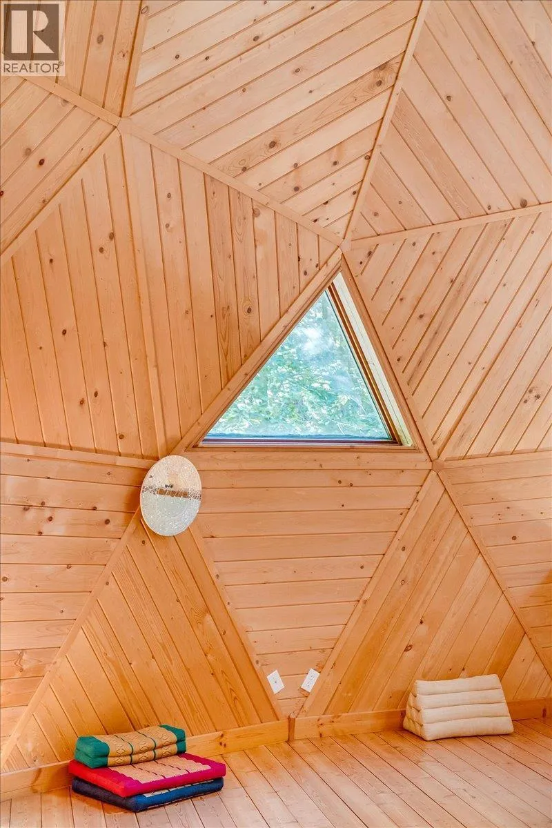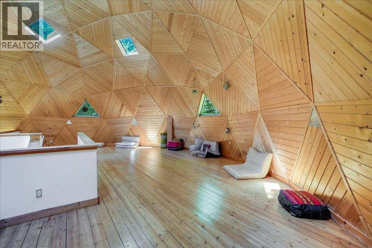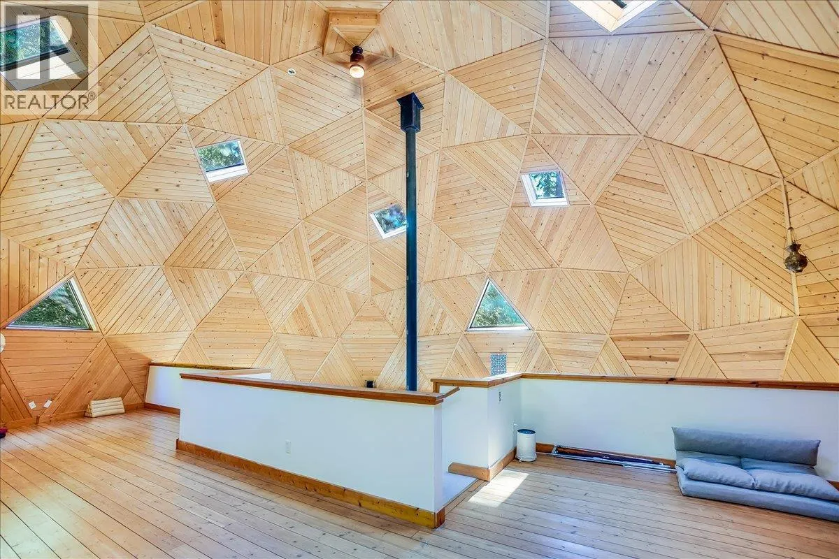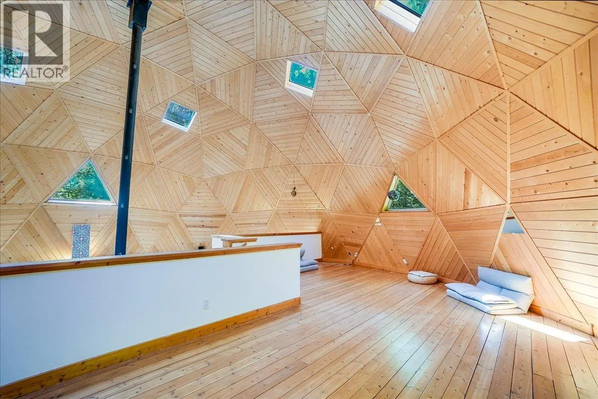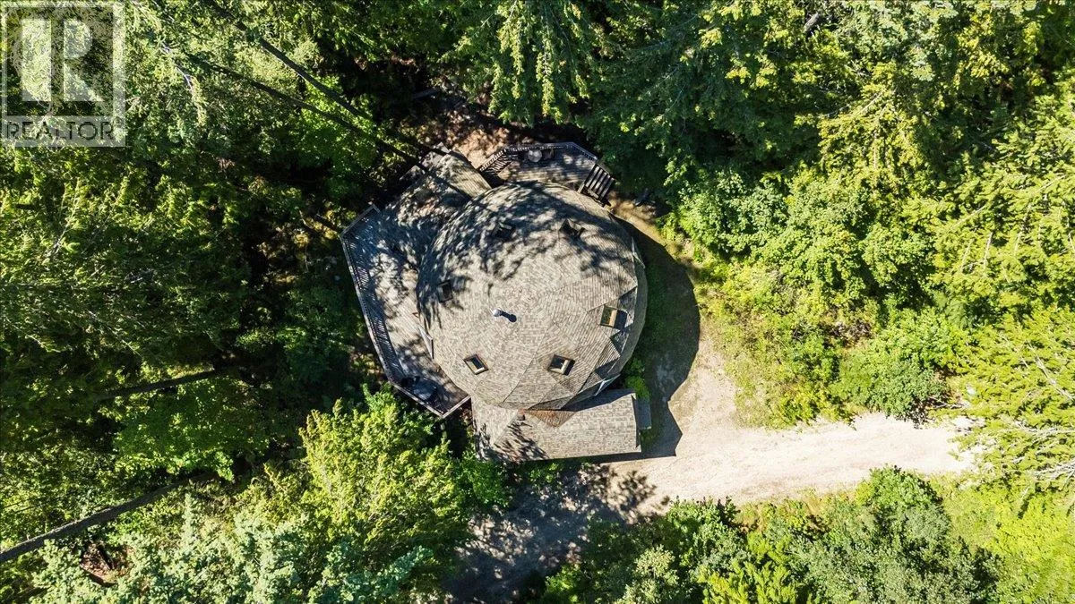 Welcome to your private retreat! Nestled on a 22-acre forested sanctuary just 20 minutes from Nelson, this gorgeous geodesic dome home offers endless possibilities. Built on an ICF - Insulated Concrete Form foundation, itâs designed for efficiency, comfort, and longevity. The main floor features a bright kitchen, open living area with a wood stove, a spacious primary bedroom, and a full bath. The vaulted geodesic ceiling is a truly breathtaking experience! A soaring loft overlooks the living space, creating a unique, light-filled retreat. The lower level includes a generous utility room, additional guest space, and a fully self-contained suite with a separate entrance. Outside, discover a network of forest trails, a serene creek, and a stunning cascading waterfall, plus an additional building site offering more development potential. This property is unzoned! Whether you envision a private residence, multi-family living, or a retreat centre, this one-of-a-kind property blends nature, privacy, and architectural charm in a truly magical setting. This is a truly remarkable offering - book a showing to experience this once-in-a-lifetime opportunity! (id:27476)